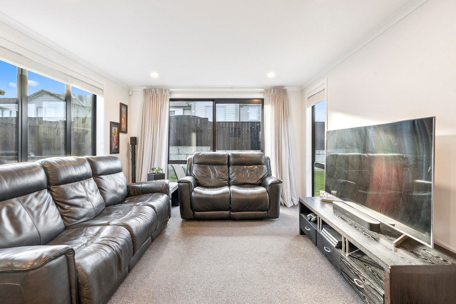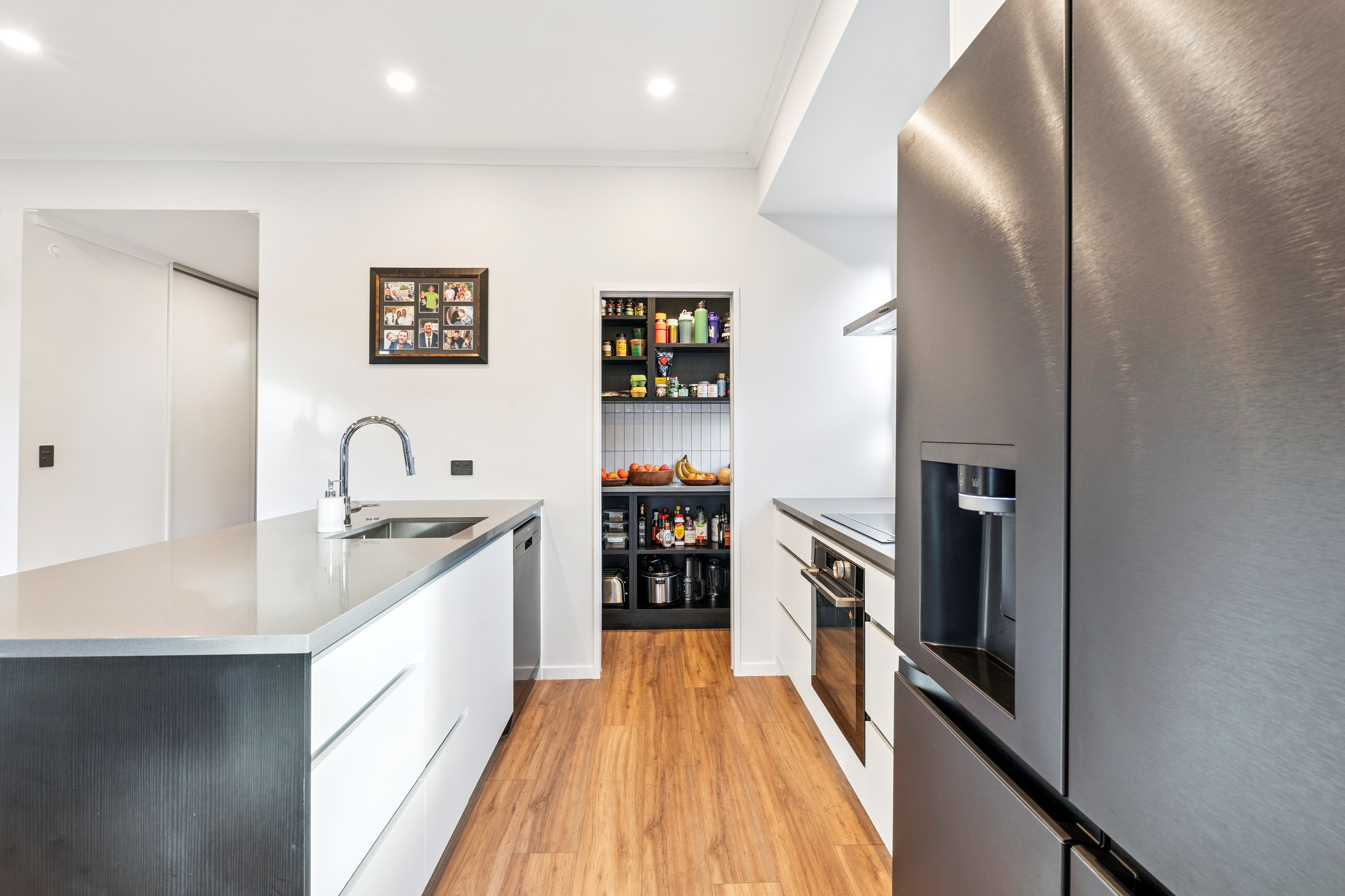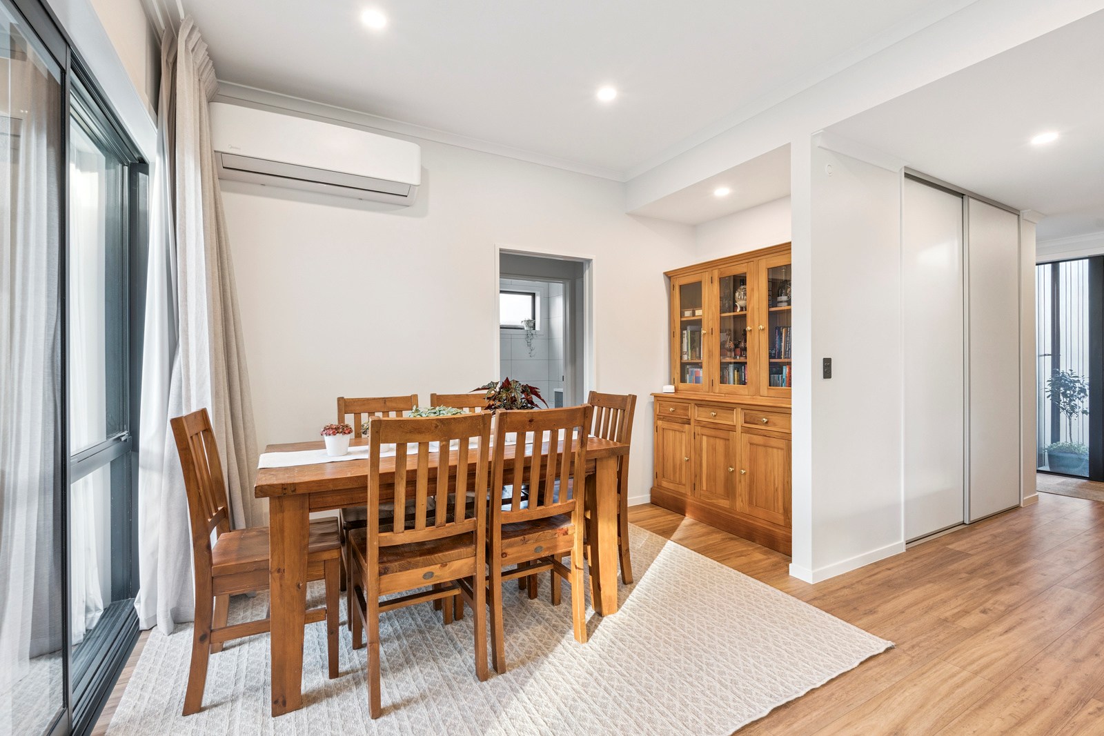 The home’s compact footprint is put to excellent use, with two further bedrooms, a bathroom and separate powder room housed in a wing that can be closed off when required. The main suite enjoys privacy with a walk-in robe and ensuite. The open-plan kitchen — with a scullery to absorb any clutter — living and dining area connects seamlessly to the private, sun-soaked patio, establishing an inviting outdoor zone. Natural light floods this central living space, enhancing the warm, practical feel throughout. Carefully considered design and specification ensured this build delivers at a sharp price point. It’s easy to imagine the homeowners feeling right at home from day one — everything is here, and it all works.