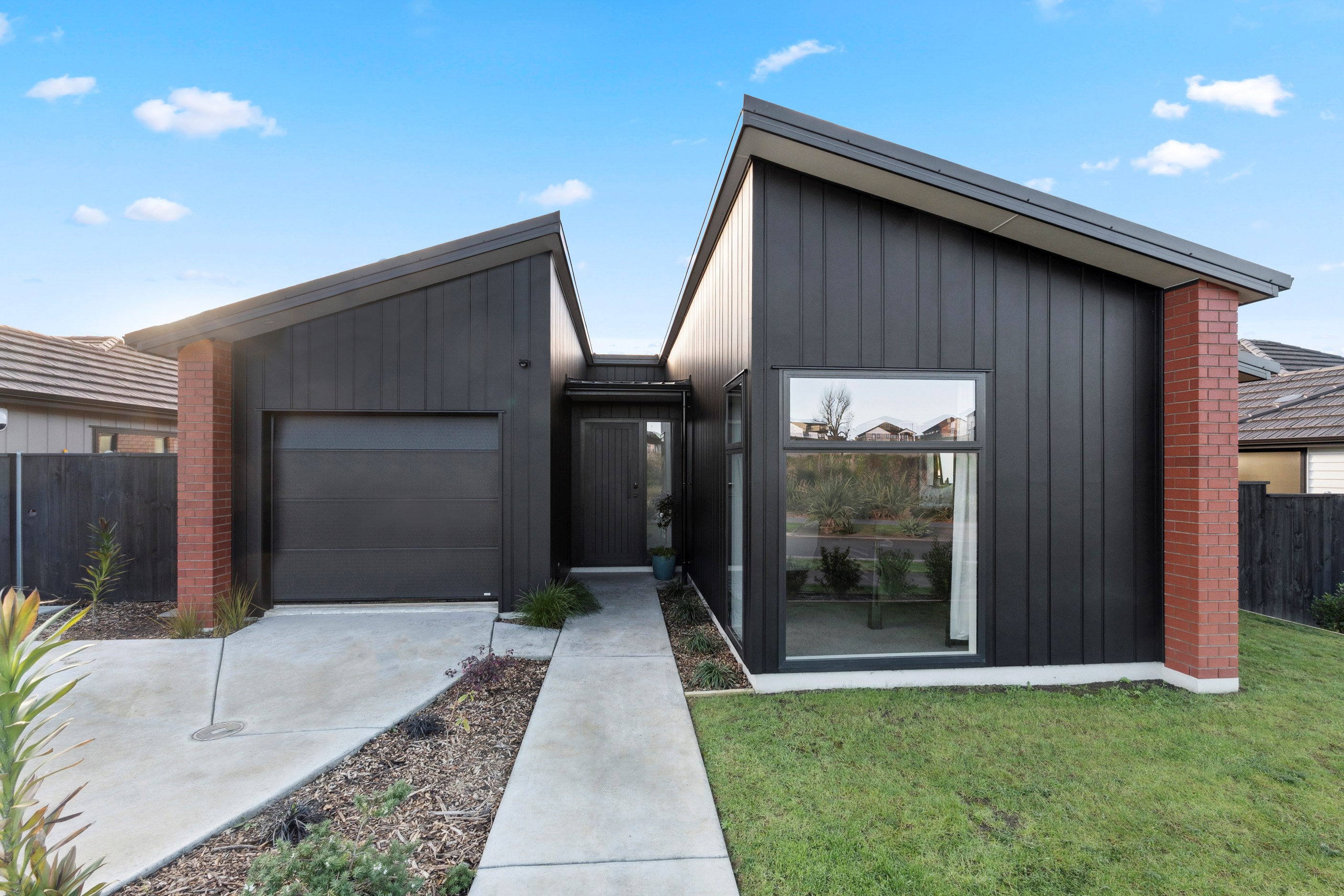 This thoughtfully executed family home makes a compelling case for smart, stylish first-home design. With its H-shaped footprint, the 132sqm layout creates clearly defined spaces, while providing natural shelter to both the entryway and rear patio — enhancing comfort and liveability from the outset. At the front, a striking façade of red brick and black weatherboard cladding balances classic appeal with modern boldness. Drive into the single-car garage and step into a spacious entrance hall, which leads to the living area in one direction, the main bedroom in the other.