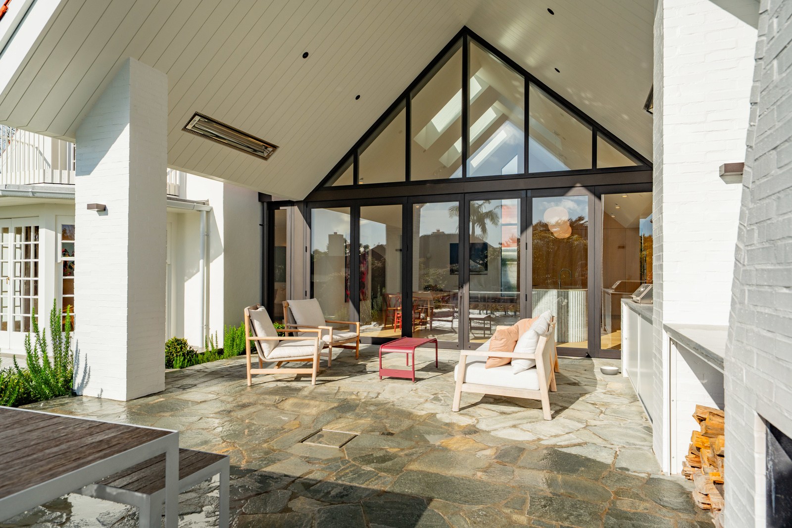 It’s quite the responsibility to take on a refurbishment and extension project involving such a grand, old and beautiful home. Not every builder has the right skills, including an uncommon attention to detail, to do such a sensitive job justice. Enter the Ninety45 team, who have meticulously restored the 1920s home, added a two-level pavilion, replaced outdoor terraces and upgraded the pool, all without diluting the charm of the Arts and Crafts-style manor. Partial demolition was required to accommodate the two-level architect-designed extension. This work not only underscores the home’s pedigree (with premium materials and details that preserve character), but introduces new features that add to the charm.