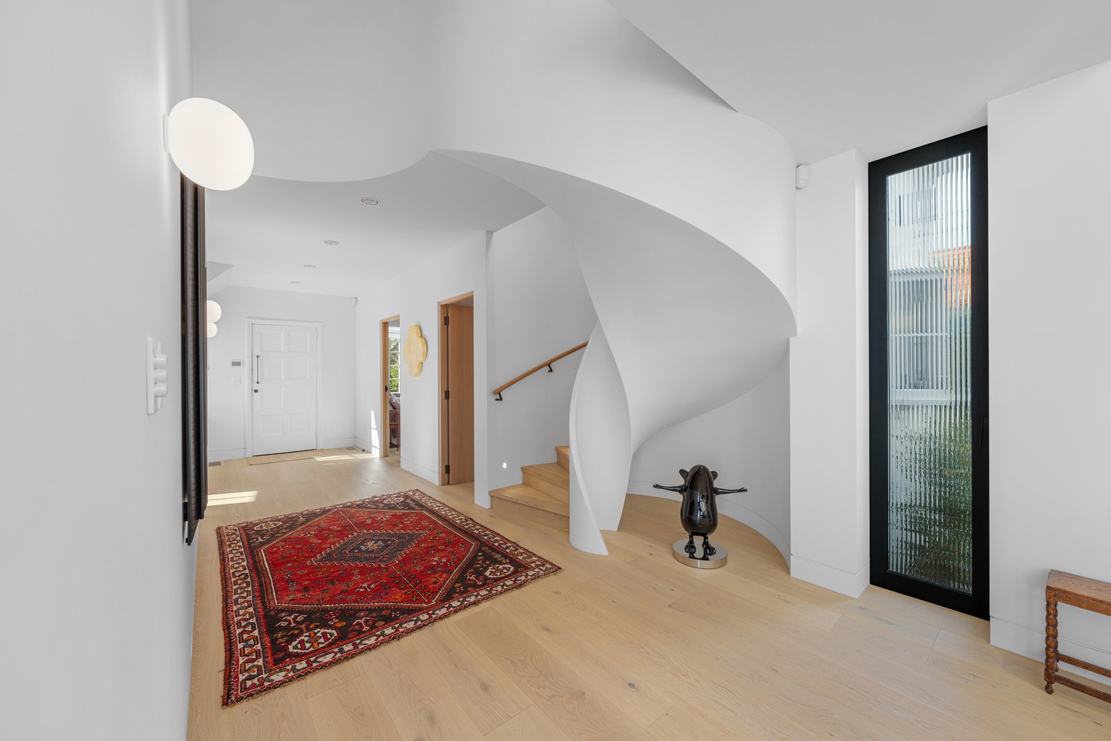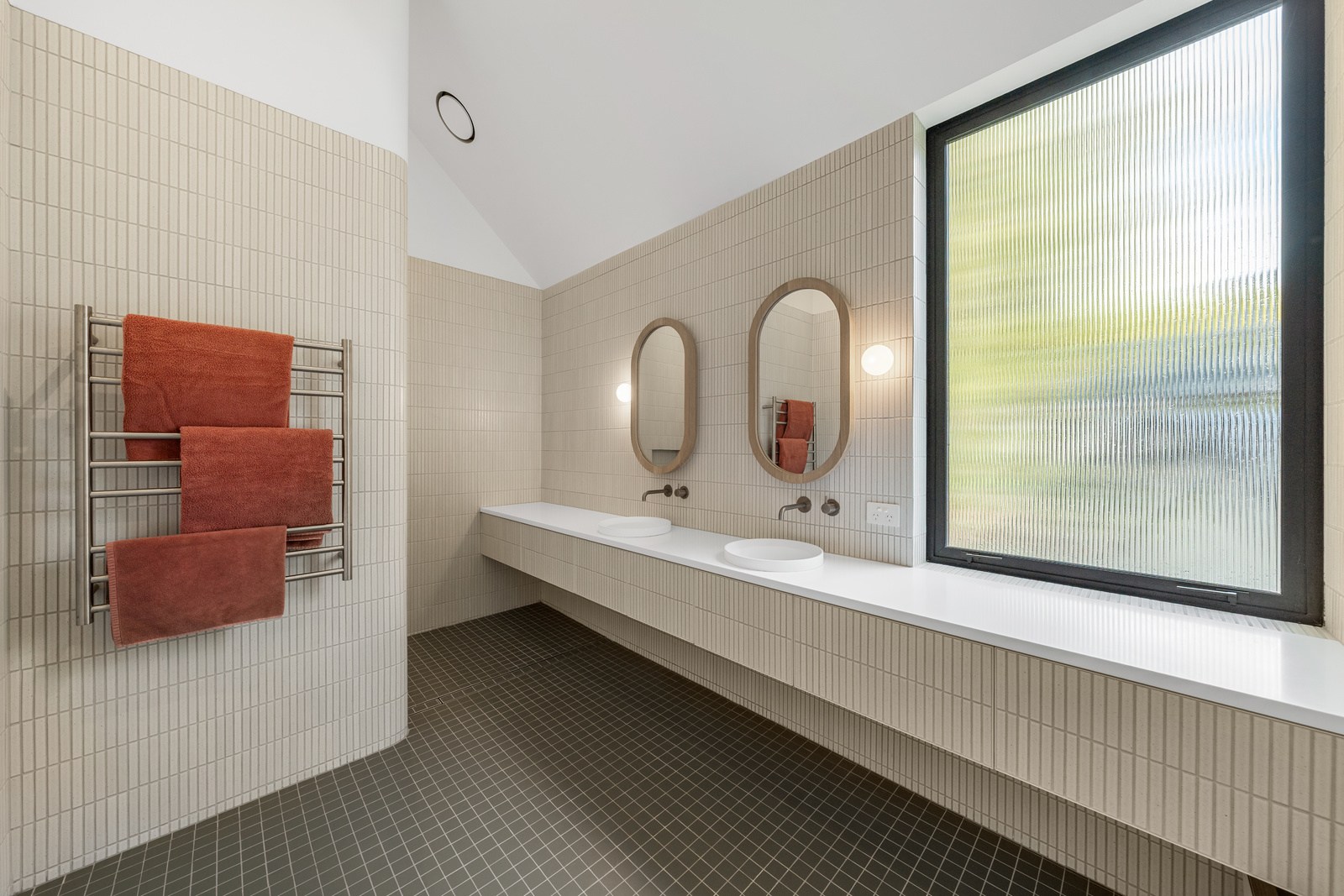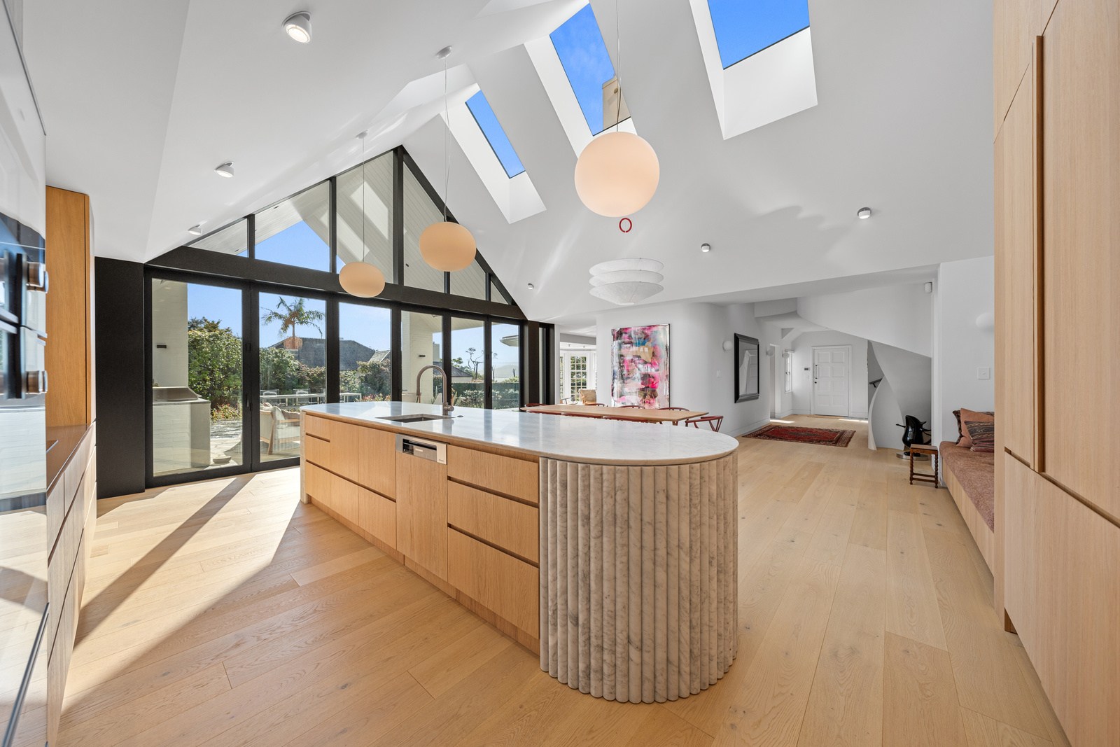 Just look at the twisting staircase that’s as much art as a means to the upper floor, the light flooding through skylights and floor-to-pitched ceiling glazing, and the kitchen with its marbled and fluted curved island. Sustainability measures have also been installed: improved insulation, rainwater collection, solar panels, in-slab water heating and recessed heaters in the loggia ceiling, which help ensure comfort and the house’s longer-term performance. This 405sqm home with four bedrooms, three bathrooms and two living rooms is an exemplar of how to flawlessly merge the past and present. That’s what happens when award winning design is carried out by builders at the top of their game.
