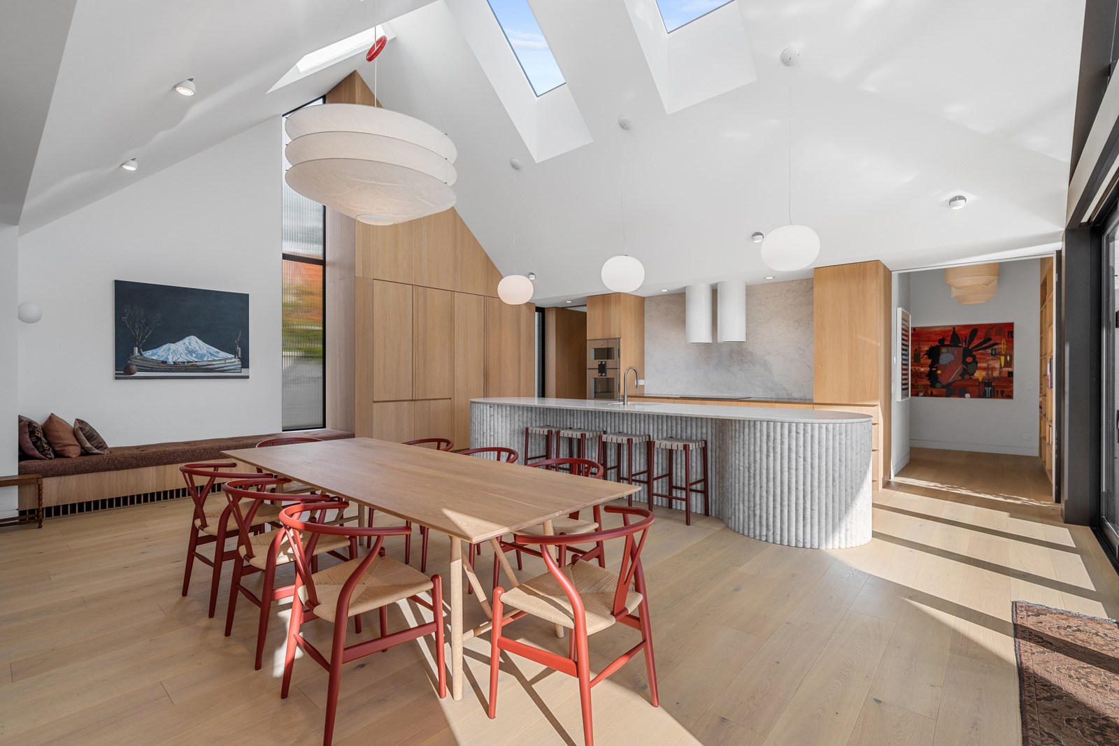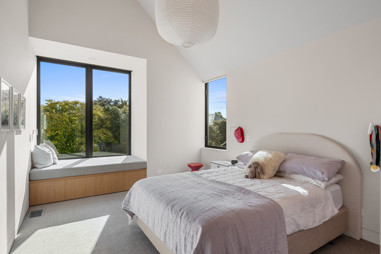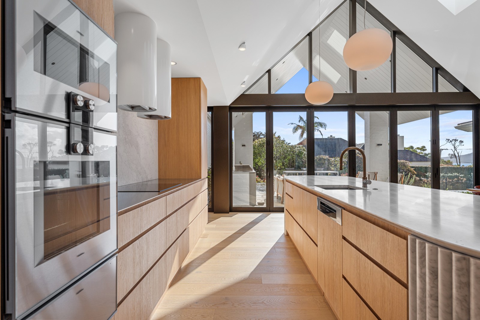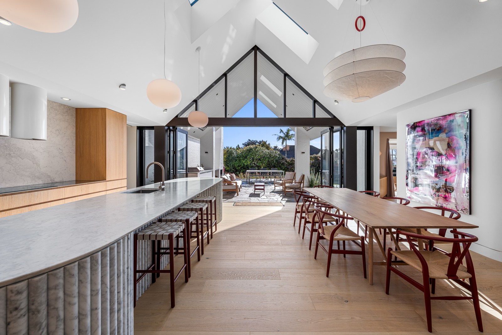 Just look at the twisting staircase that’s as much art as a means to the upper floor, the light flooding through skylights and floor-to-pitched ceiling glazing, and the kitchen with its marbled and fluted curved island. Sustainability measures have also been installed: improved insulation, rainwater collection, solar panels, in-slab water heating and recessed heaters in the loggia ceiling, which help ensure comfort and the house’s longer-term performance. This 405sqm home with four bedrooms, three bathrooms and two living rooms is an exemplar of how to flawlessly merge the past and present. That’s what happens when award winning design is carried out by builders at the top of their game.
