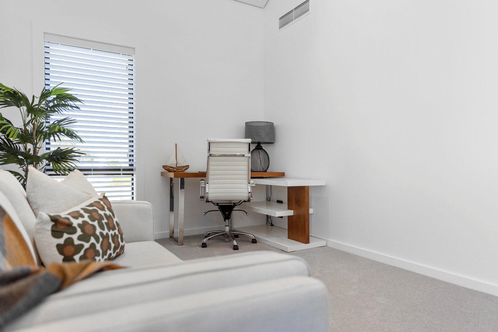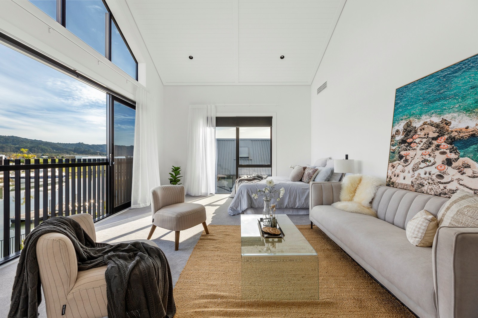 It should come as no surprise that the client was a designer. The widespread glazing frames the views and some of it opens to lovely outdoor entertaining spaces. A private pontoon is ideal for the boatie in the family. One of the special features of this property is the fact it has two main-bedroom suites with walk-in robes and ensuites, one upstairs and one down. The upstairs sanctuary has a standalone bath, double shower, office and a balcony. The practicalities have been addressed beautifully, too. Lots of visitors? The third lounge can be used as a fifth bedroom. Additionally, the designer kitchen has a scullery, a lift future-proofs the property and there’s even an outdoor shower for post-swimming or fishing rinse-offs. What better place to call home — or holiday heaven?