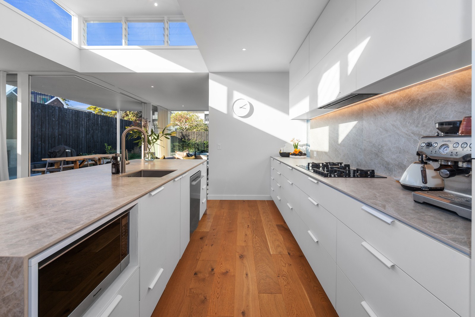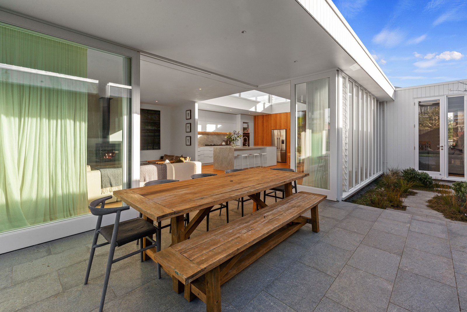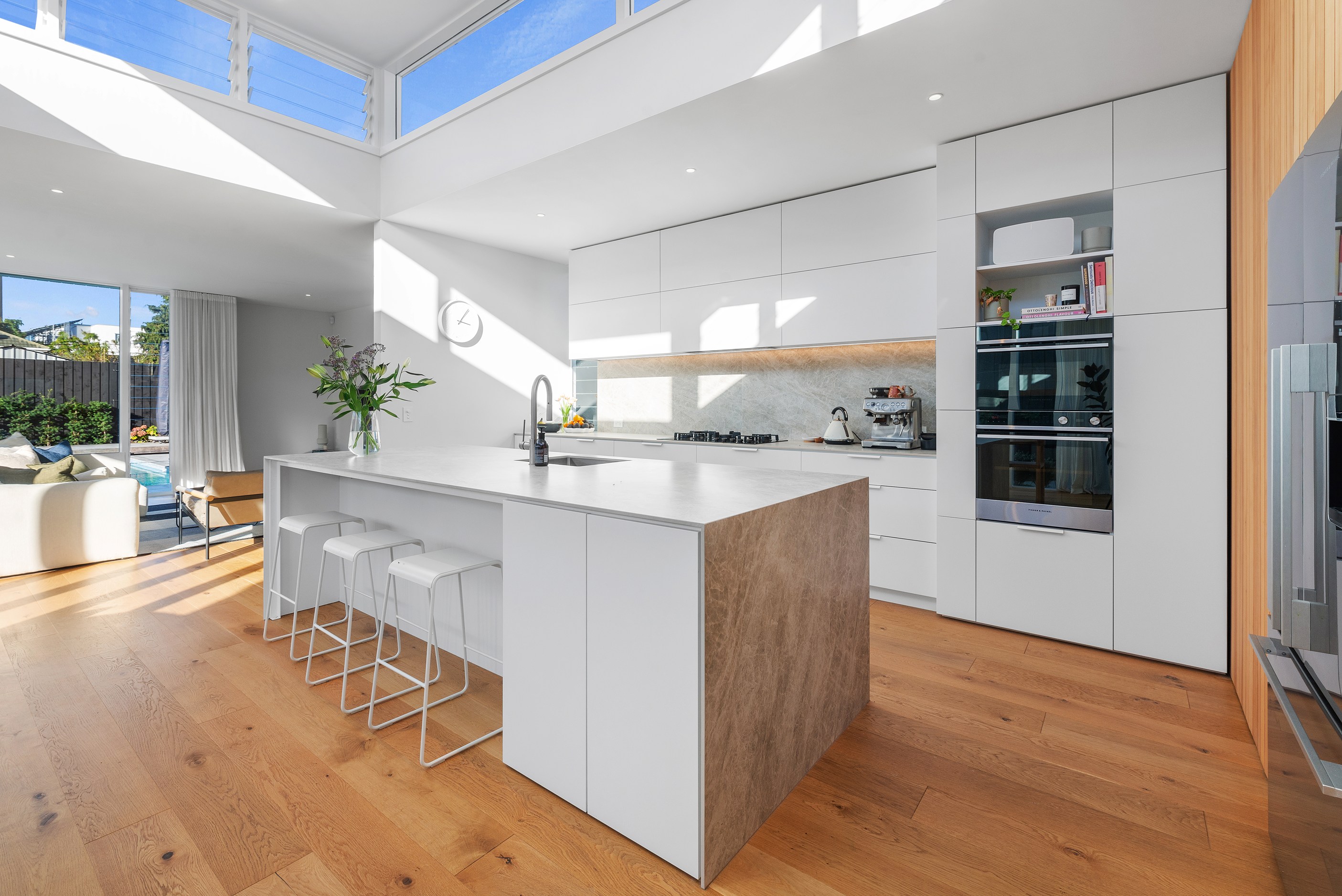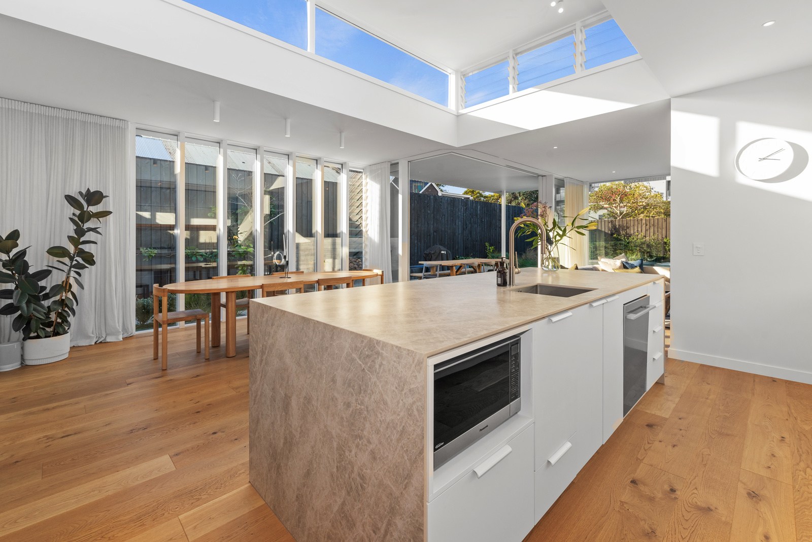 Teamwork is always a vital component of successful renovations, and this project in Auckland’s central suburbs is a case in point. The team has pulled off a remarkable transformation of a small, “compromised” 1920s cottage on a sloping site. Now, the owners have a house that not only meets the changing needs of a family, but also adds a spacious, contemporary extension that seamlessly links to the old house. The cottage itself, in a council-designated heritage zone, has been sympathetically and scrupulously restored. Today, the family has a fresh, lovely 270sqm home with four bedrooms, three bathrooms, two living spaces, basement garaging and a landscaped courtyard with pool.