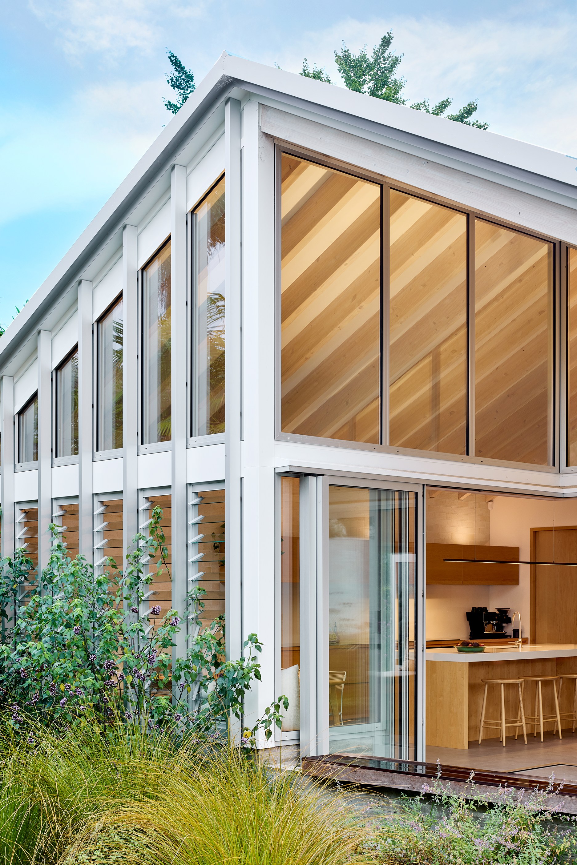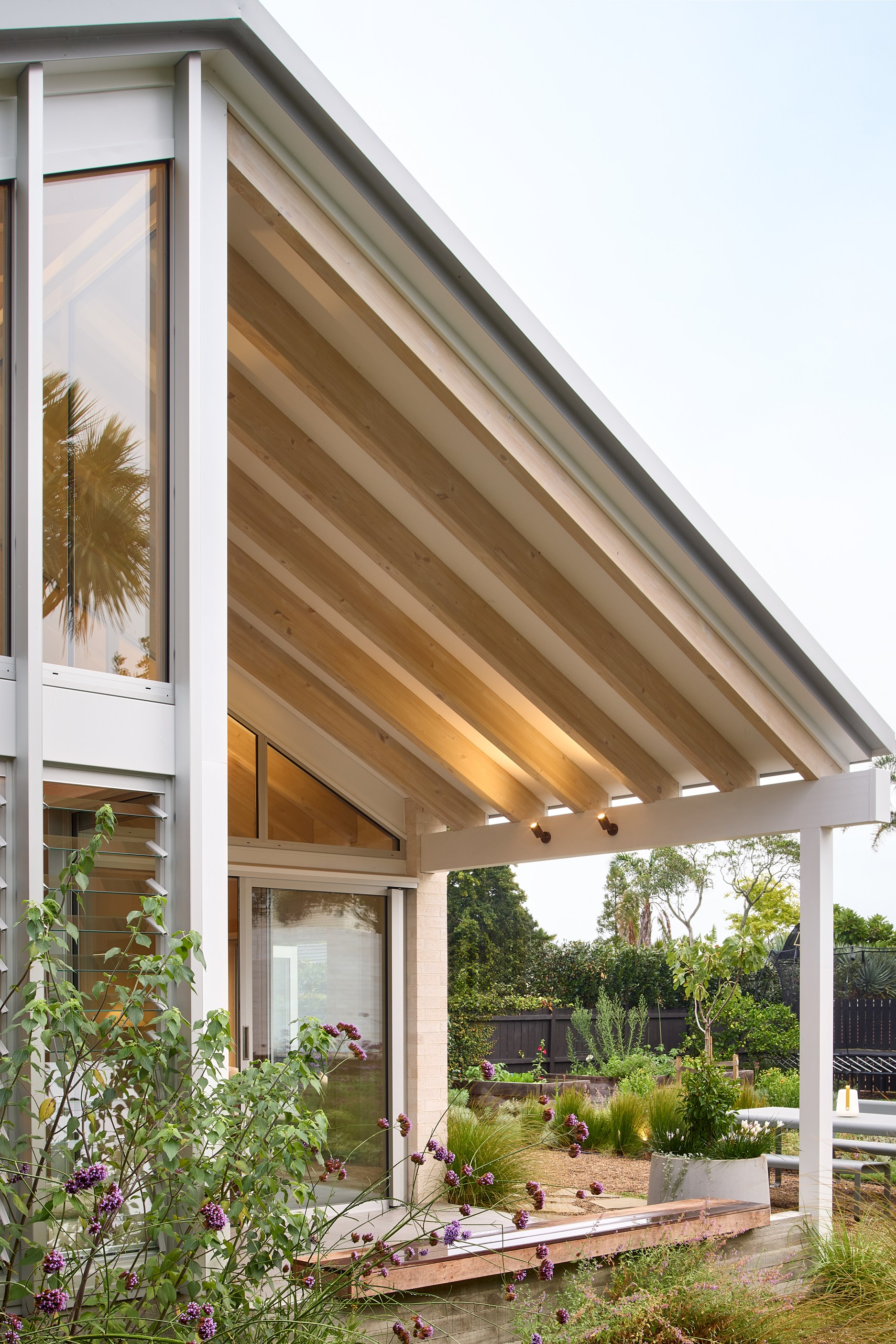 Tucked away on a generous city-fringe site, this 1990s home has been dramatically reimagined. What began as a tired plaster-clad structure is now a contemporary, light-filled residence designed by awardwinning architect Guy Tarrant. Although the original footprint was only modestly expanded, the renovation was extensive. Large-scale demolition made way for a modern rebuild that retained the garage, parts of the ground-floor wall structure and the first-level floor.