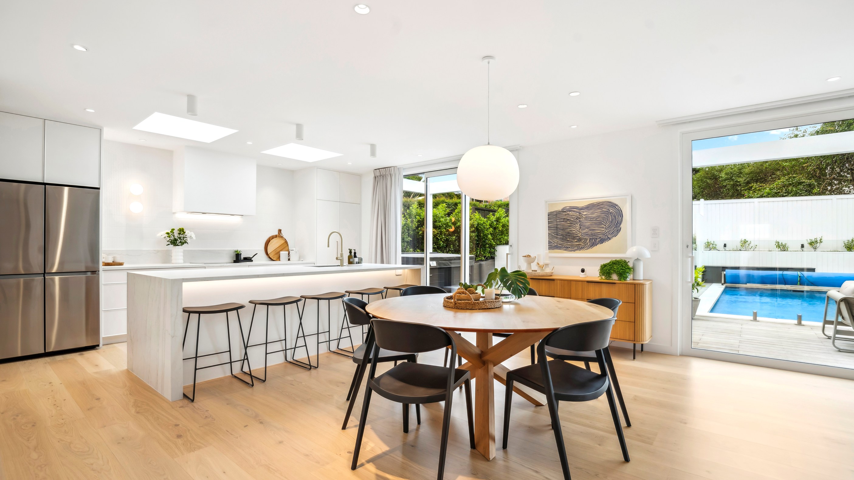 Architecturally designed and expertly built, this two-storey residence is a confident expression of contemporary family living. Set on an elevated section, it offers 244sqm of beautifully detailed space, combining high-performance materials with refined aesthetics and a thoughtful layout. The exterior features timber weatherboards in a carefully selected profile, paired with curved concrete forms that are echoed subtly inside. The interior configuration includes four bedrooms, three bathrooms, two living spaces, as well as a dedicated media room and a double garage — all finished to a high standard.