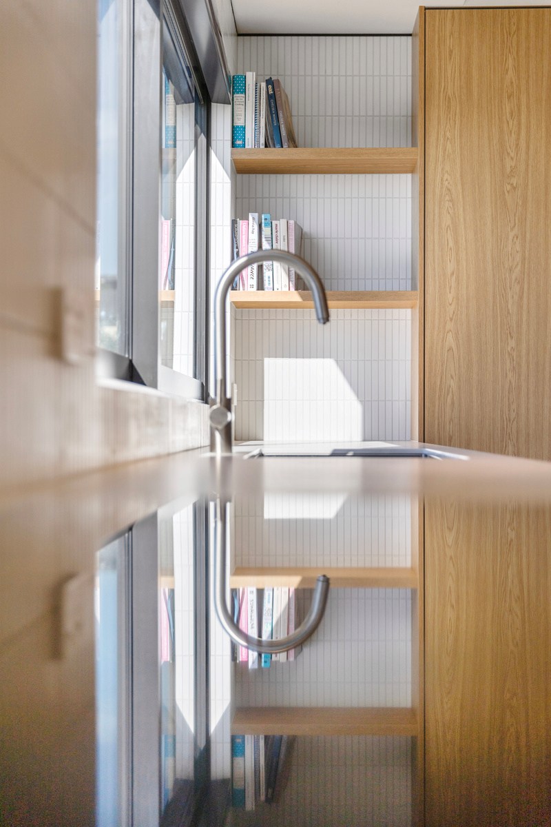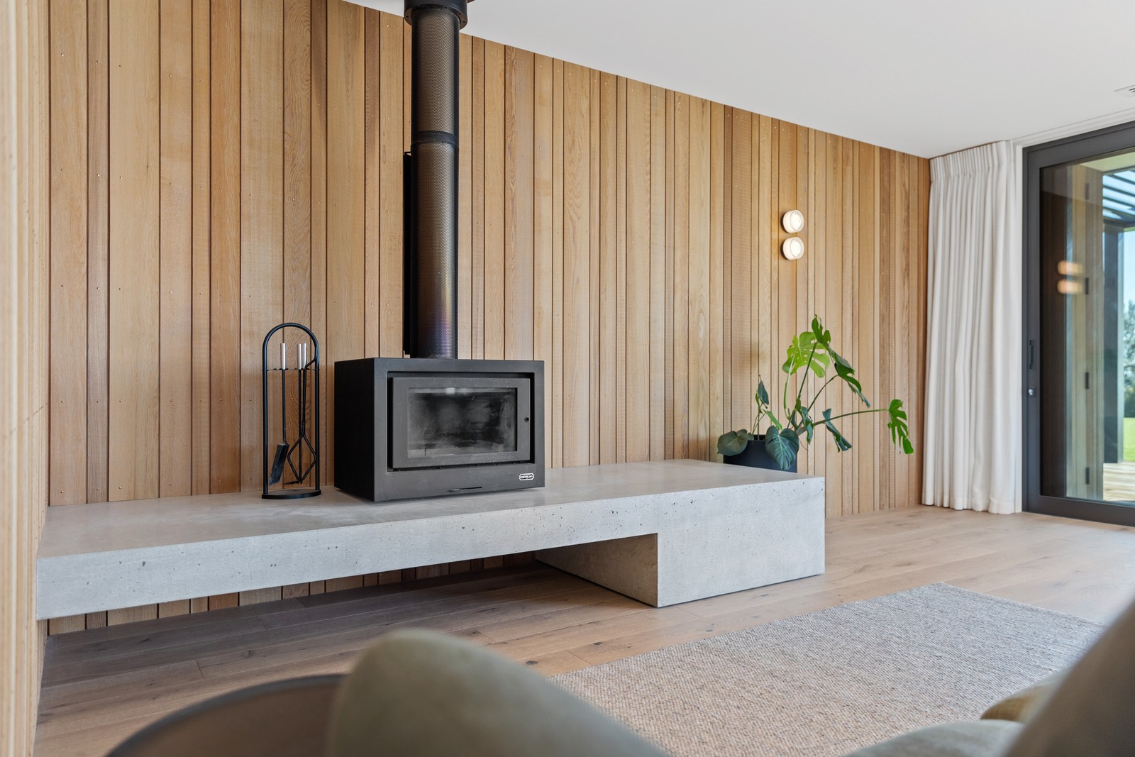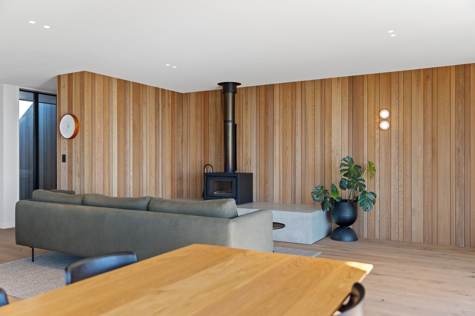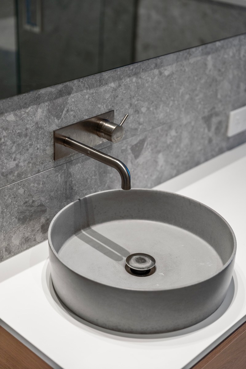 Set against the luscious bush of this rural ridgeline, this striking home blends architectural form with the natural environment. The exterior of the 247sqm residence is clad in a combination of cedar and dark steel that work to ensure it sits comfortably in its surrounds. The clean lines of this design begin at the welcoming entrance, which leads you through into the expansive, light-filled spaces beyond. Once inside, the home unfolds with meticulous attention to detail and craftsmanship. The interior design complements the architecture with a restrained, textural palette that champions natural materials and understated elegance. Cedar-panelled walls and streamlined cabinetry create layers of interest.