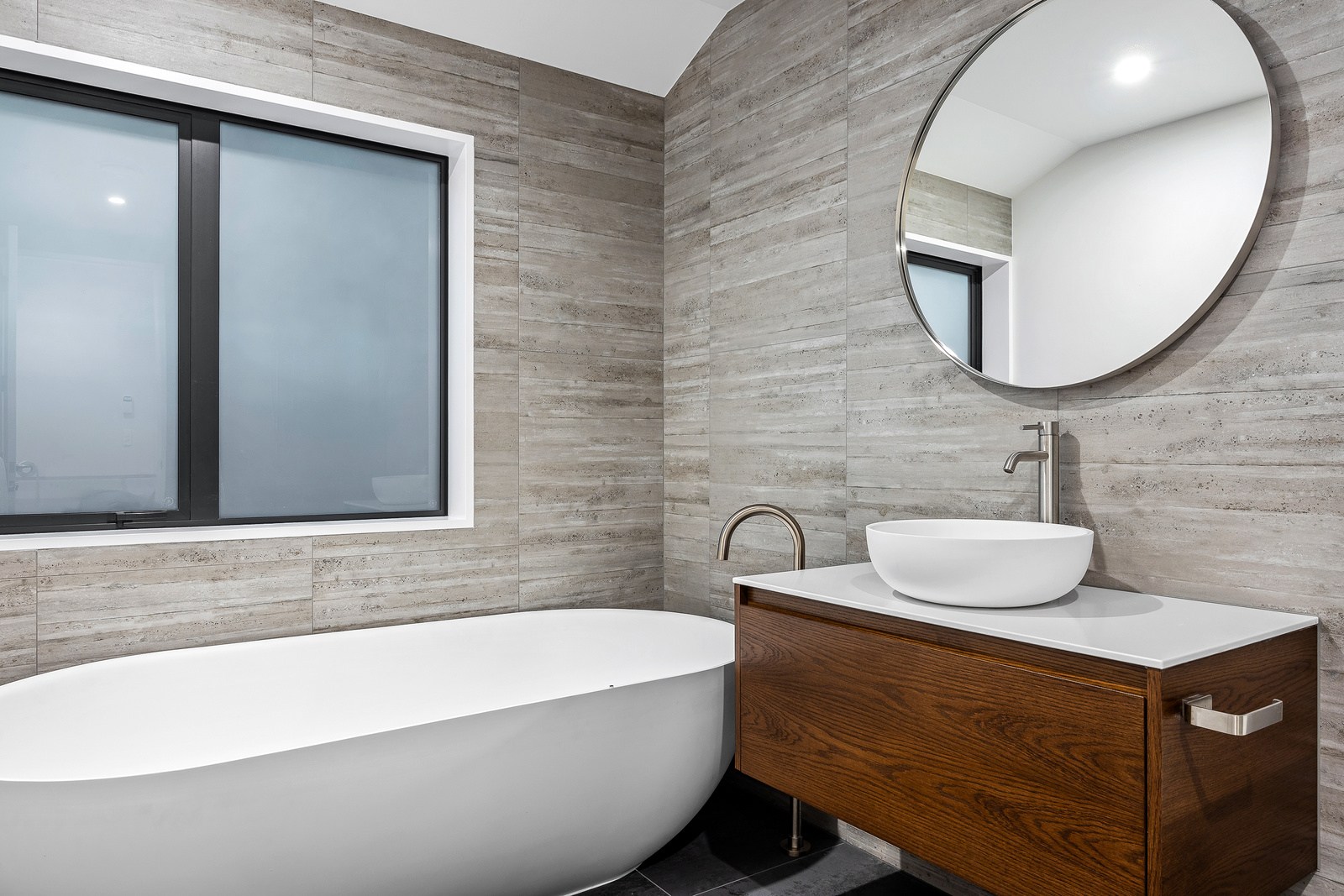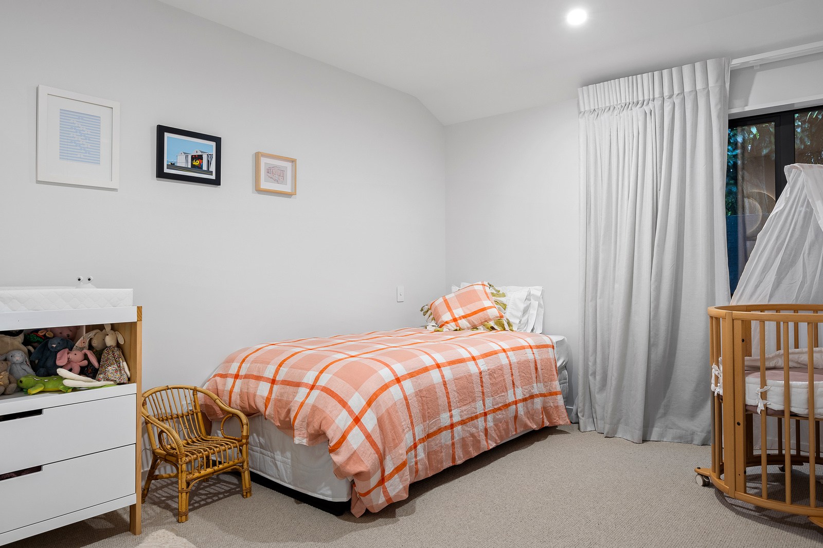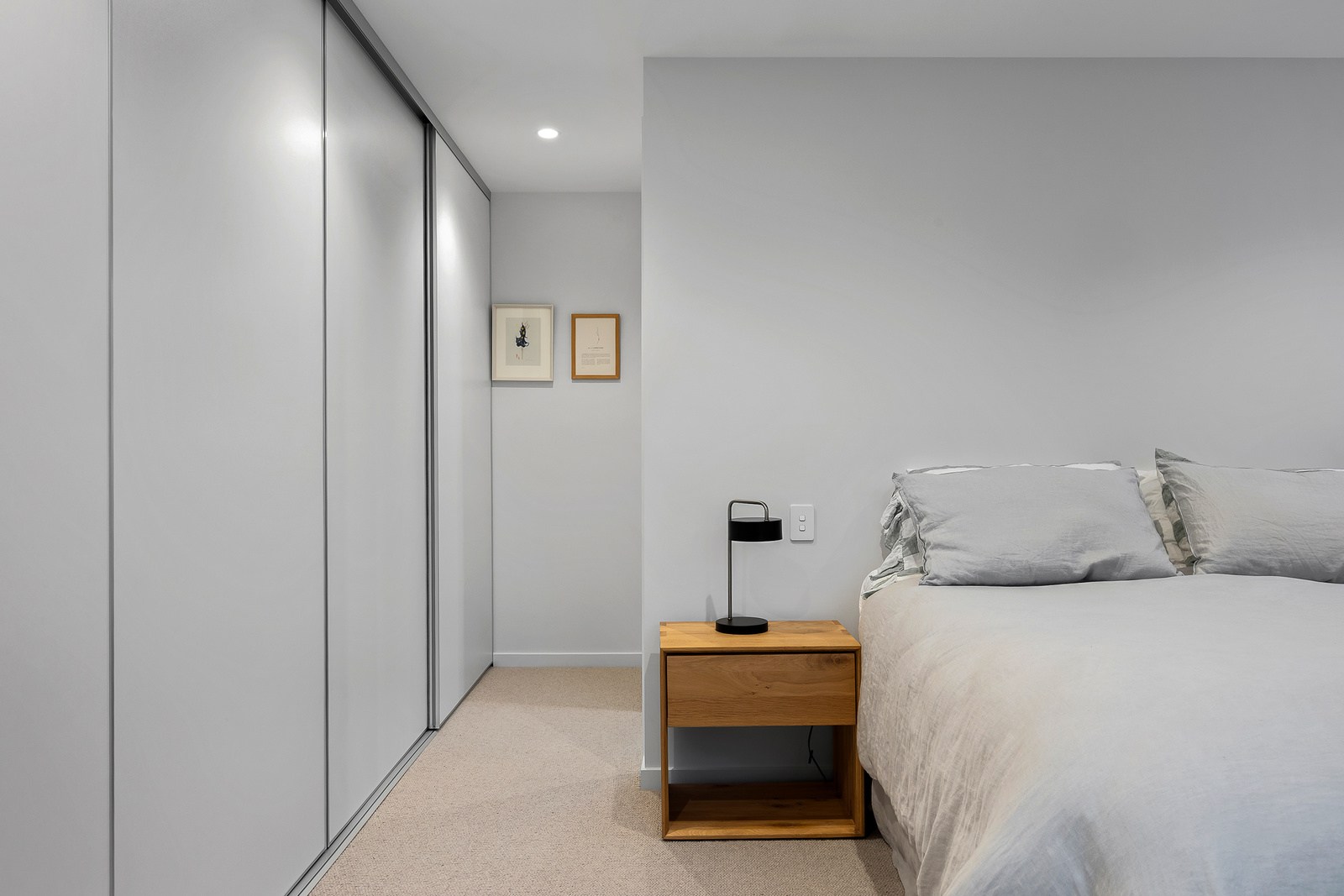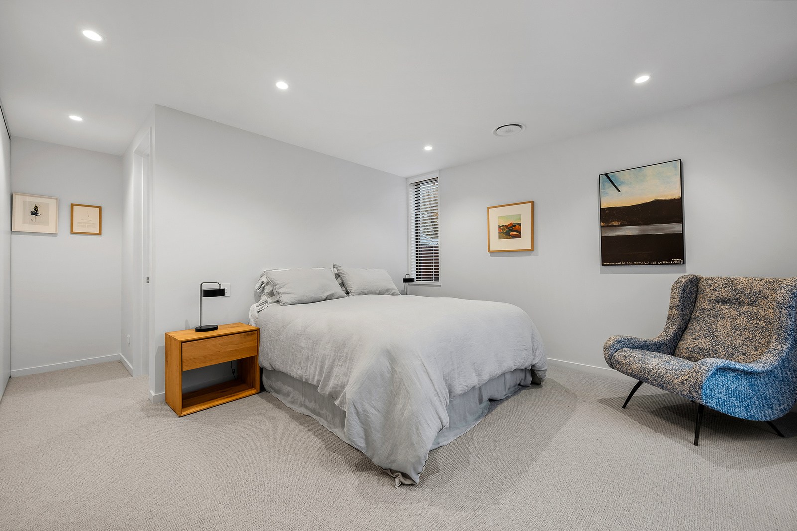 Tucked down a driveway in an established Christchurch suburb is a new piece of modern sculpture. The architect-designed three-bedroom home is bold with strong lines, intriguing angles and a dazzling white and timber multi-textured exterior. Yes, it’s an exemplar of contemporary elegance — the exterior is crafted from European bricks, cedar and metal wall cladding and roofing — but also of design smarts. The 198sqm house fits neatly into an irregular-shaped section, with a stream on one boundary. Built with high-rated timber piles and double-pod foundations, it’s also strong and stable.