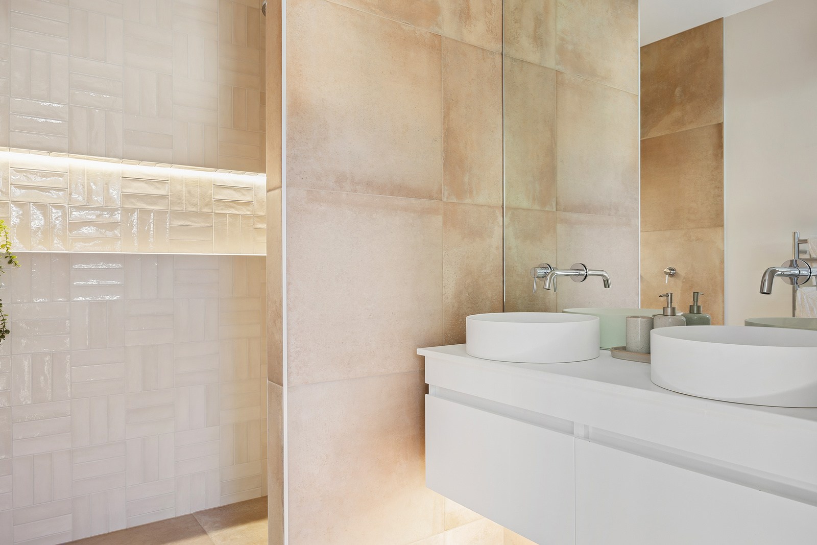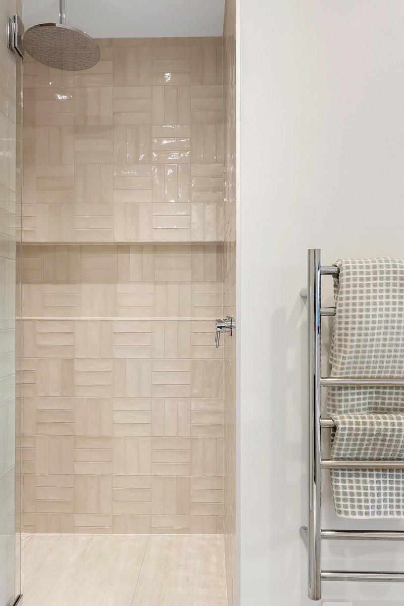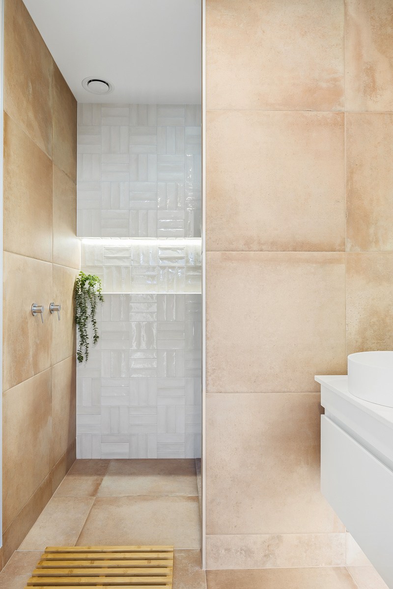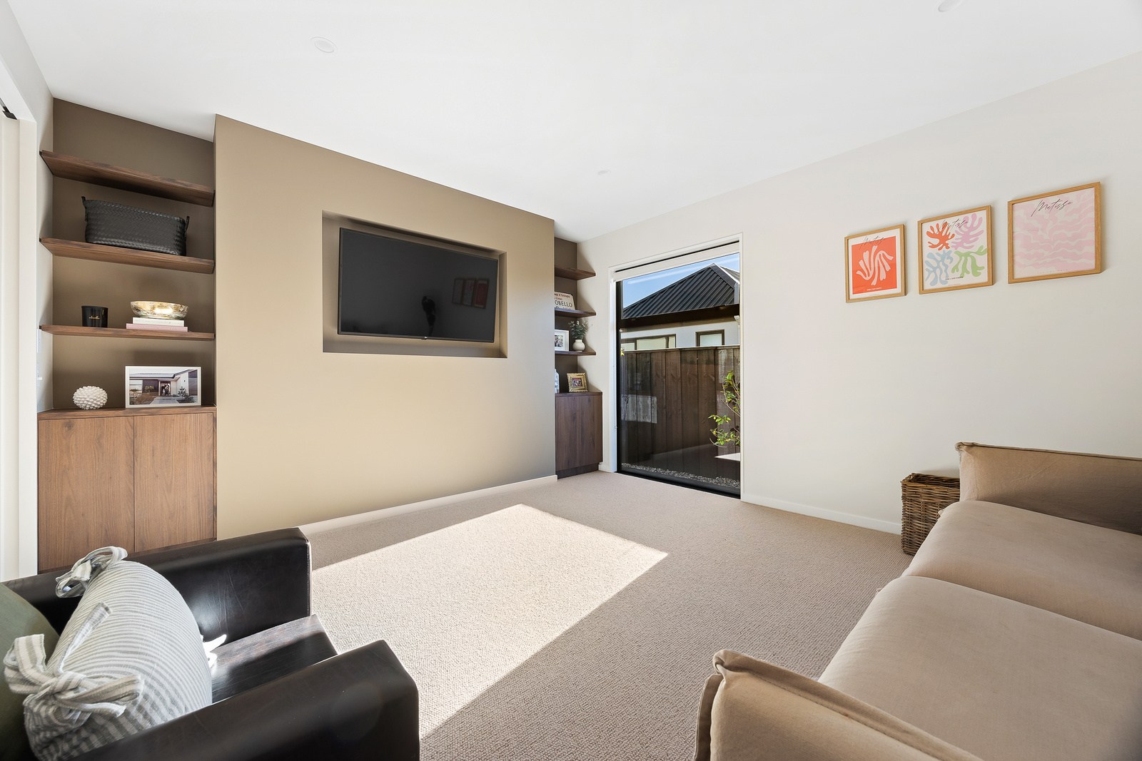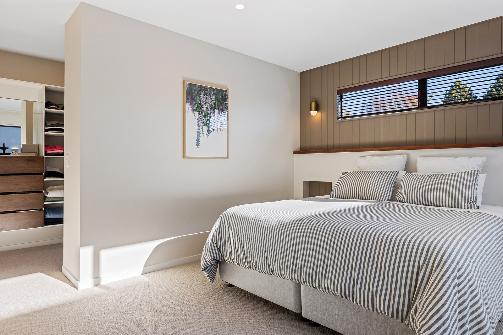Continuity is key: timber flooring flows seamlessly through the living zones, whilst cabinetry and colour choices carry the same warm tones into every room. There’s elegance in the detailing (feature tiling in the bathrooms and a built-in headboard and bedside tables in the main bedroom), but it’s the functional customisation that really shines. A standout is the bespoke cloakroom and laundry, designed with five individual storage nooks to suit a busy household. Even the entryway makes a statement, continuing the external cladding indoors to blur the boundaries between inside and out. Every design choice feels intentional — creating a home truly fit for everyday life.