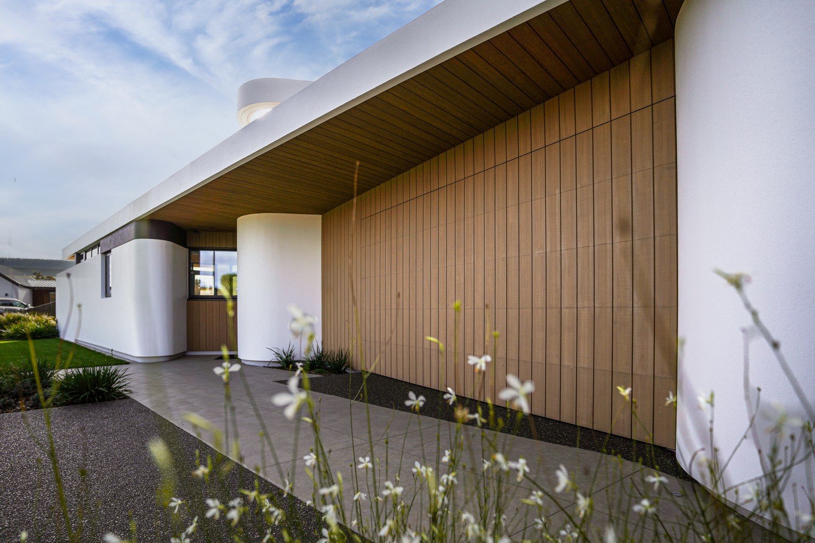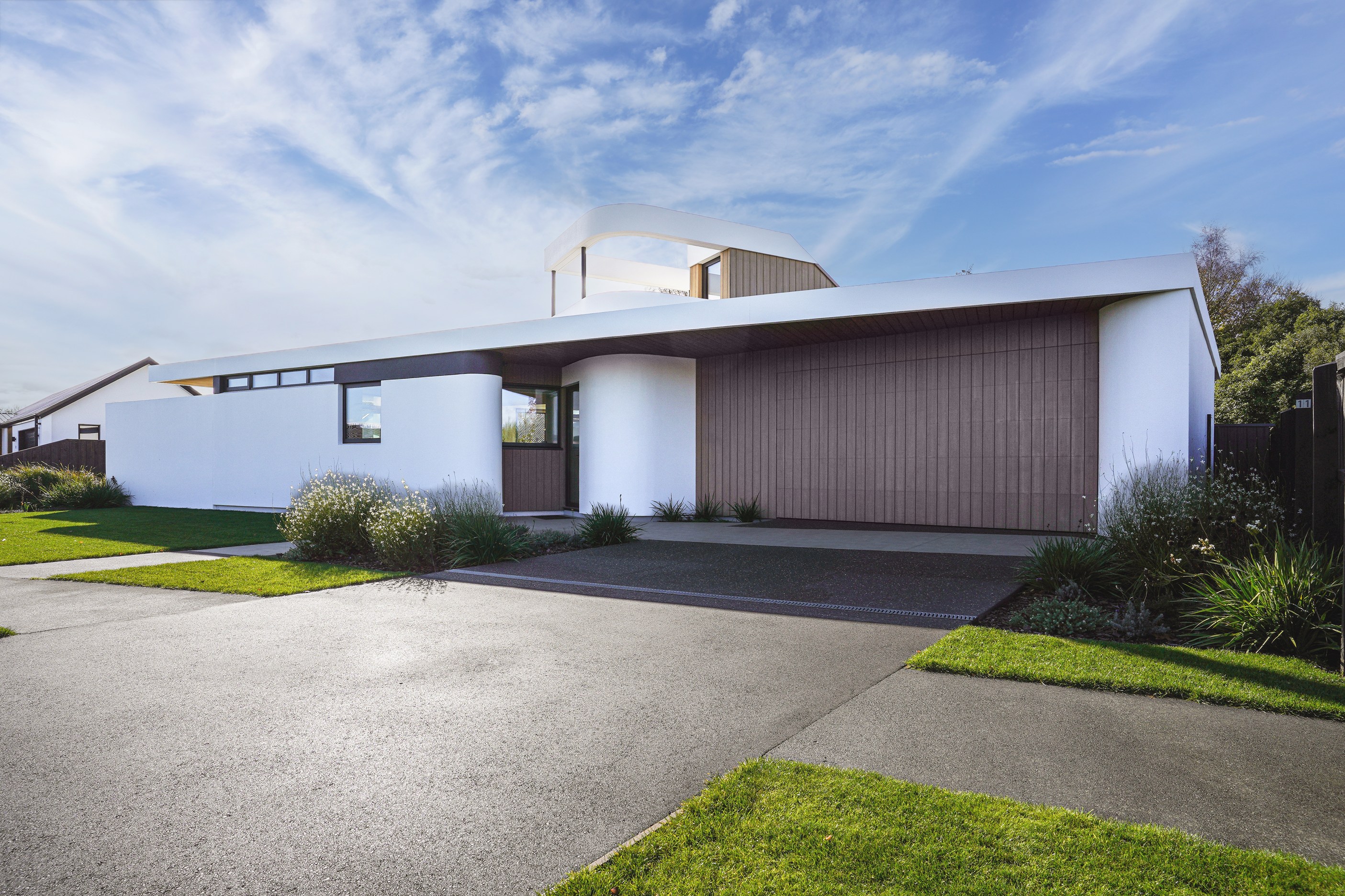 Every so often, a house pushes the boundaries in exactly the right directions. This two-bedroom, two-bathroom stunner is one such home. The 207sqm property marries design flair with passive high-performance principles; it looks like a work of art and feels like a home with comfort at its heart. Let’s start with its form, which has multiple ceiling heights, structural angles, curved walls and architectural detail. Given these features, it was always going to be a challenging build, but when you add in triple glazing, warm-roof technology and an airtight envelope, the complexity ratchets up further.
