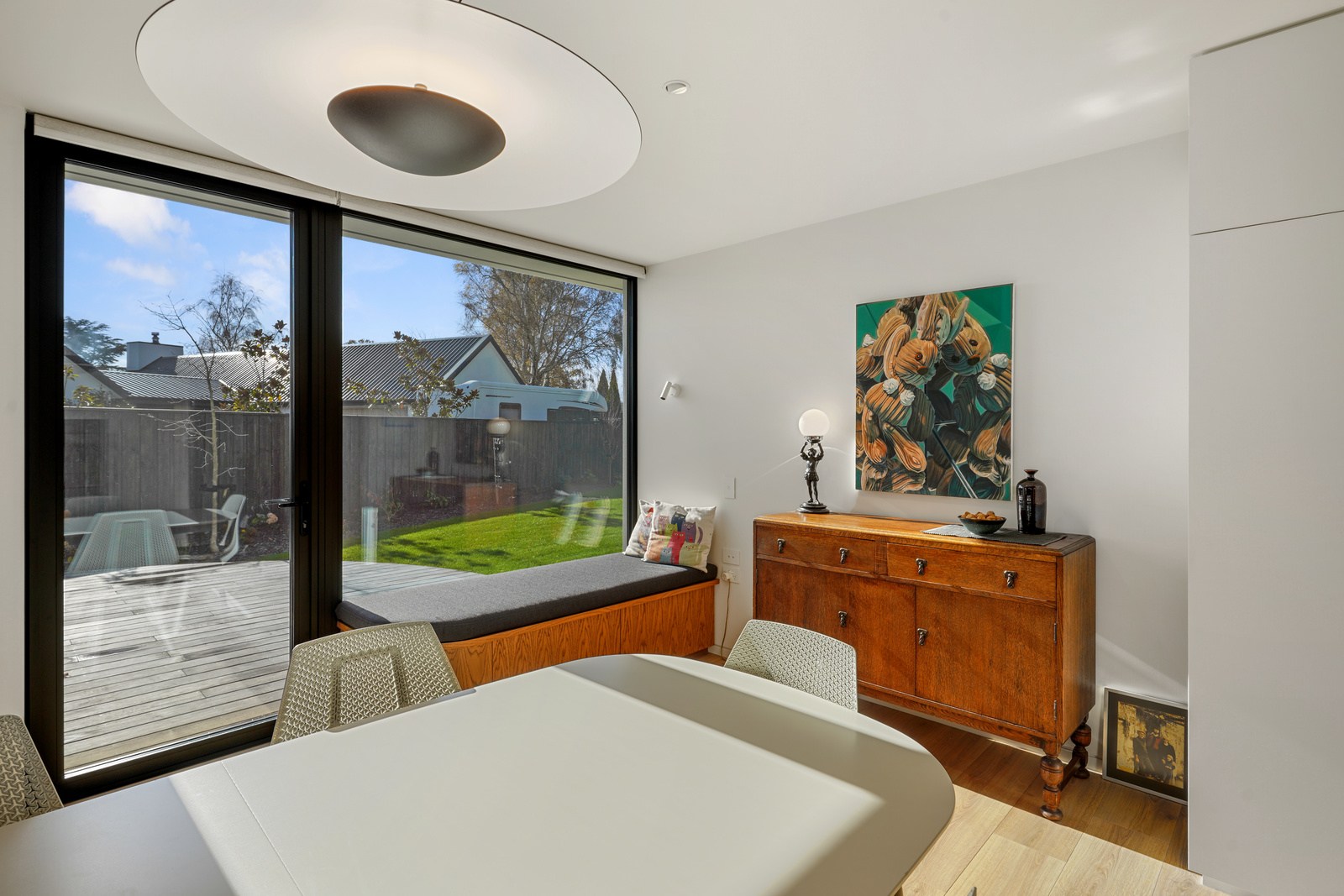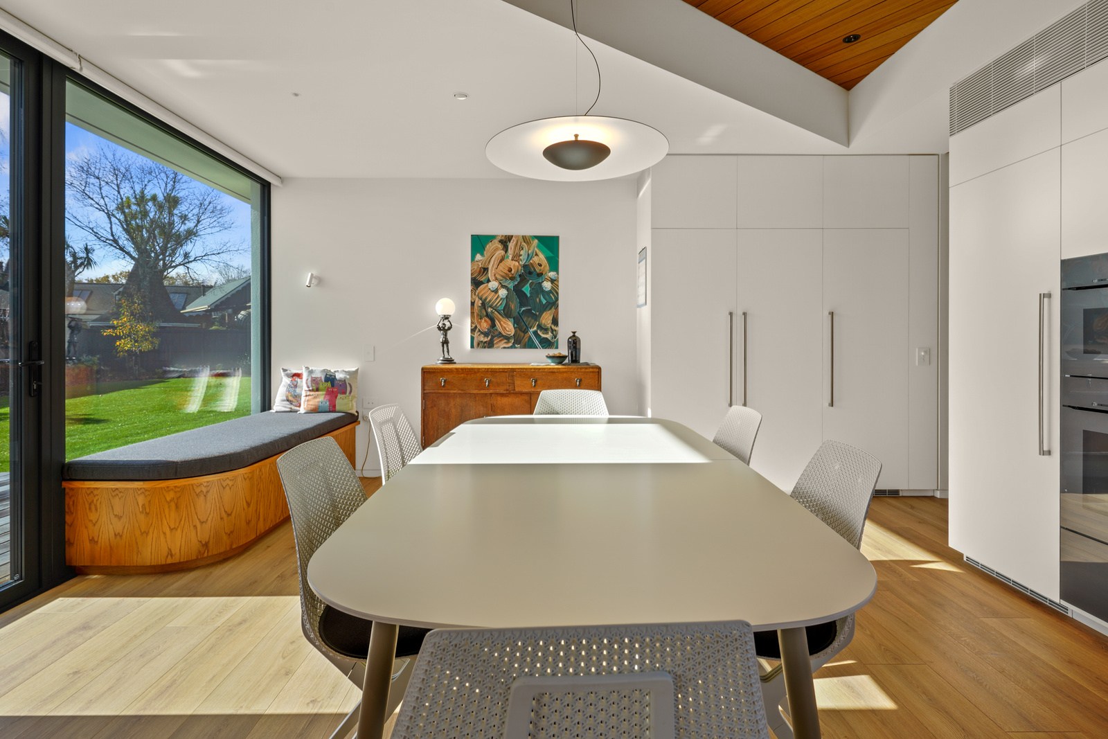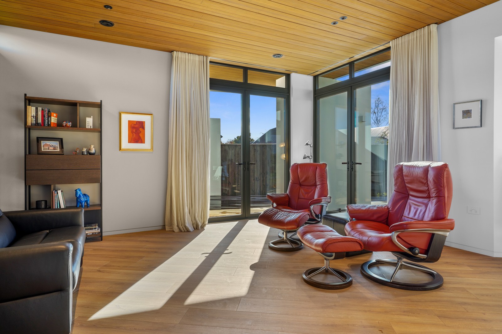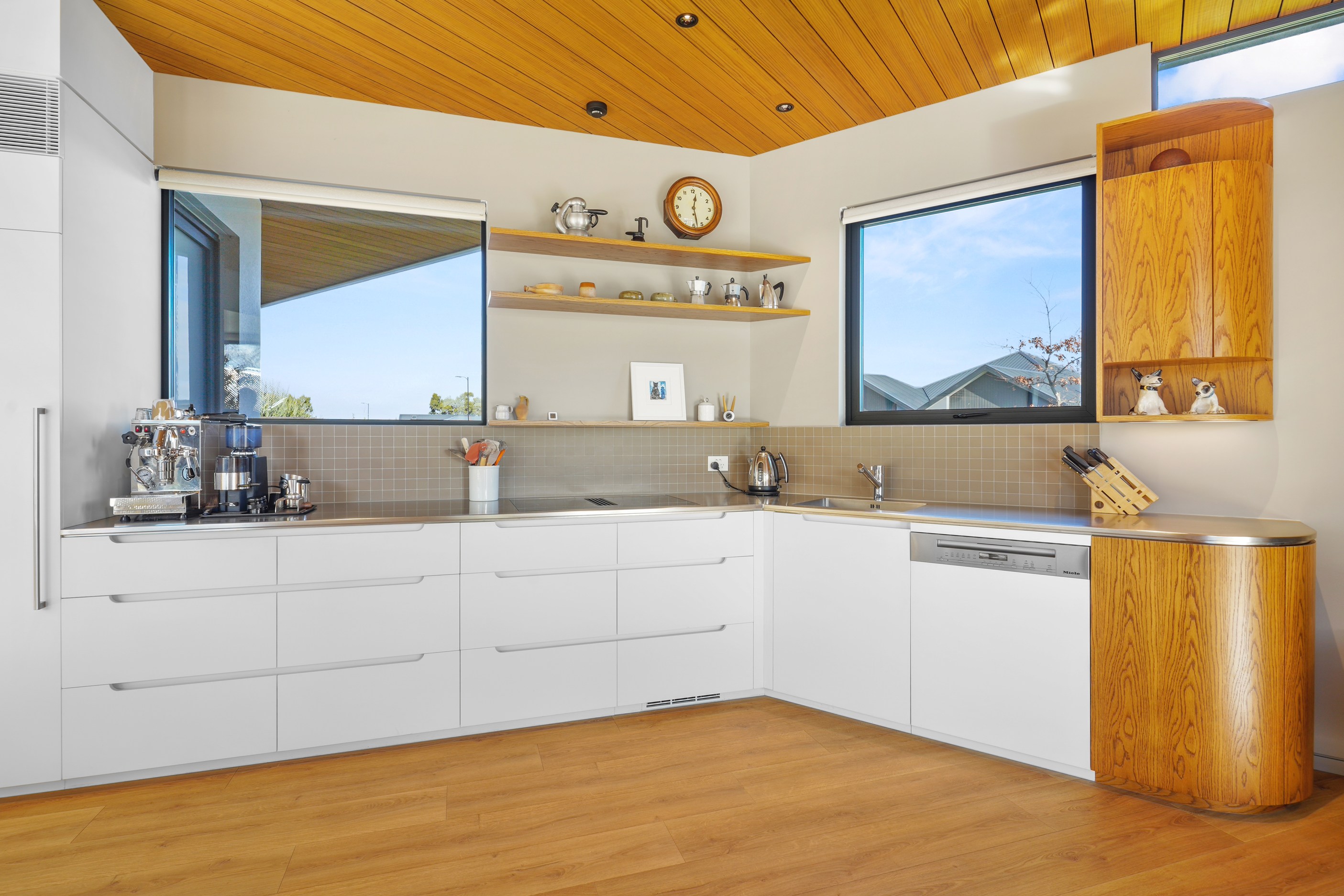 Despite its intricacies, this was a project the building team relished. Plaster and thermally treated timber have been used on the exterior to striking effect. A star-gazing roof deck for crisp clear nights is another eye-catching feature. Interior details are just as impressive. You’ll see timber ceilings, multiple curved walls, American white oak joinery, oak flooring and skylights. Suntrap courtyards extend living spaces outdoors, a large garage and separate laundry add storage and the hall doubles as an art gallery. A separate building with pottery and jewellery studios is in keeping with the style of the main house. In terms of performance the list is just as long — dual layers of wool insulation, a heat recovery system, an air barrier wrap, insulated slab and solar panels. High performance. High style.