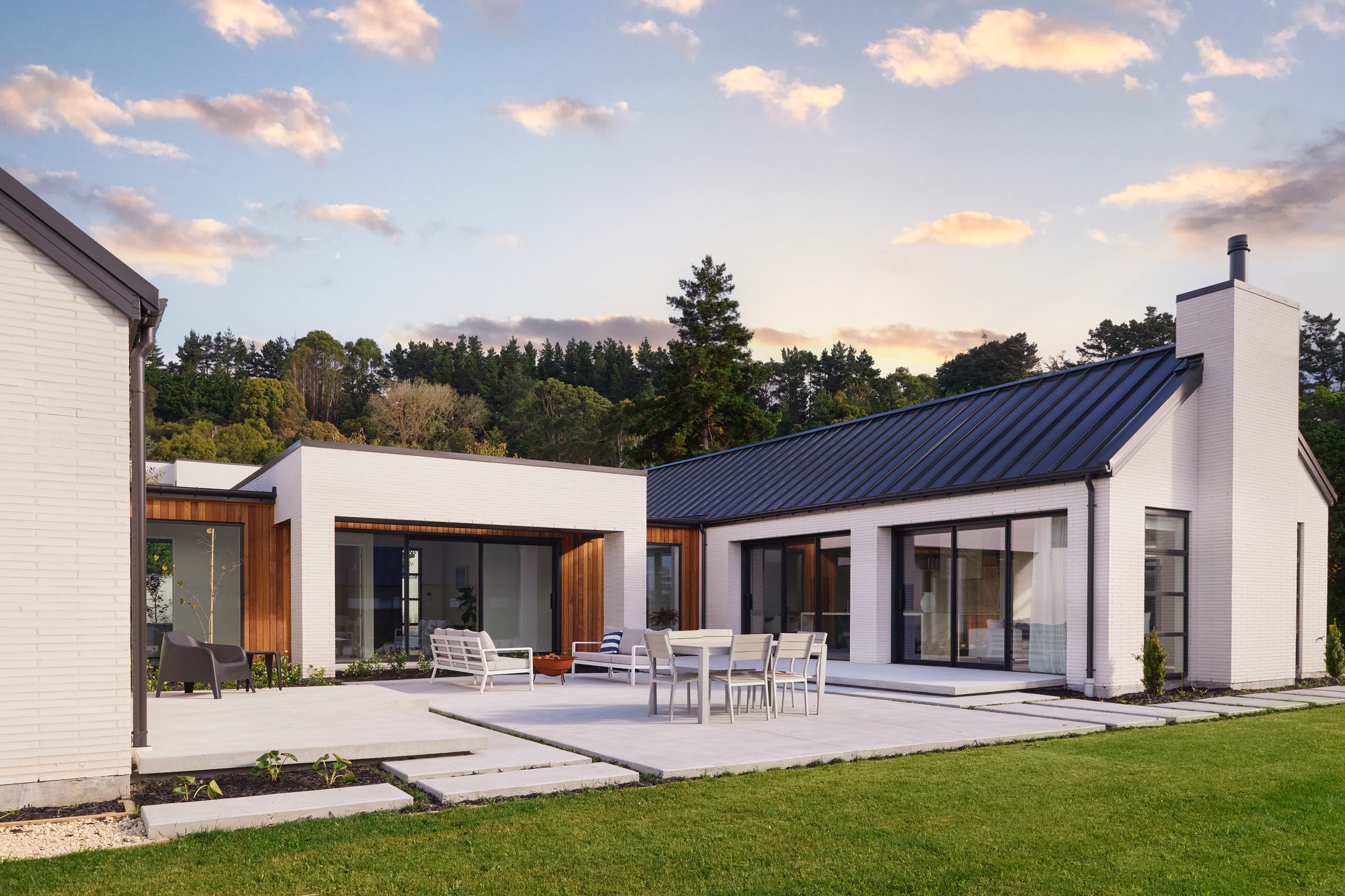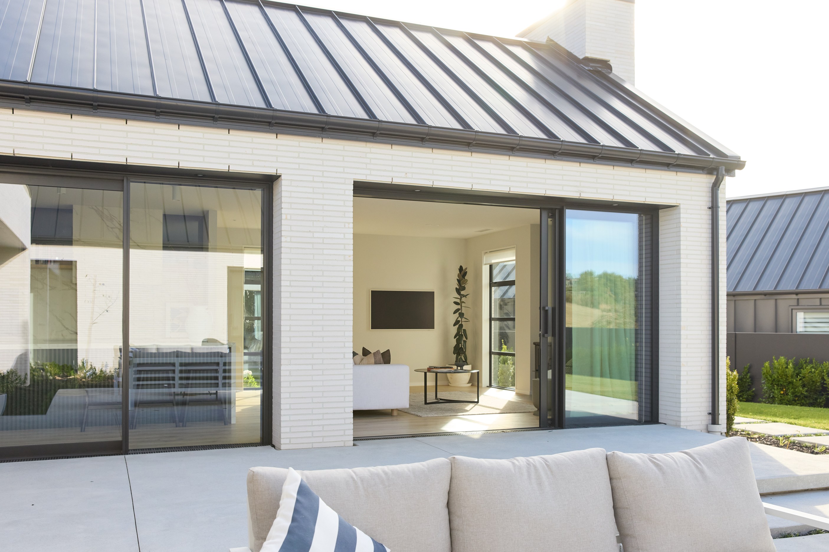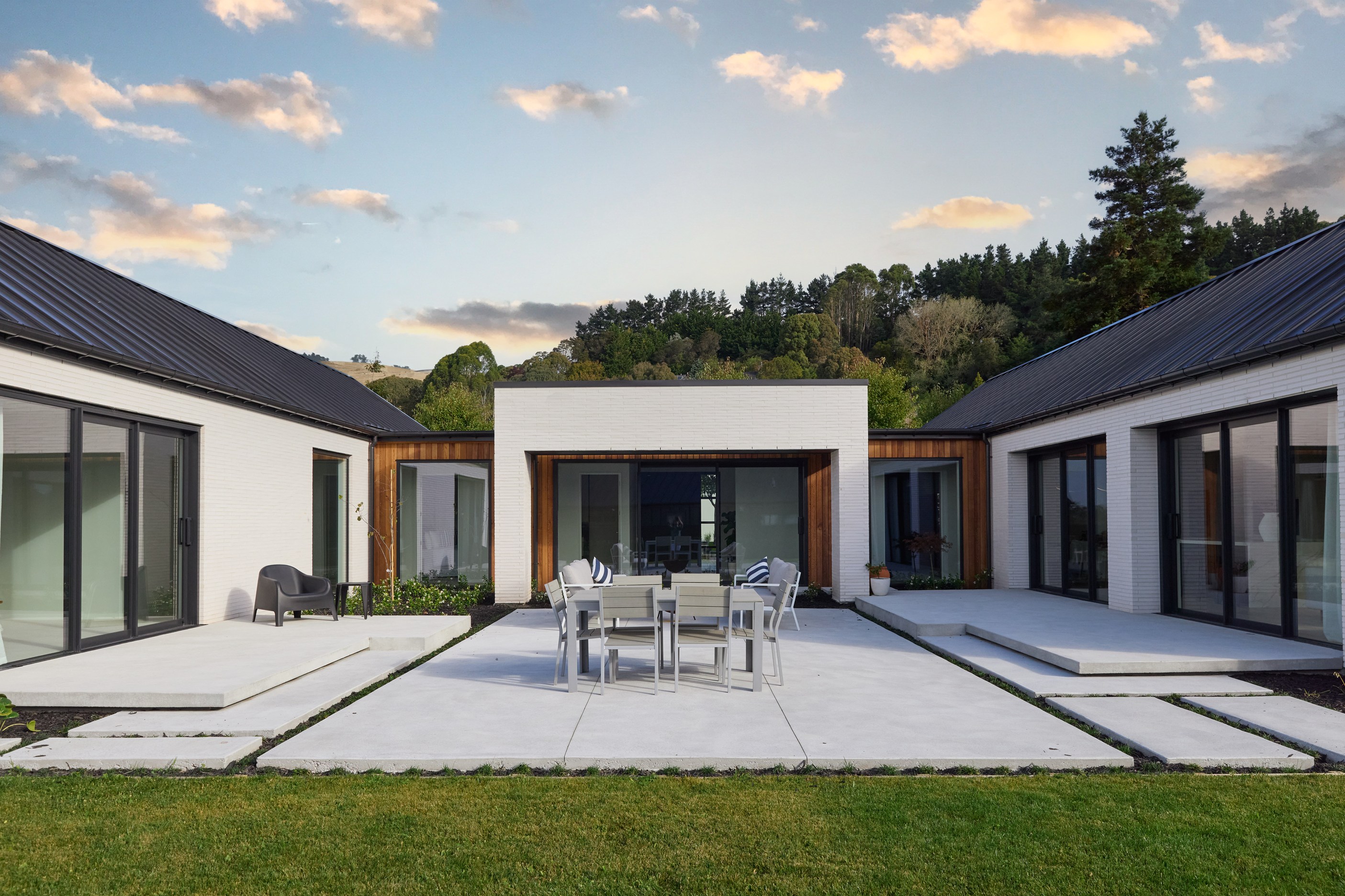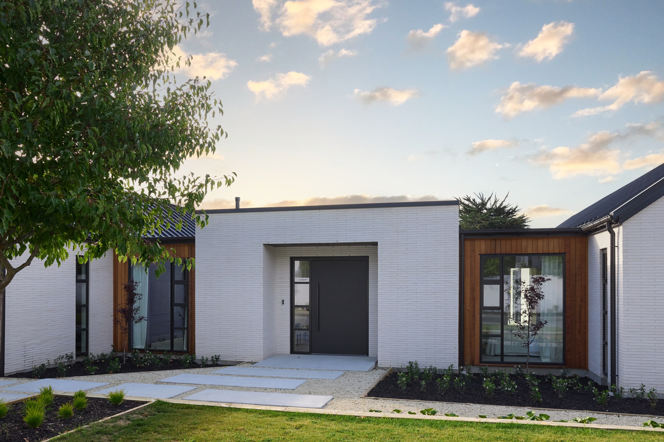 It’s fitting that the floorplan of this 303sqm home is in the shape of an H. So welcoming is the entrance it’s as if it’s saying, “Hello, come on in.” The entry path leads to the centre of this house clad in brick and cedar, and a large front door. Open it, step inside and you’ll immediately see an expansive private courtyard tucked between wings and behind stacked glass doors. This sheltered space can be accessed from all the main rooms — kitchen, living room, entrance hall and main-bedroom suite. Now, that’s indoor-outdoor flow.
