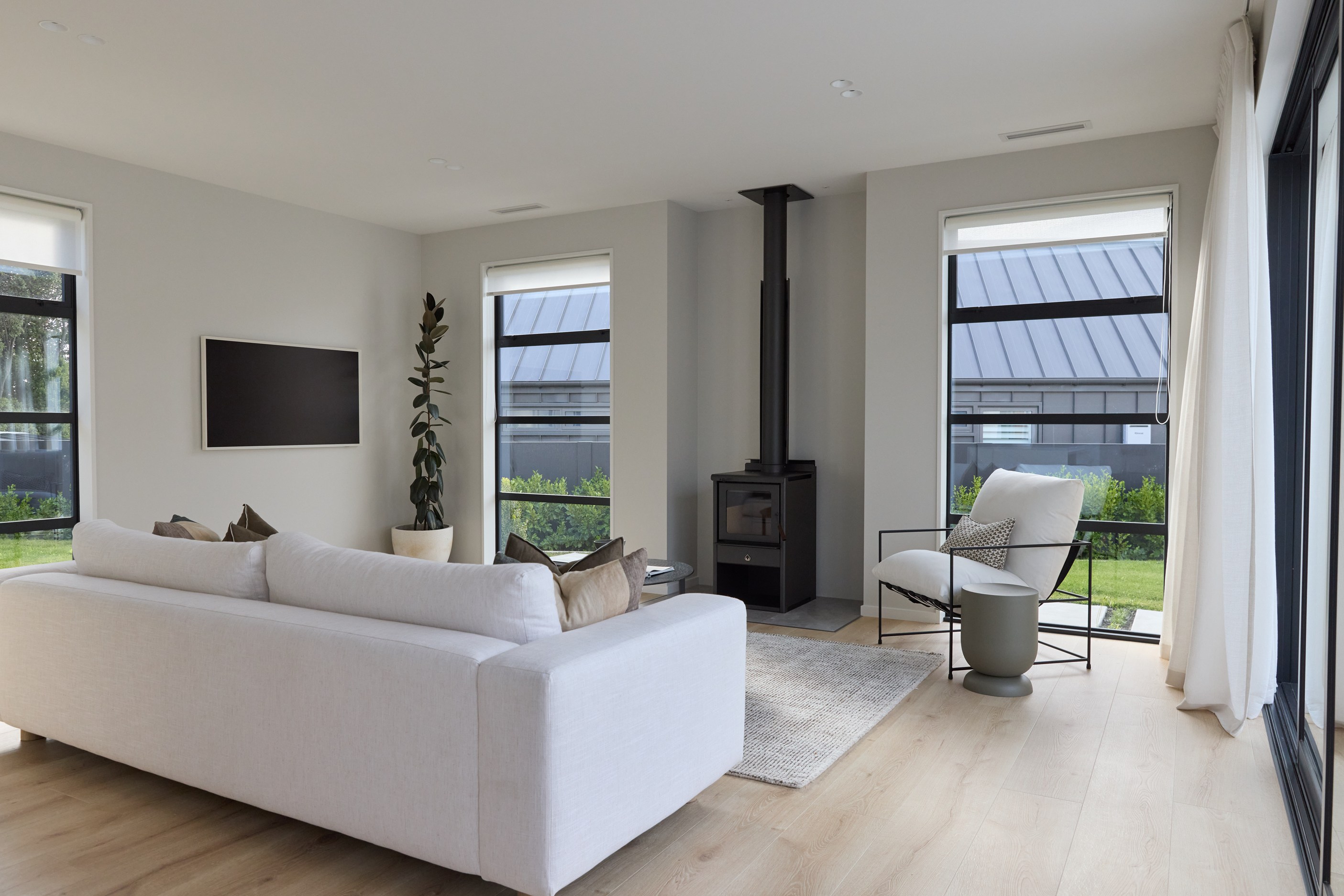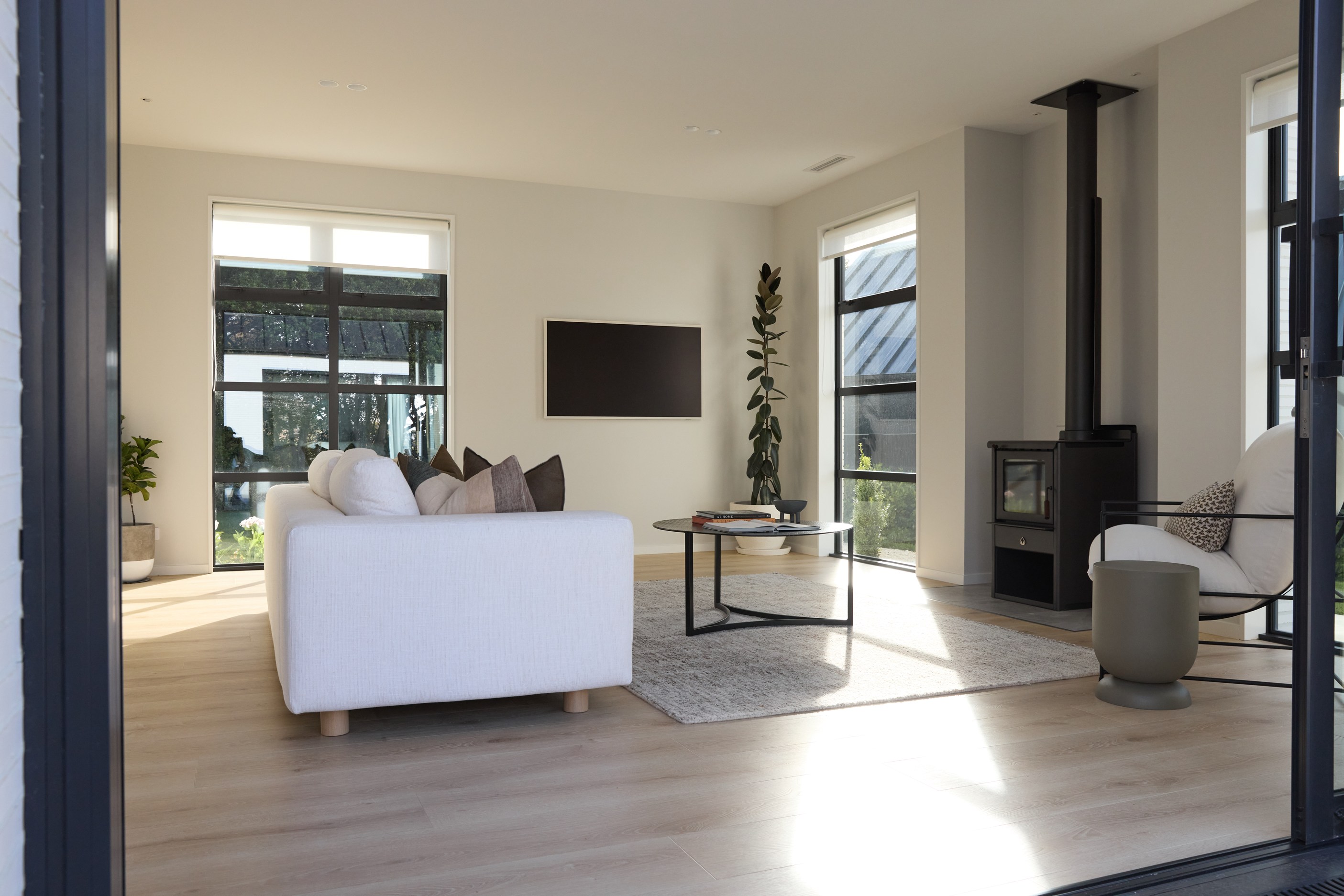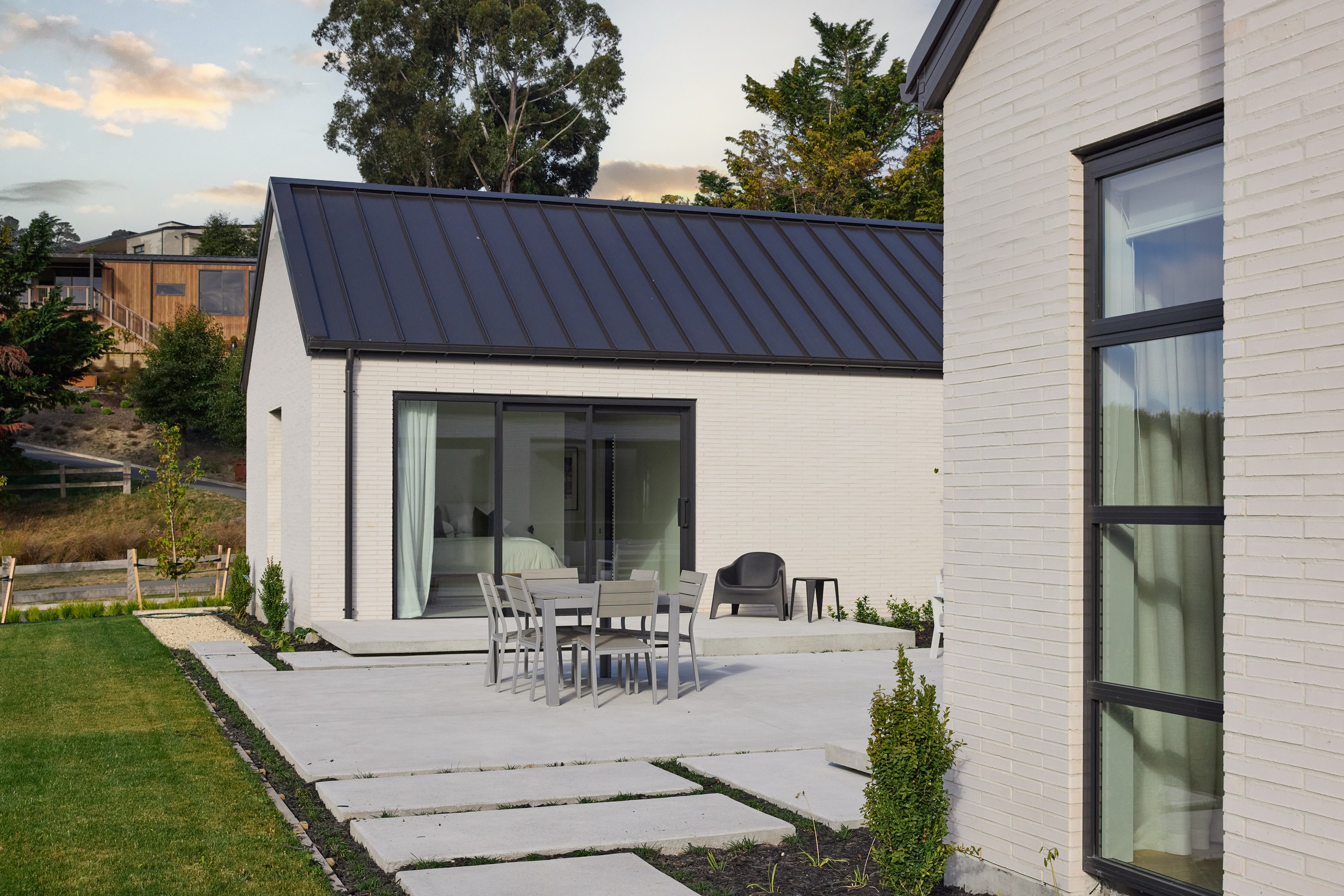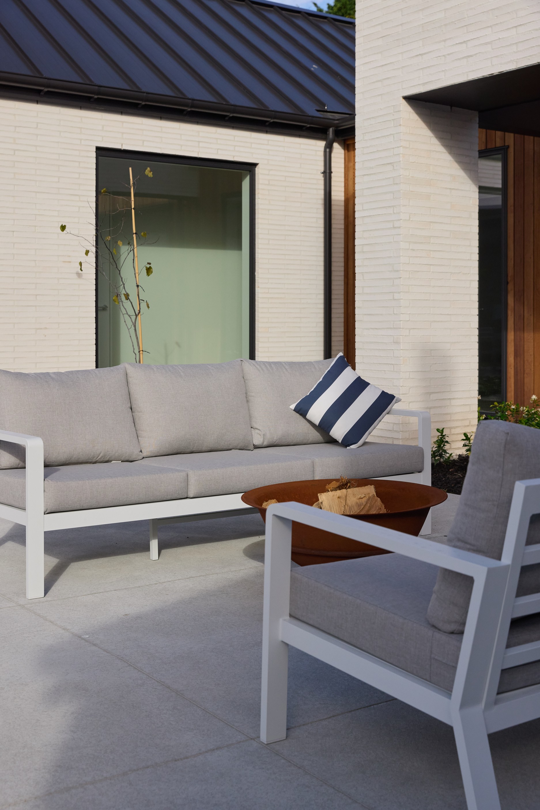It’s fitting that the floorplan of this 303sqm home is in the shape of an H. So welcoming is the entrance it’s as if it’s saying, “Hello, come on in.” The entry path leads to the centre of this house clad in brick and cedar, and a large front door. Open it, step inside and you’ll immediately see an expansive private courtyard tucked between wings and behind stacked glass doors. This sheltered space can be accessed from all the main rooms — kitchen, living room, entrance hall and main-bedroom suite. Now, that’s indoor-outdoor flow.