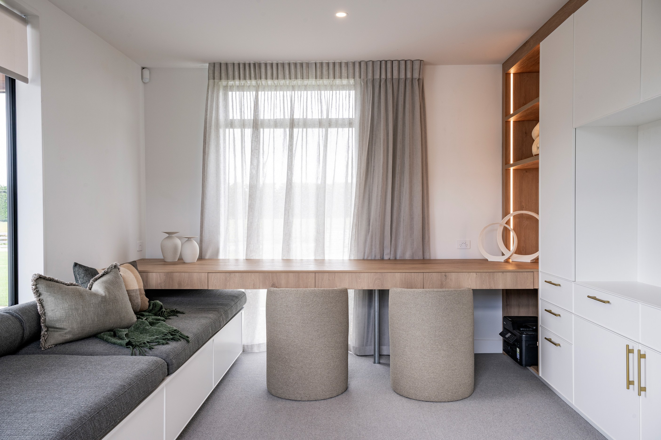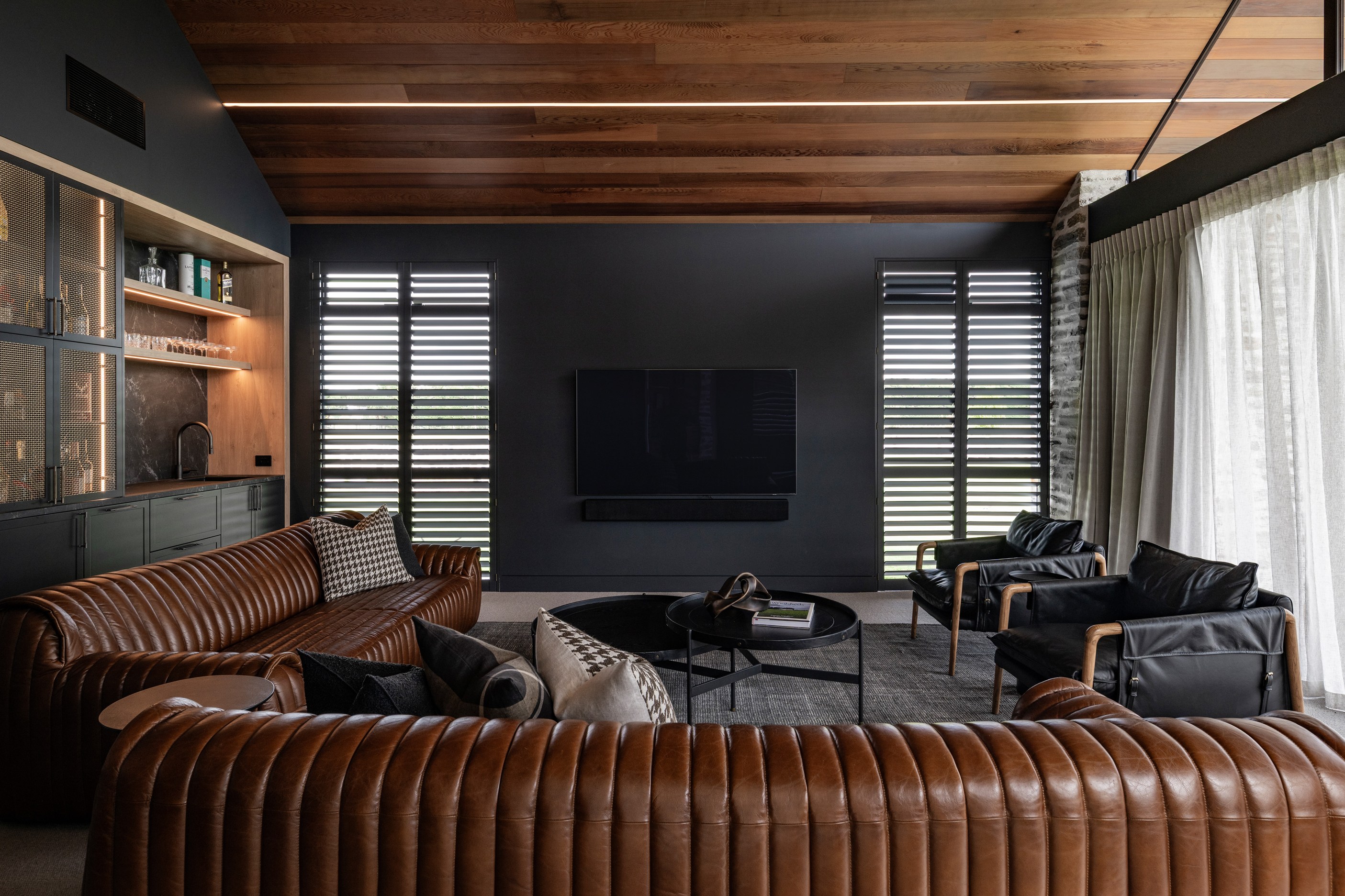 This striking country residence was crafted not only for immediate enjoyment, but also with long-term family living in mind. Thoughtfully designed, the home offers flexibility that will effortlessly adapt as the children grow up. A dedicated rumpus room and a home office exemplify this well-thought-out approach, providing functional spaces for every stage of family life. At 493sqm, this builder’s own home offers generous proportions without ever feeling overwhelming. Thanks to clever planning, refined interior choices and meticulous attention to detail, the five-bedroom property retains a welcoming, homely atmosphere despite its scale. Distinctive features include bagged-schist fireplaces, timber ceilings, designer tiling and custom cabinetry.