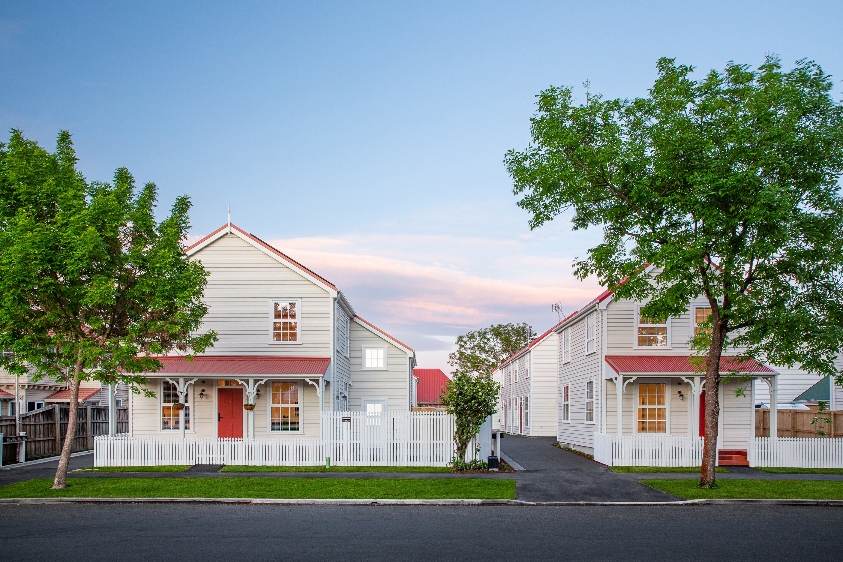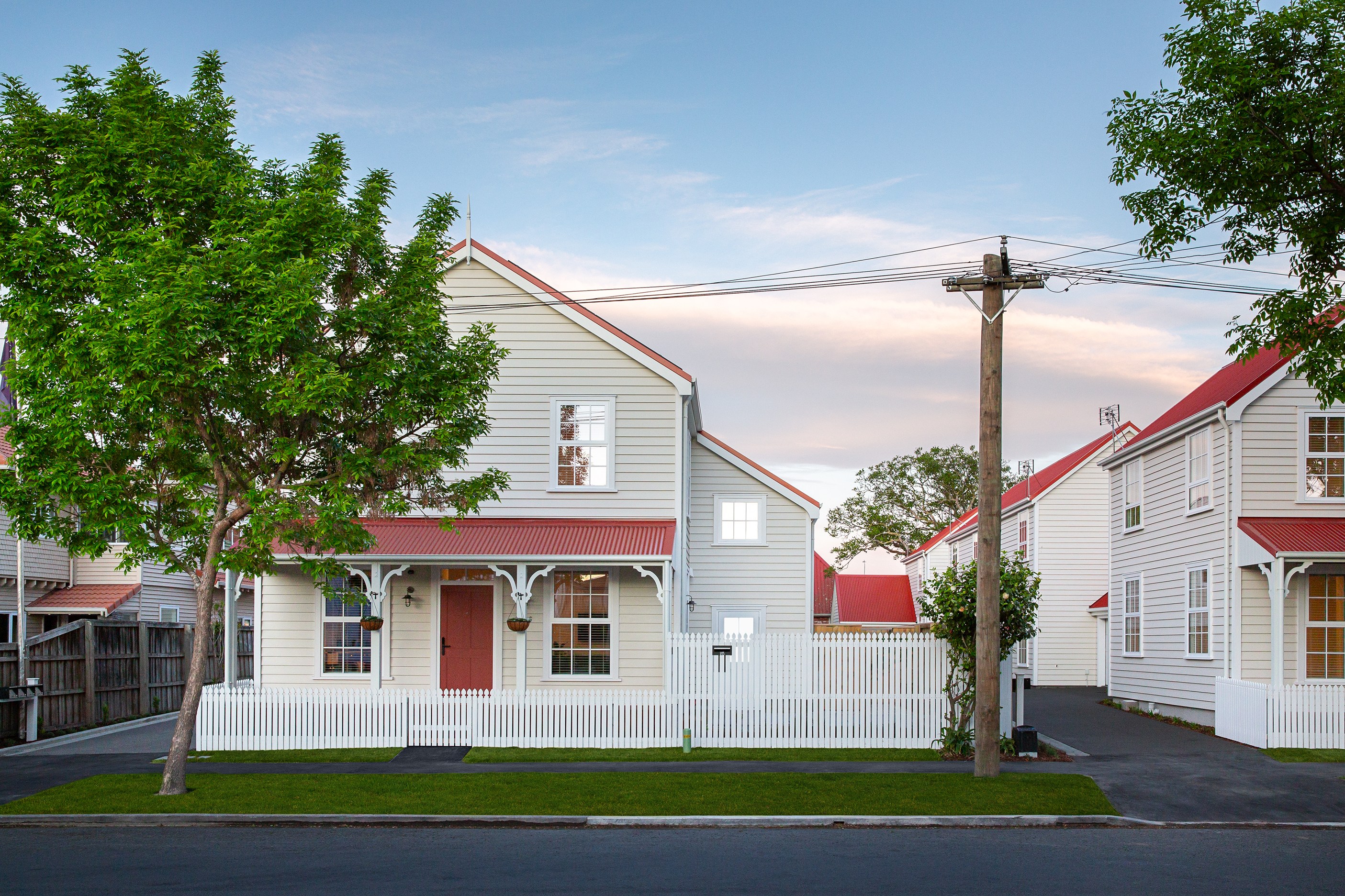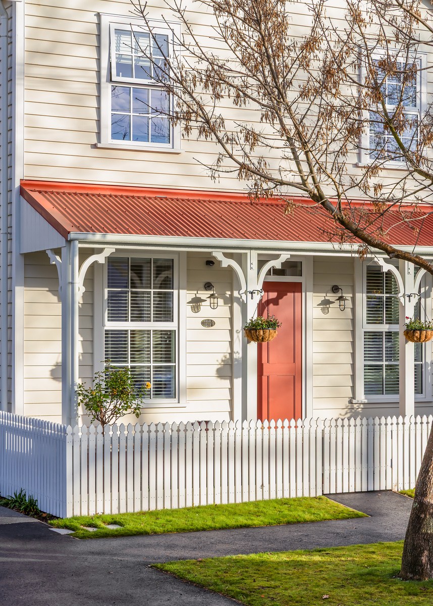 Prepare to be charmed. These central-city townhouses are where character meets contemporary. With their traditional villa aesthetic and details, they look as if they’ve been here for decades, yet the two-level properties are utterly modern — with all the advantages that brings. The exteriors tell the story of a bygone era: weatherboard cladding, front porches, detailed fretwork, picket fences and classic corrugated metal red or green roofs. Venture inside — there are two- and three-bedroom options — and you’ll find the character is enhanced by period-style fireplaces and the warming effect of sun pouring through multipaned windows.