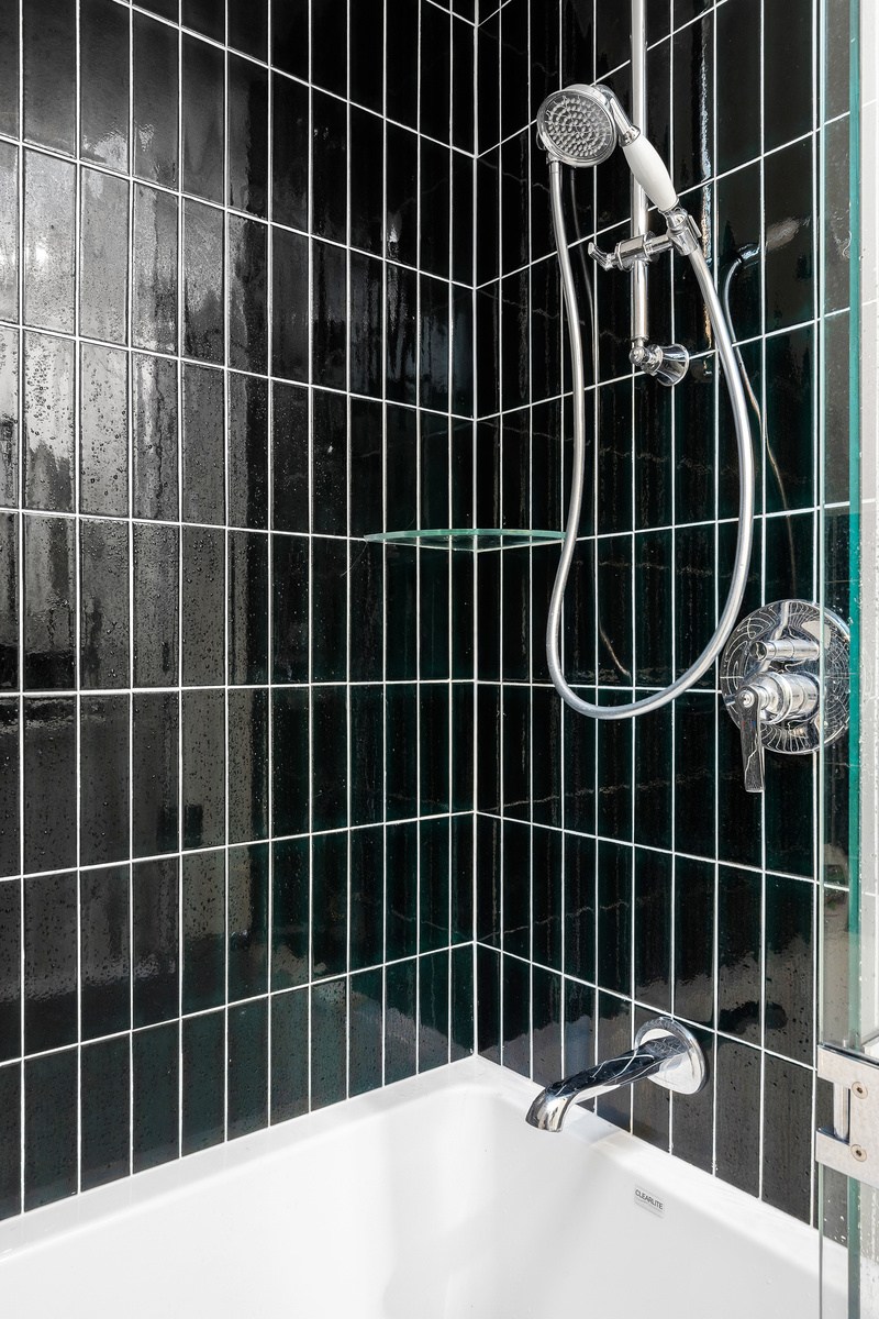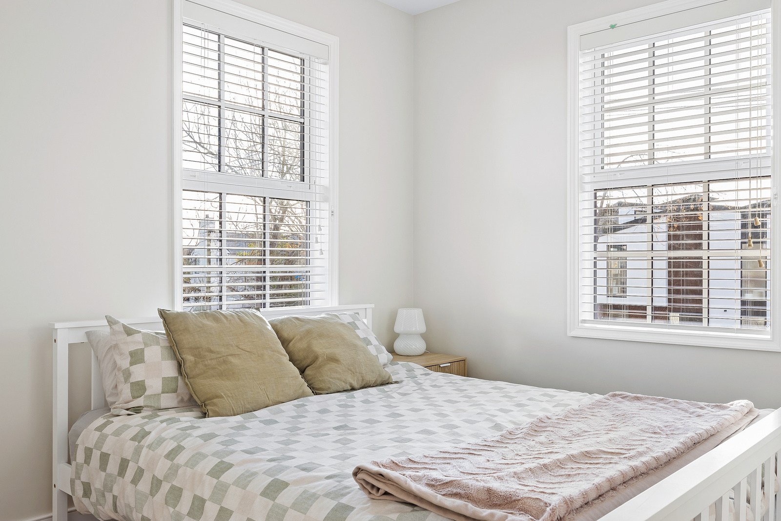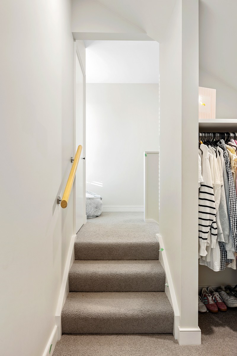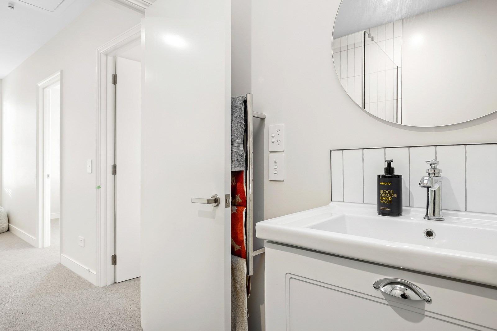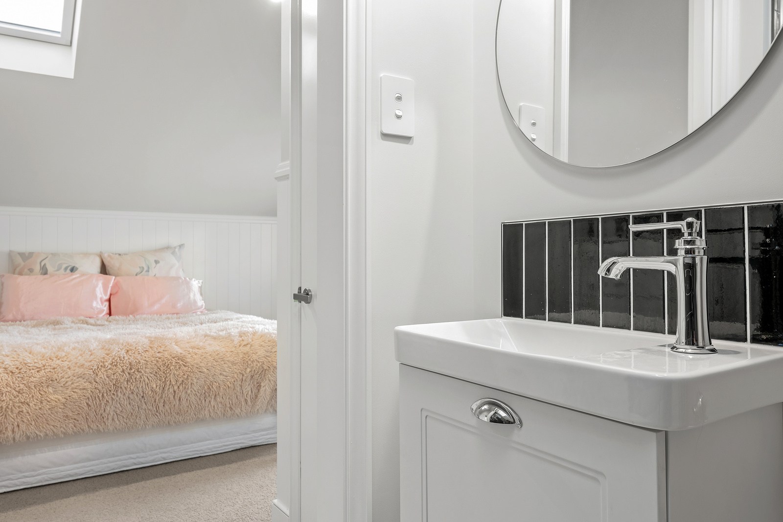 This, however, is an utterly modern, comfortable build. For example, you’ll find double-glazed joinery and sleek modern kitchens, but with nods to the era such as the brass handles. White walls form the backdrop for lovely details such as the red front door or jet-black or white tiles in the kitchens and bathrooms. Downstairs, the townhouses are all about living large and have the open-plan kitchen, dining and sitting areas, plus outdoor space and a garage. Upstairs, they have either two bedrooms and bathroom or three bedrooms — one of which has an ensuite and walk-in robe — plus a bathroom. This is how to blend century-old charm with modern must-haves.