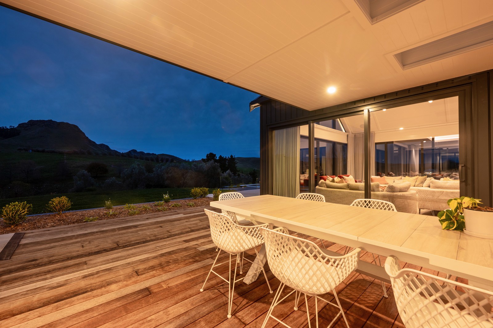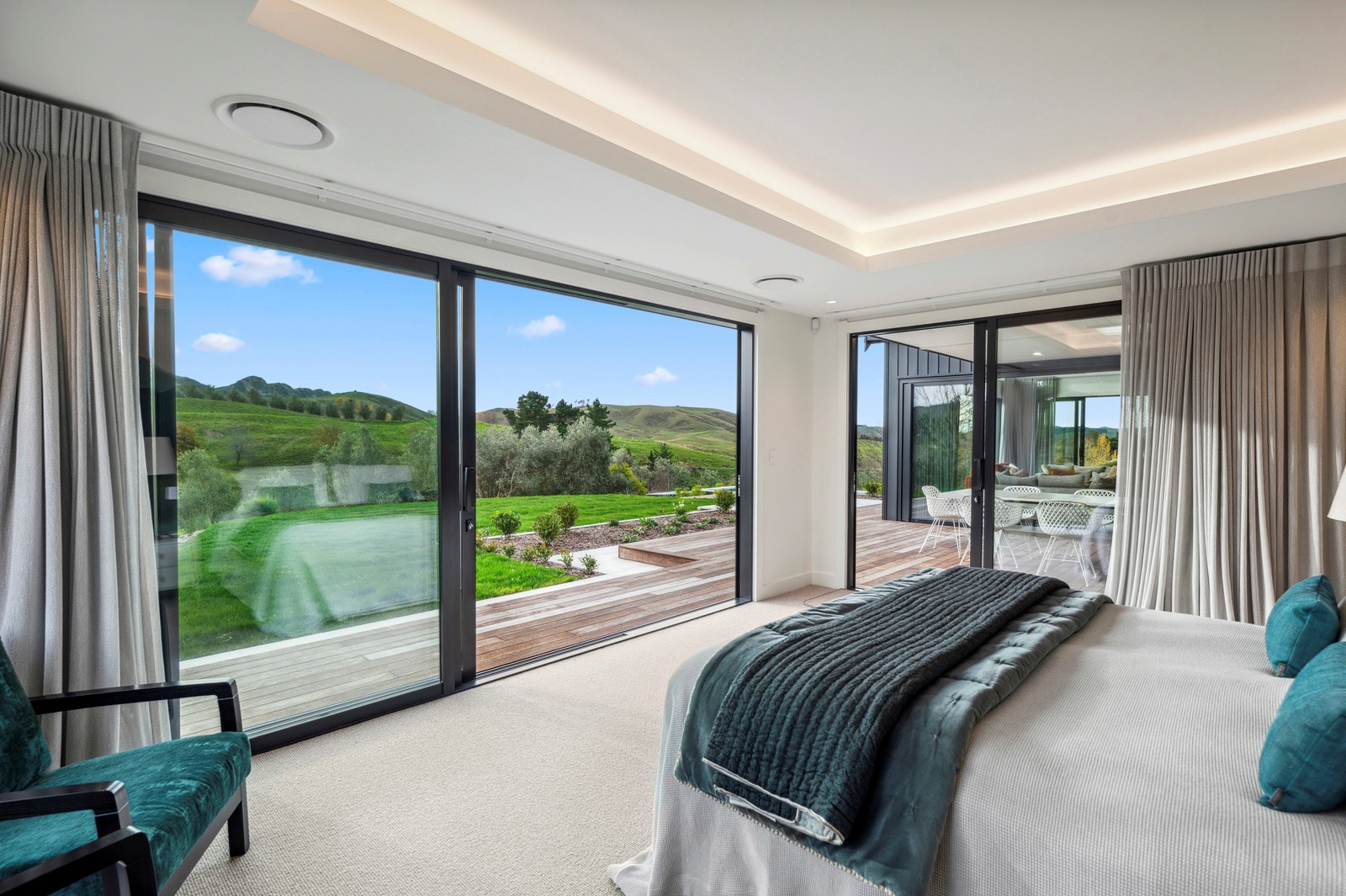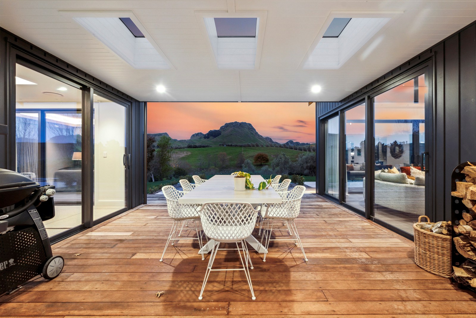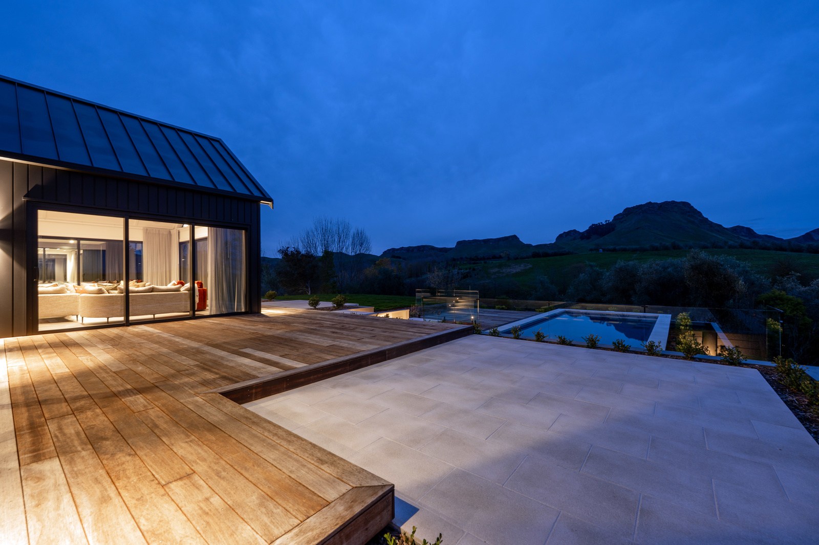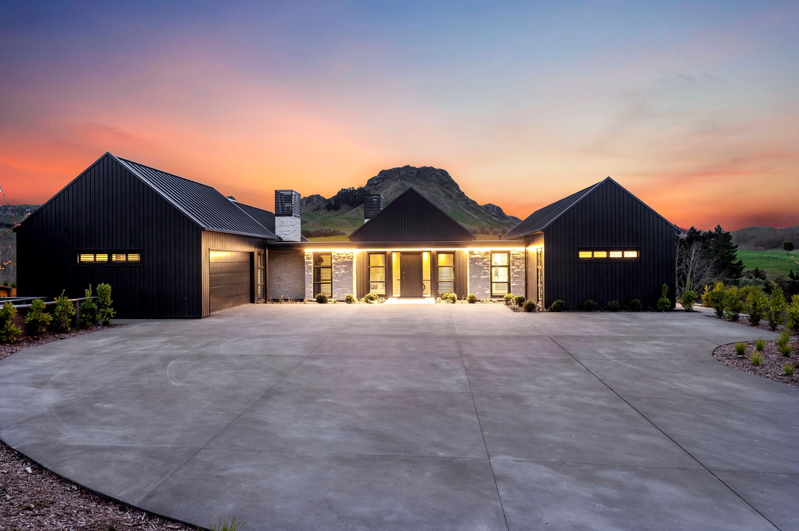A sculptural entry wall of hand-laid stone sets the tone for this refined rural residence. From the outset, material honesty and regional character inform every detail – a fitting nod to the landscape and the wine region it calls home. Natural stone extends inside where a large open-plan living space revolves around a temperature-controlled wine room and a stone-clad fireplace. A separate lounge offers a more intimate retreat, also focussed around a stone fireplace and breathtaking views of Te Mata Peak. The layout is cleverly zoned. Three bedrooms and two bathrooms form a dedicated guest and family wing, while the main suite enjoys privacy in its own separate haven, complete with a luxurious ensuite and walk-in wardrobe.