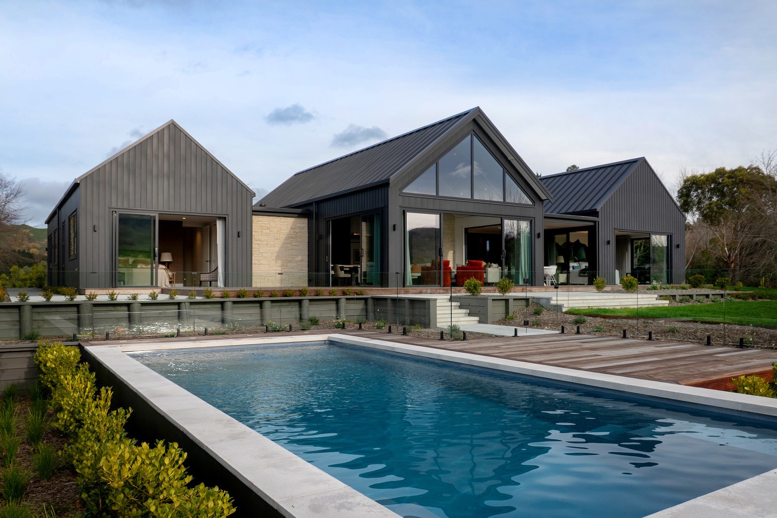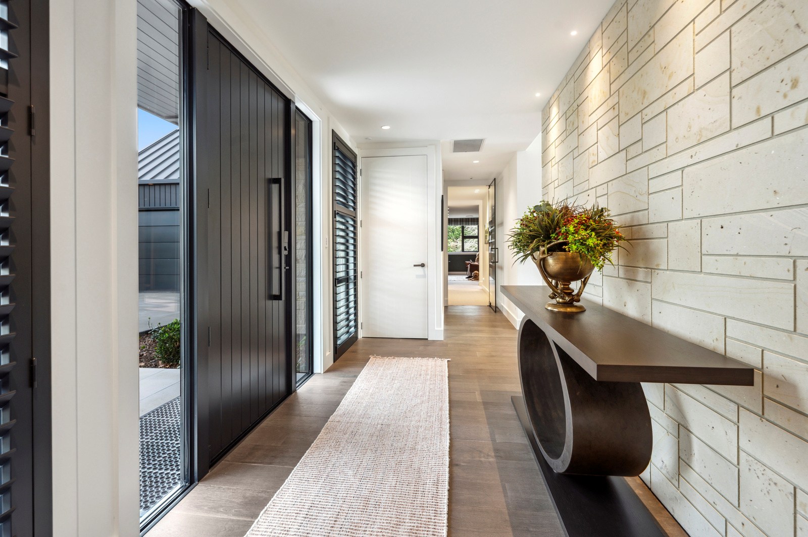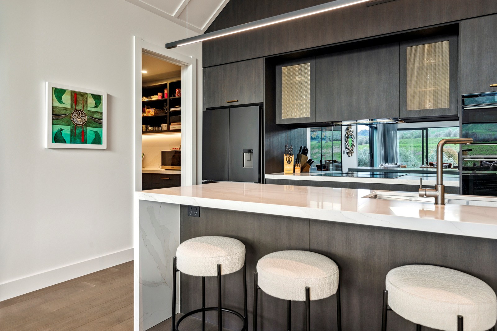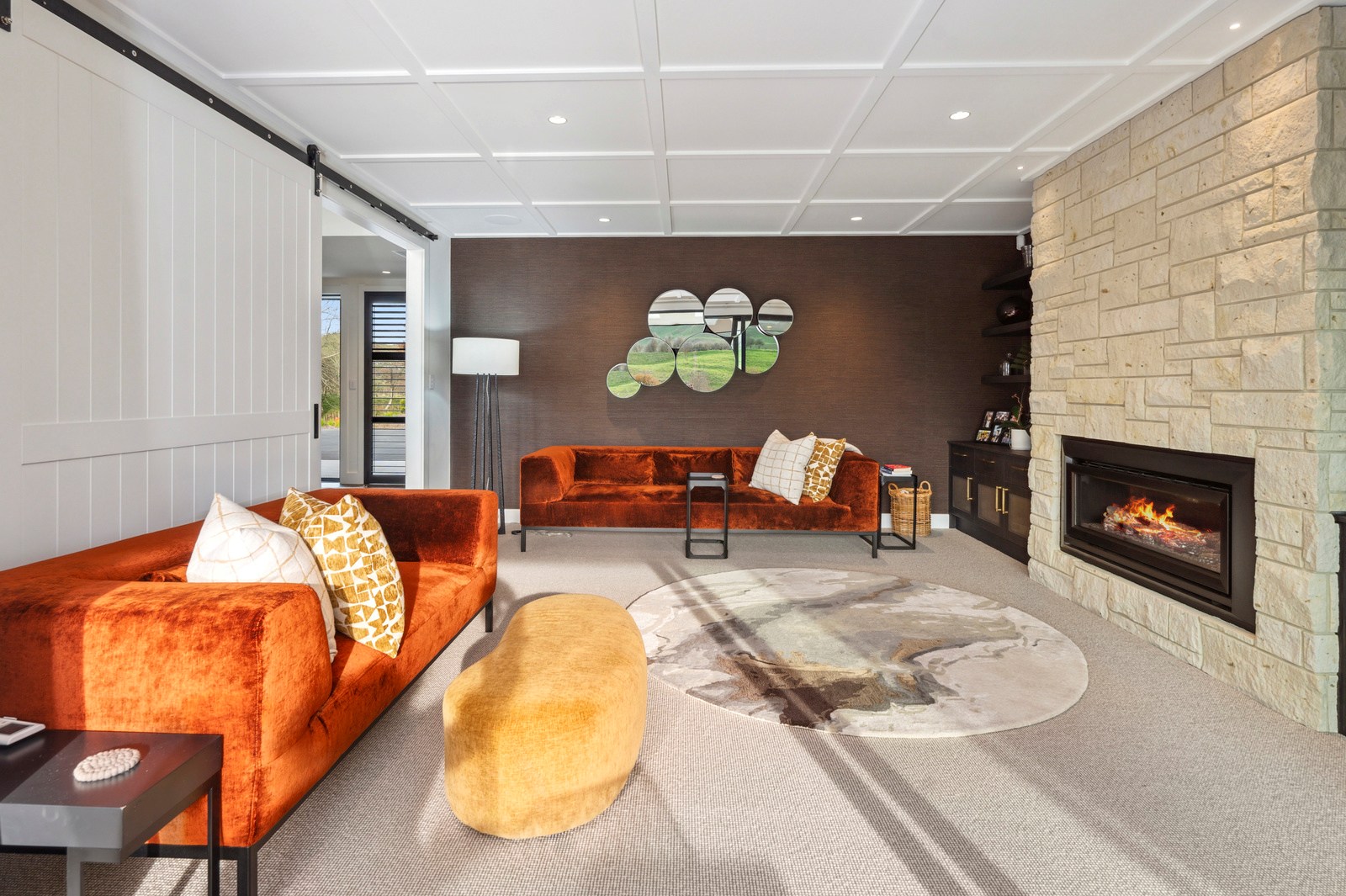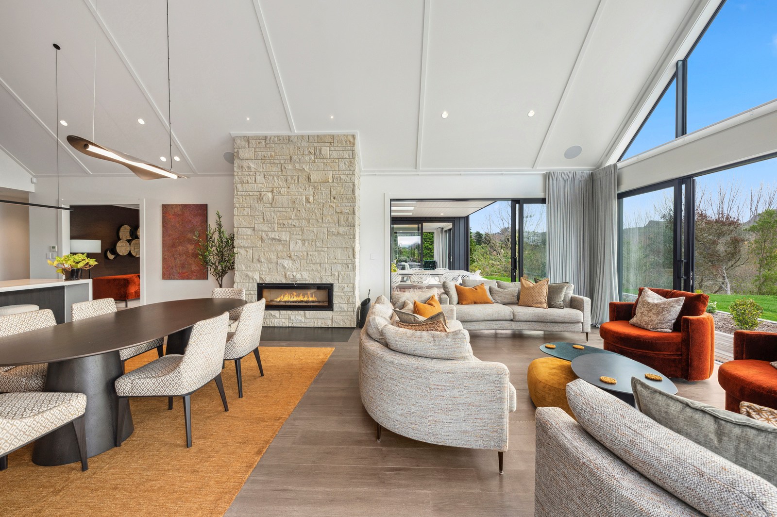 A sculptural entry wall of hand-laid stone sets the tone for this refined rural residence. From the outset, material honesty and regional character inform every detail – a fitting nod to the landscape and the wine region it calls home. Natural stone extends inside where a large open-plan living space revolves around a temperature-controlled wine room and a stone-clad fireplace. A separate lounge offers a more intimate retreat, also focussed around a stone fireplace and breathtaking views of Te Mata Peak. The layout is cleverly zoned. Three bedrooms and two bathrooms form a dedicated guest and family wing, while the main suite enjoys privacy in its own separate haven, complete with a luxurious ensuite and walk-in wardrobe.