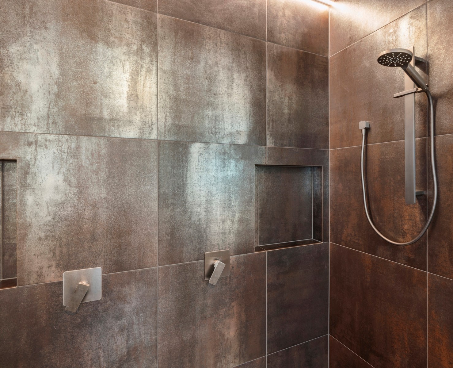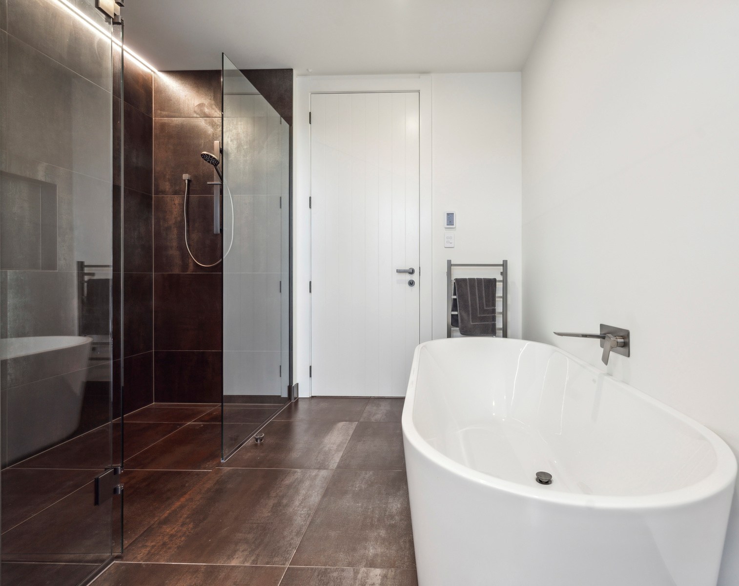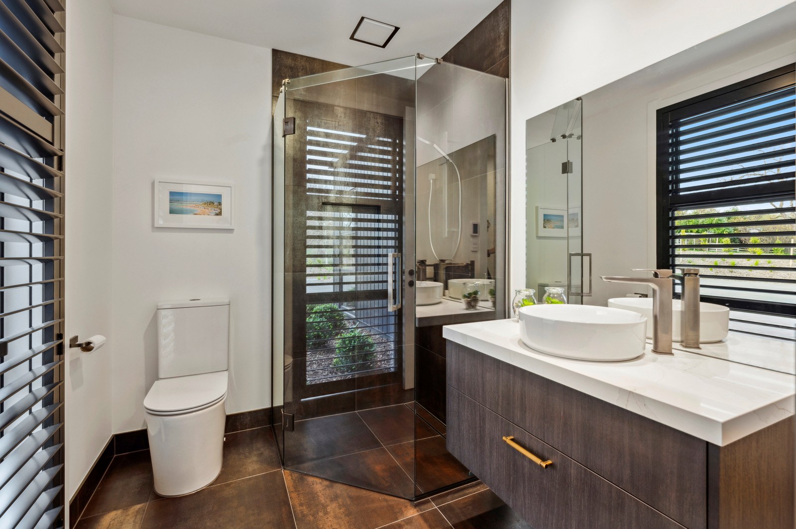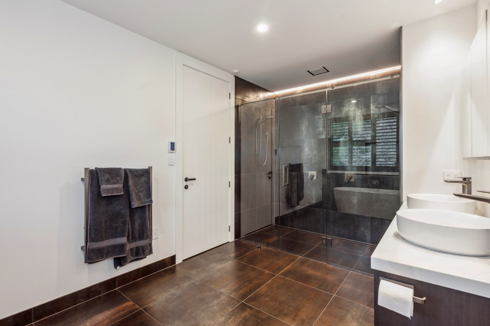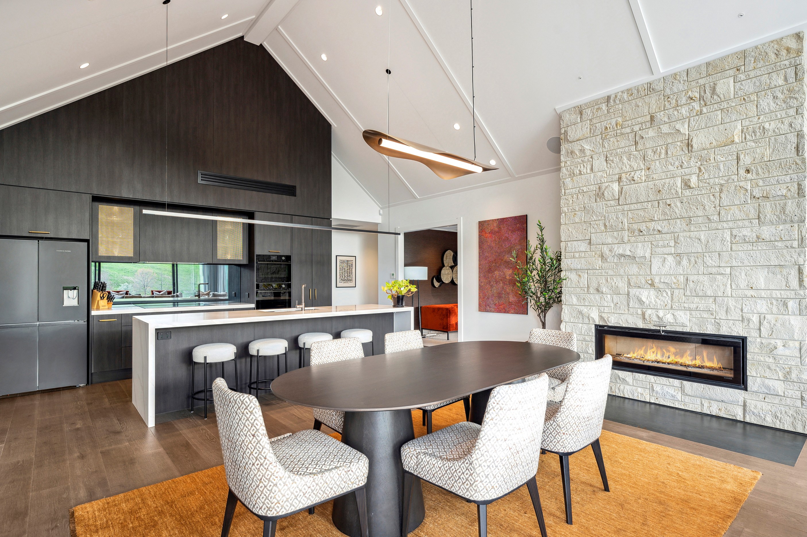 A library tucked away off the central hub offers a quiet place to retreat. This is also an environmentally responsible build. Energy efficiency is elevated by solar panels with battery storage, thermally broken joinery, advanced insulation, and motion-sensor lighting. The smart system allows for remote control of climate, lighting, and security. Materials were locally sourced, and the home was designed to reduce waste and water use throughout construction and occupancy. Clad in stone and metal, this 369sqm home celebrates craftsmanship, design and a light environmental footprint.