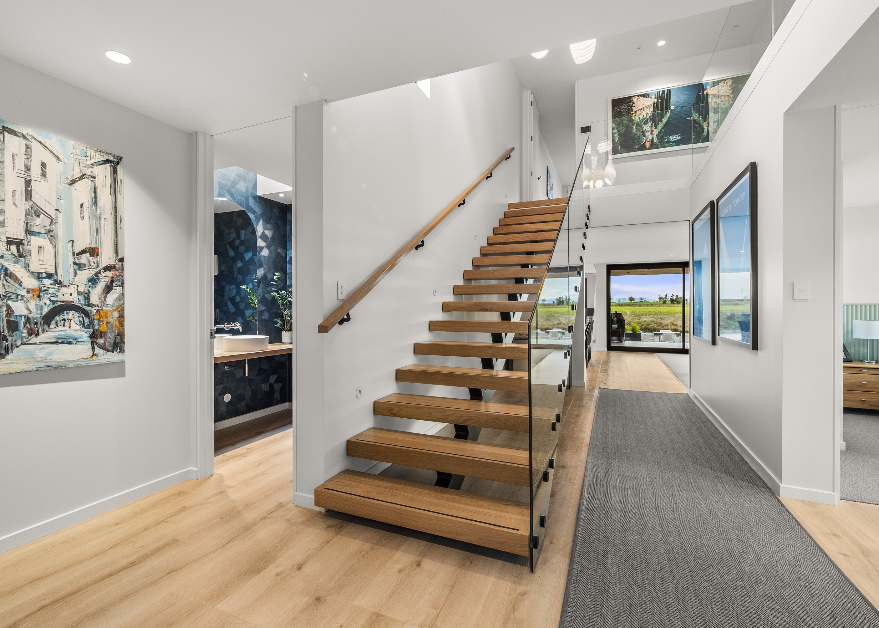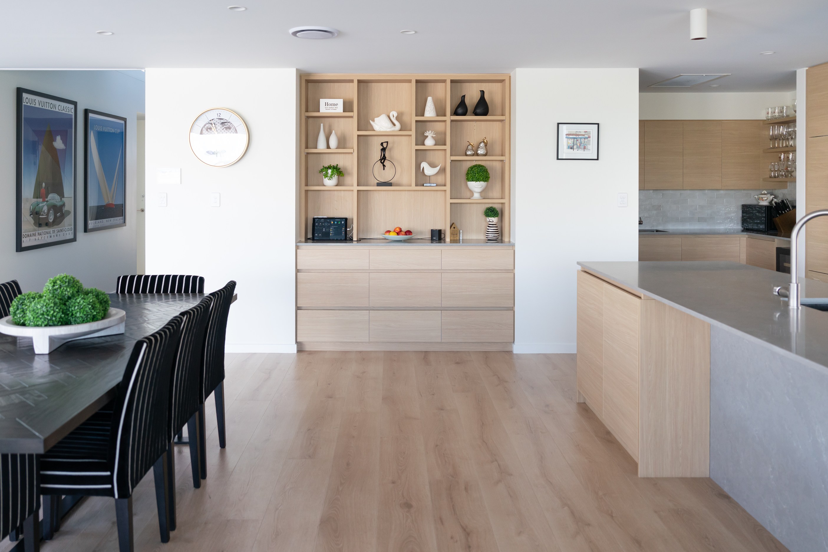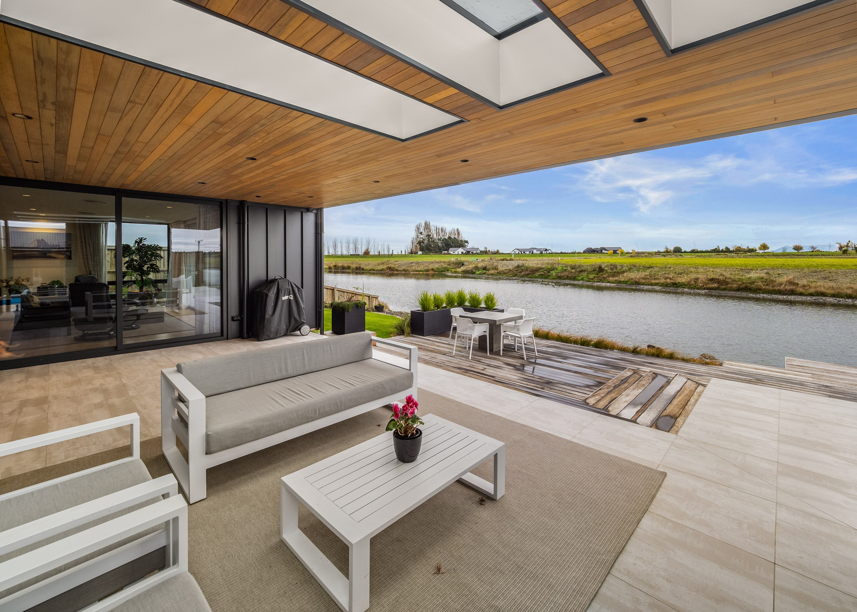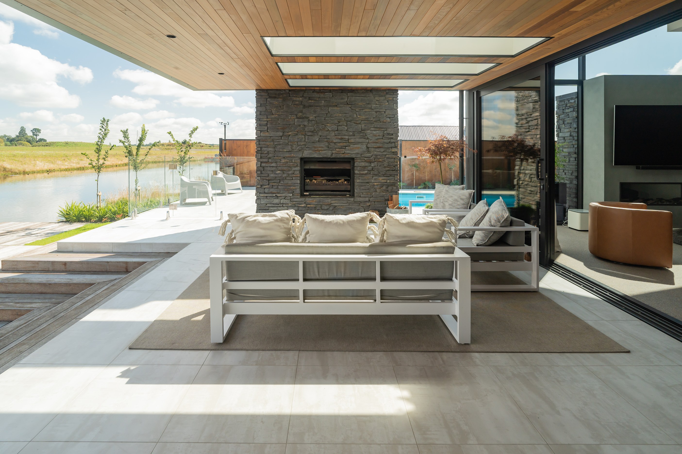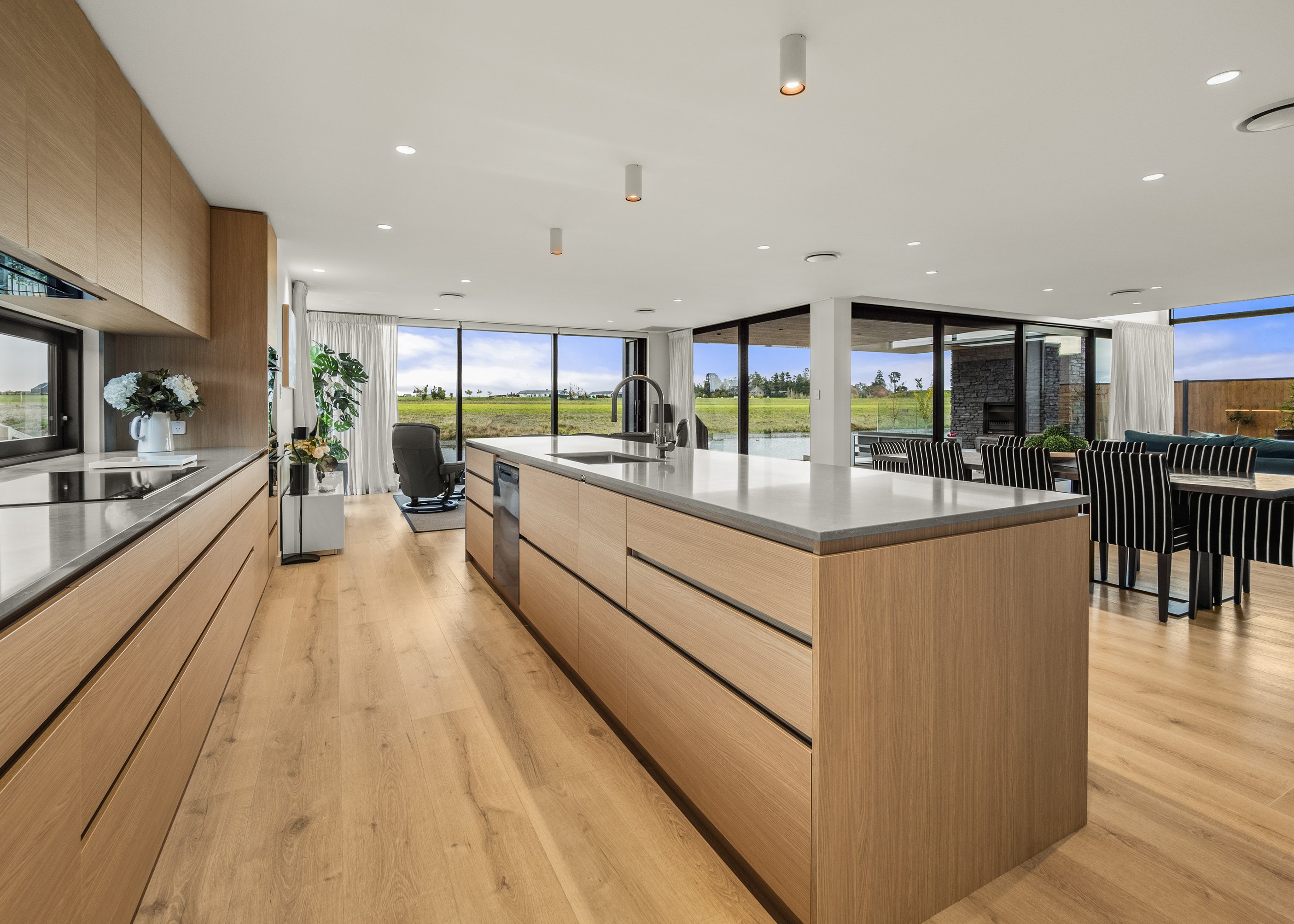 Located on the edge of Lake Hood, this 339sqm home captures the rhythm of its setting – from early morning when kayakers drift past to sundowners enjoyed with twilight reflections on the water. Built as a forever home, it’s a haven of comfort, performance and understated style. Imagine waking up to water views and ending the day with drinks on the terrace beside the fire. The living areas spill out to a spacious, sheltered outdoor zone with an in-built fireplace and a beautifully tiled lap pool that’s heated for year-round use. Upstairs, the main bedroom has its own balcony and ensuite, offering a private retreat with ever-changing views. There’s a lift for ease and future accessibility, plus a dedicated gym that doubles as a games room — perfect for visits from grandchildren.