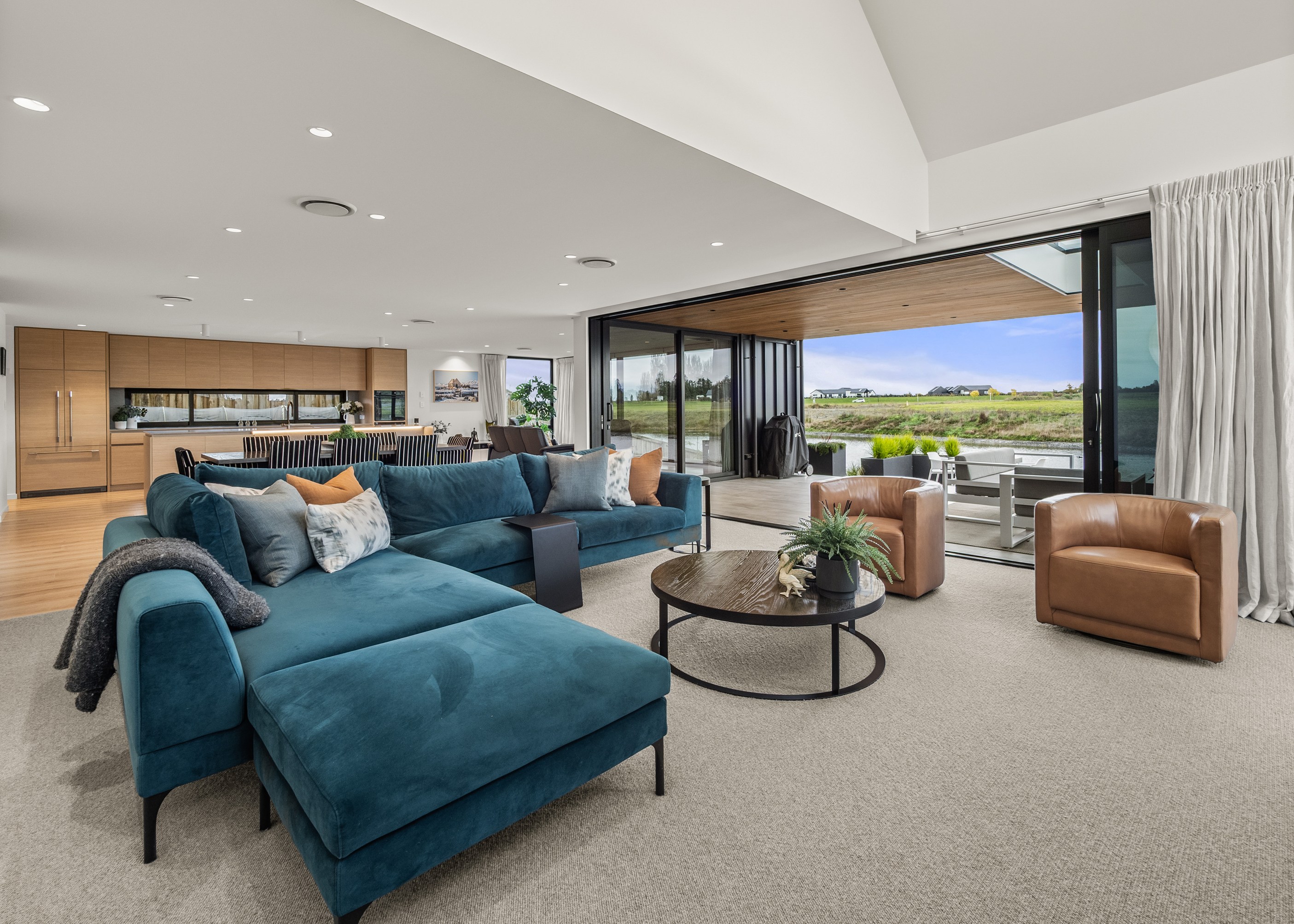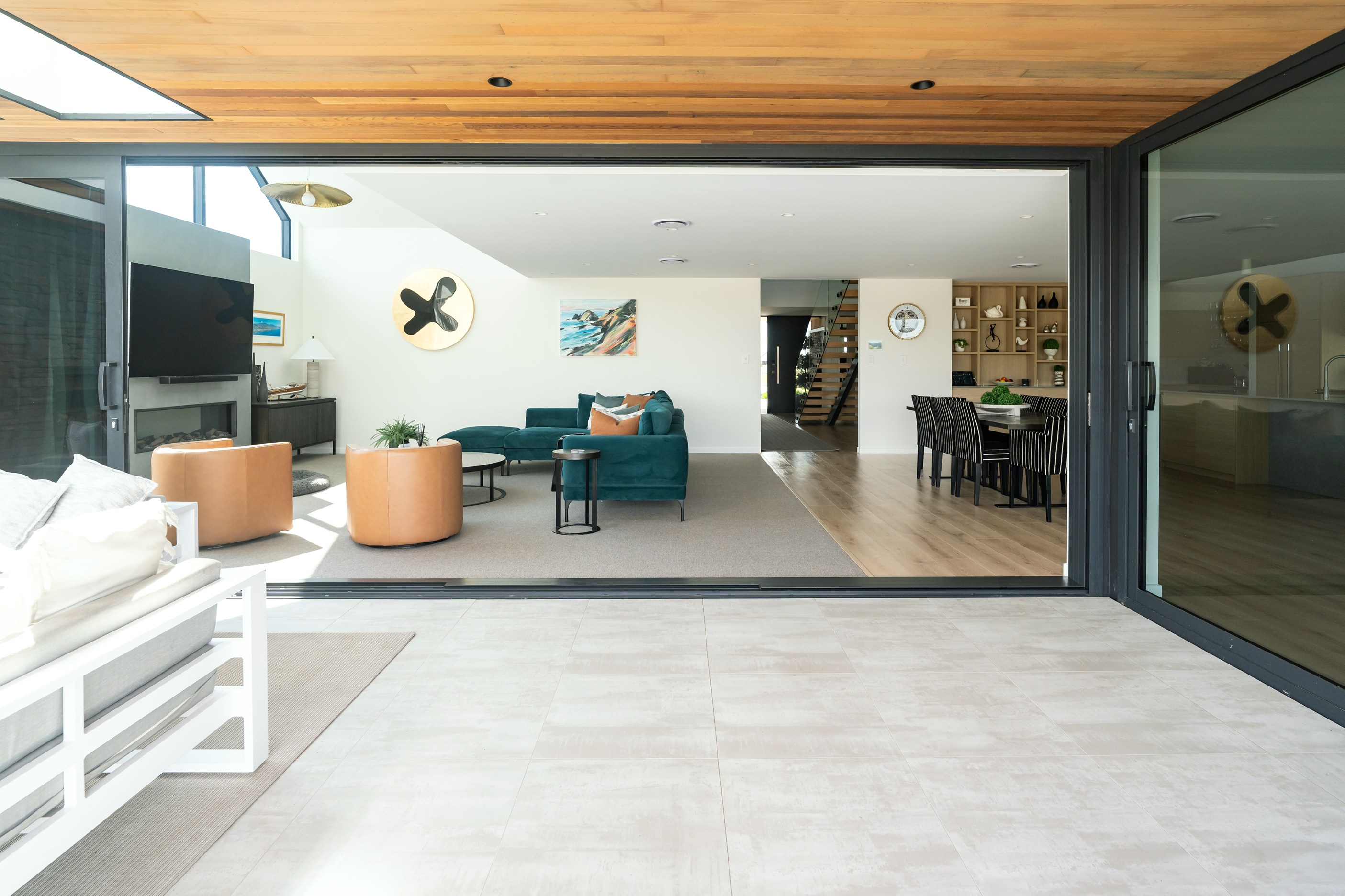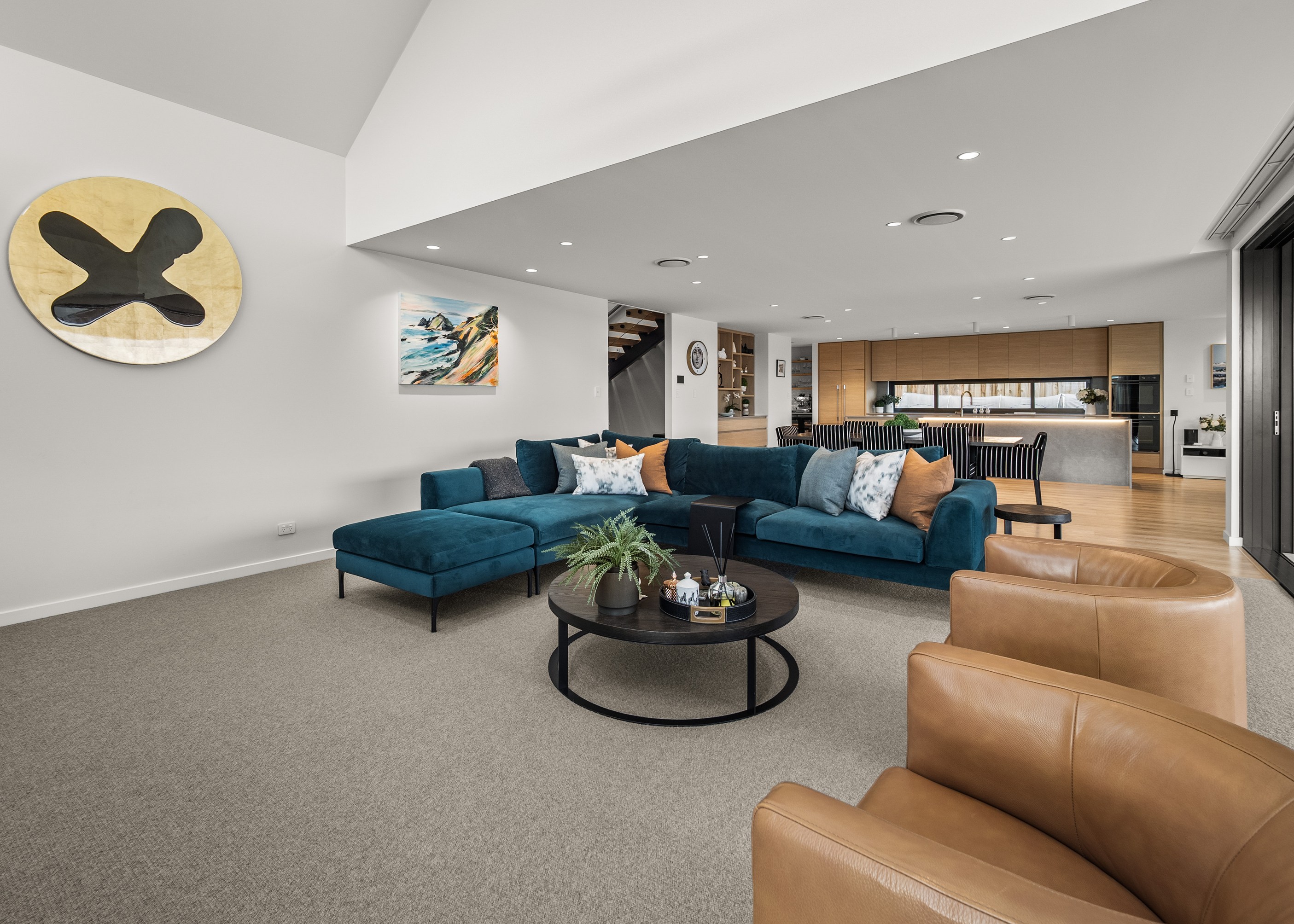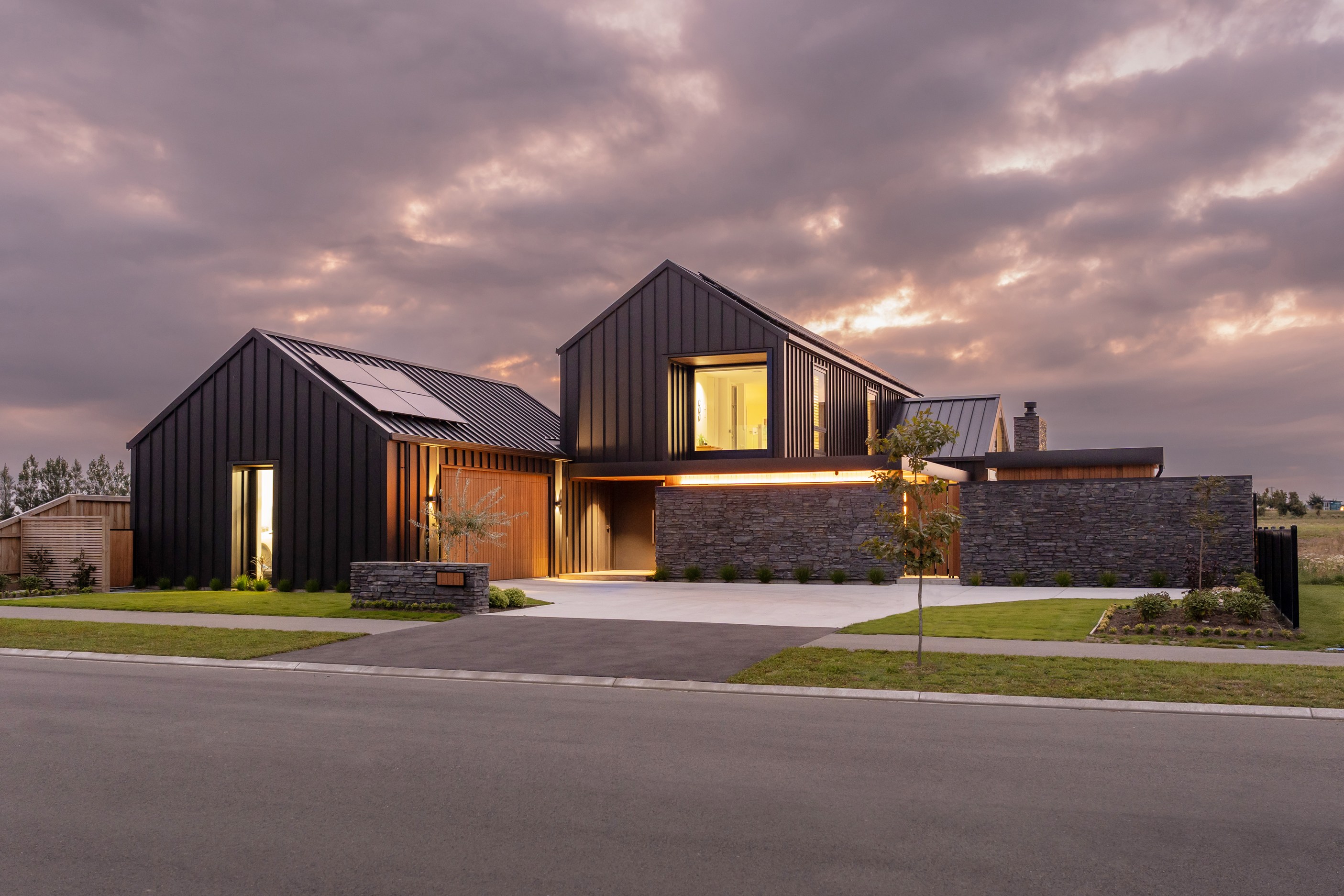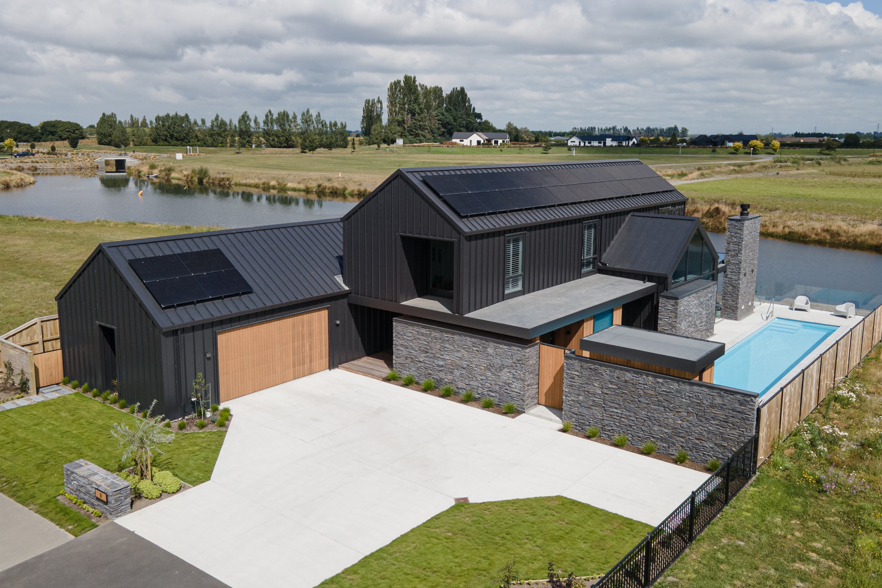 A soft, natural palette runs throughout the interior, pairing warmth with architectural clarity. On the exterior, black standing-seam cladding, cedar and stonework give the home strong definition. Sustainability is integrated with 26 solar panels and a 11kWh battery system to power everything (including EV charging), while zoned heating and cooling ensure quiet efficiency. This is a thoughtfully tailored home — one that’s deeply connected to its setting and designed to be enjoyed at every stage of life.