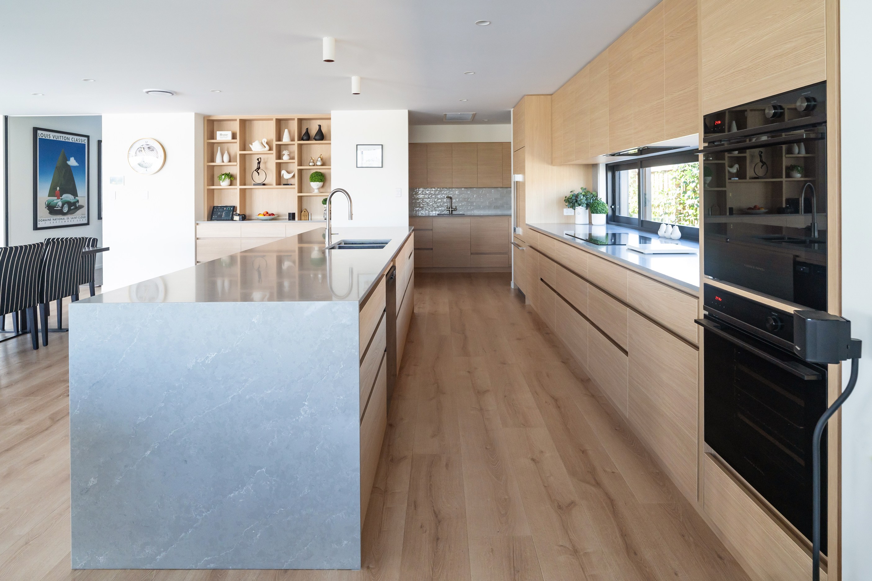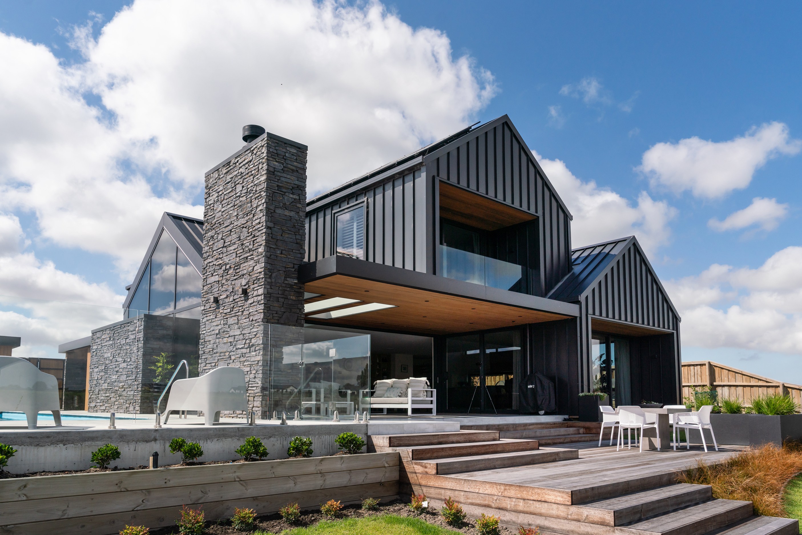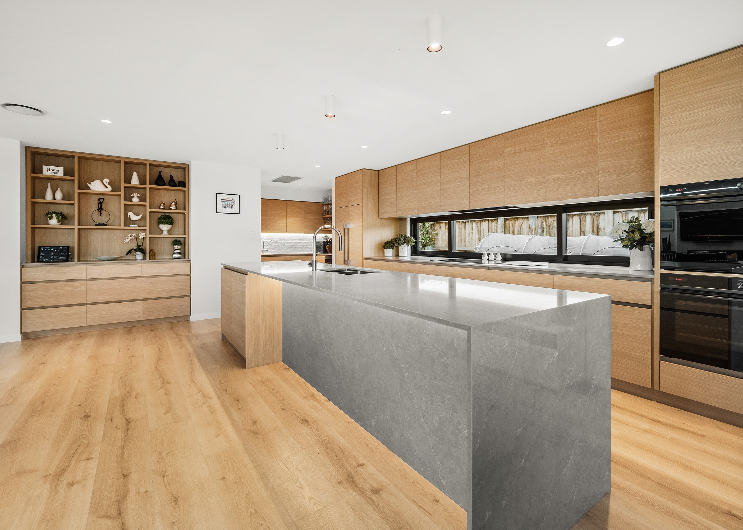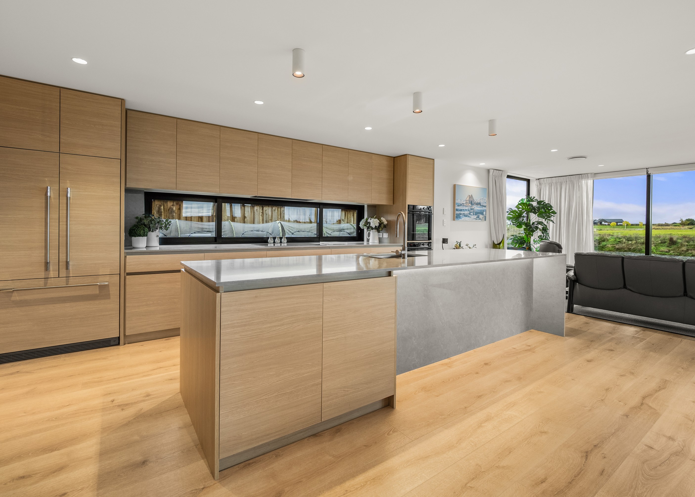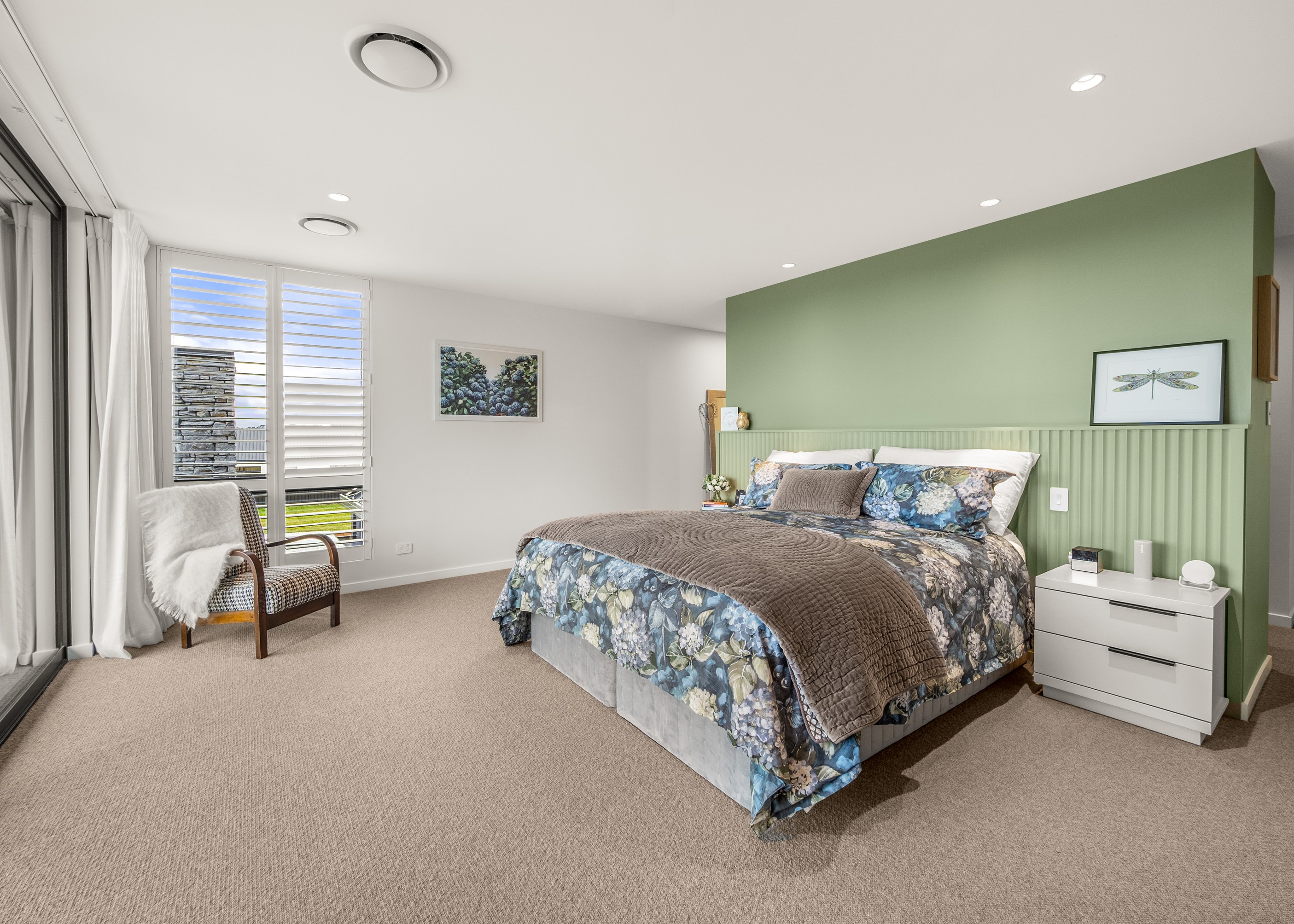 A soft, natural palette runs throughout the interior, pairing warmth with architectural clarity. On the exterior, black standing-seam cladding, cedar and stonework give the home strong definition. Sustainability is integrated with 26 solar panels and a 11kWh battery system to power everything (including EV charging), while zoned heating and cooling ensure quiet efficiency. This is a thoughtfully tailored home — one that’s deeply connected to its setting and designed to be enjoyed at every stage of life.