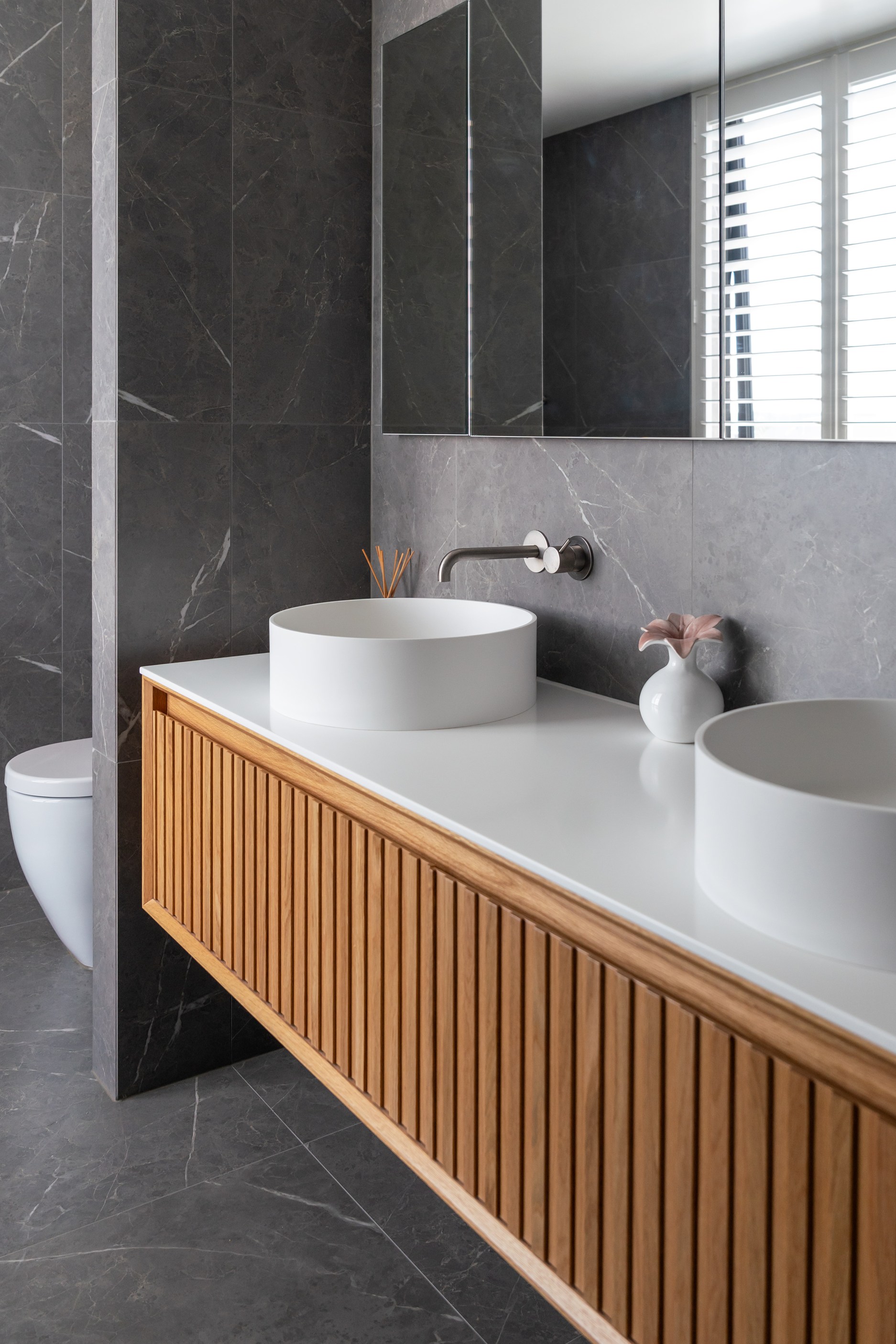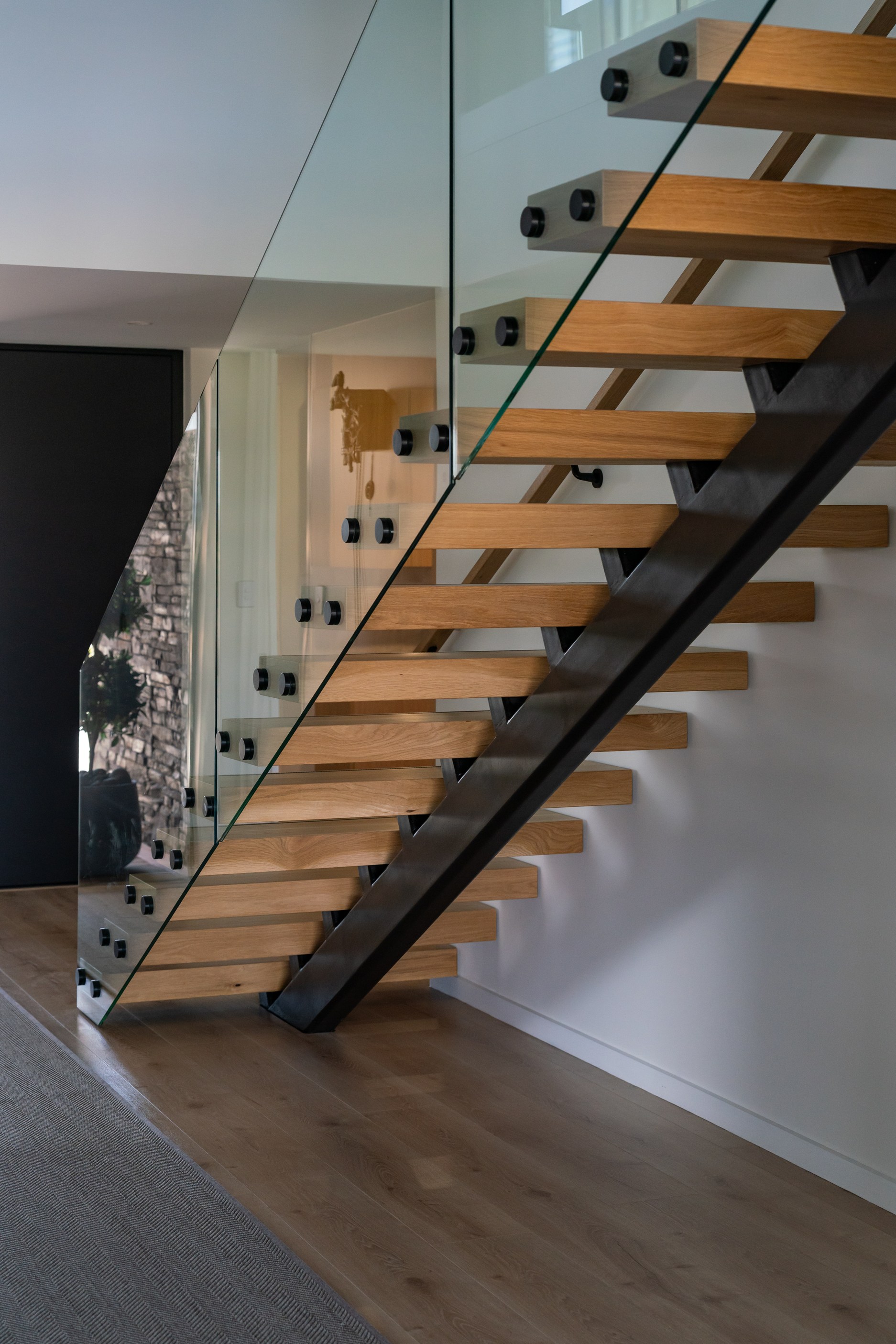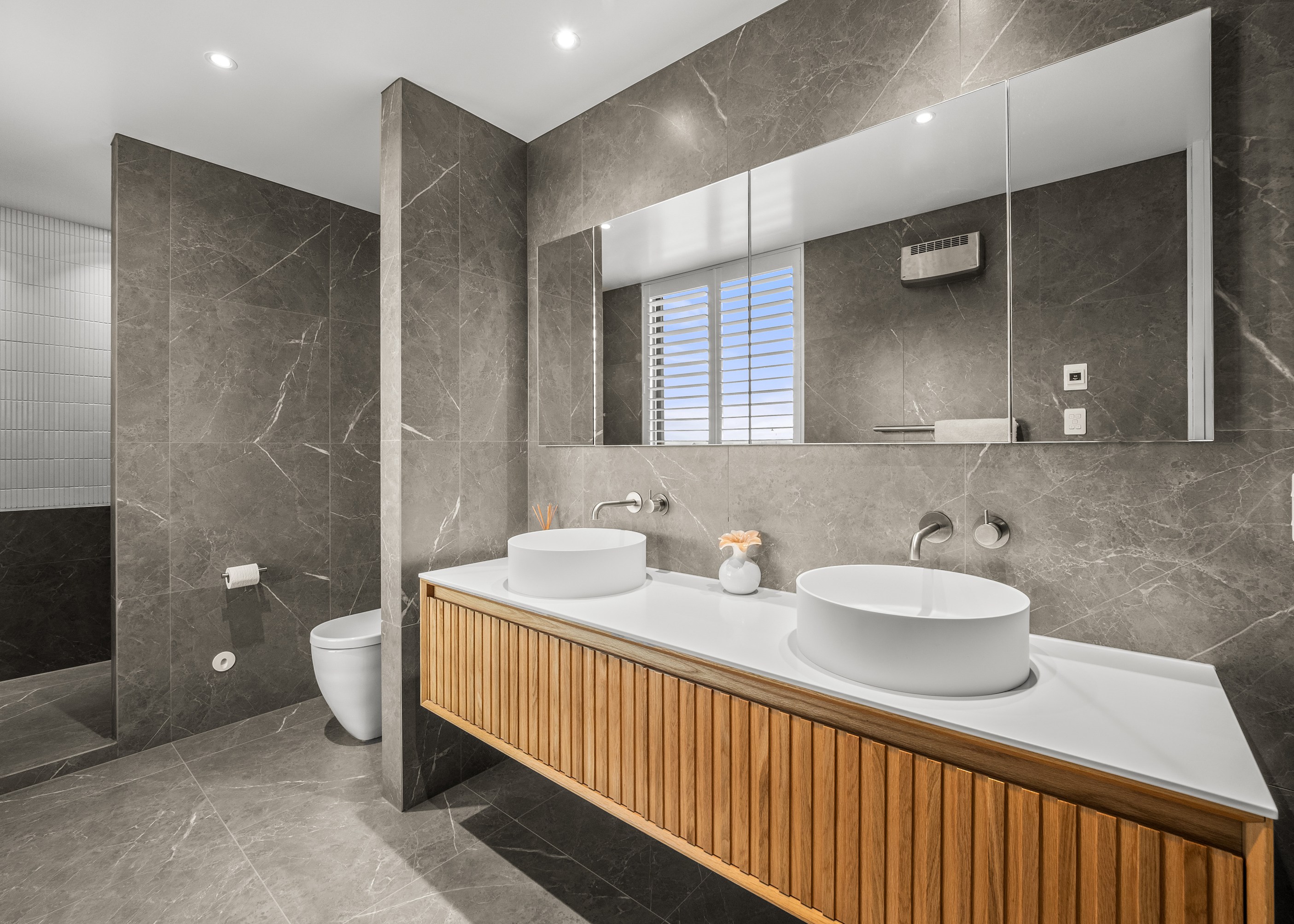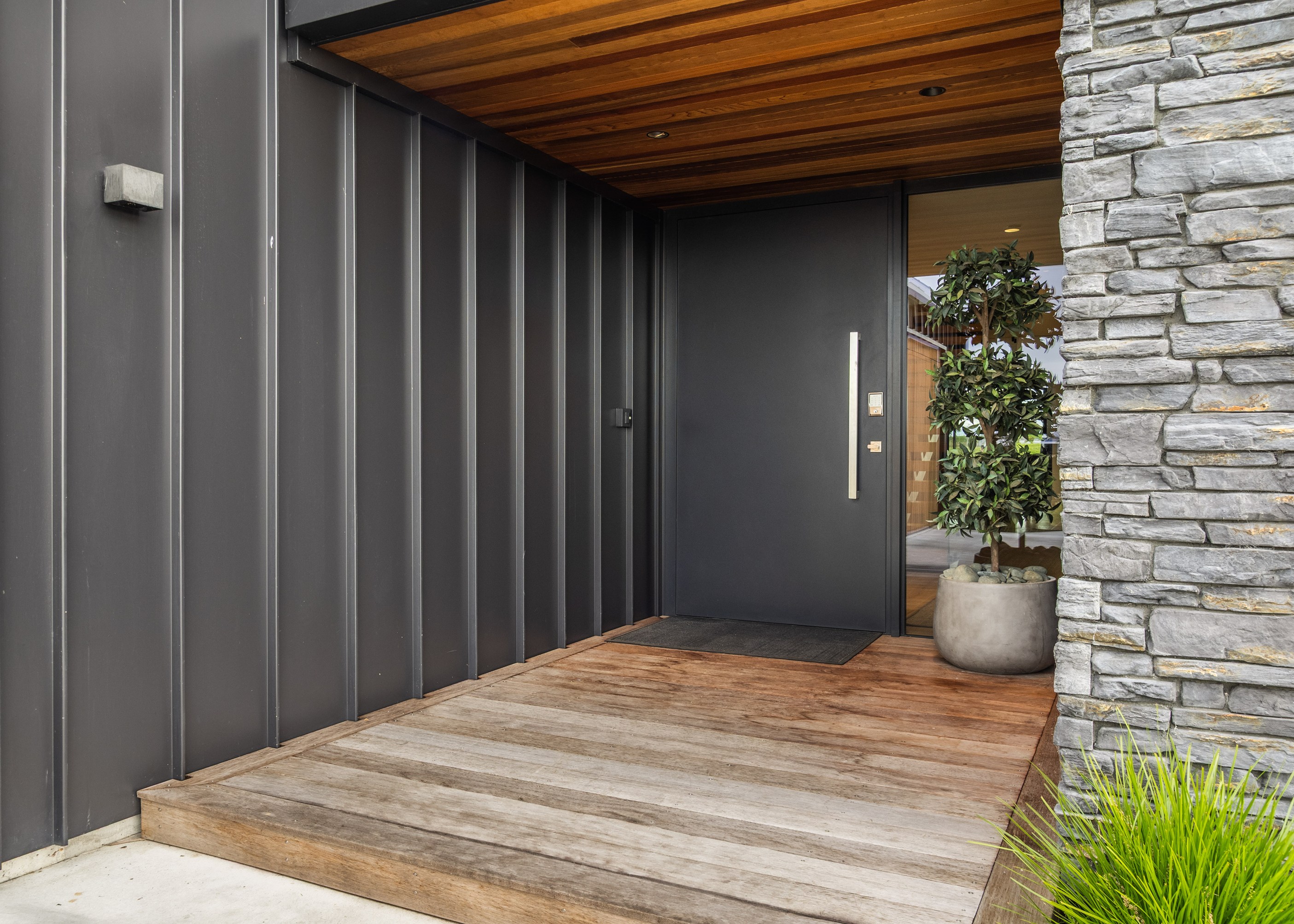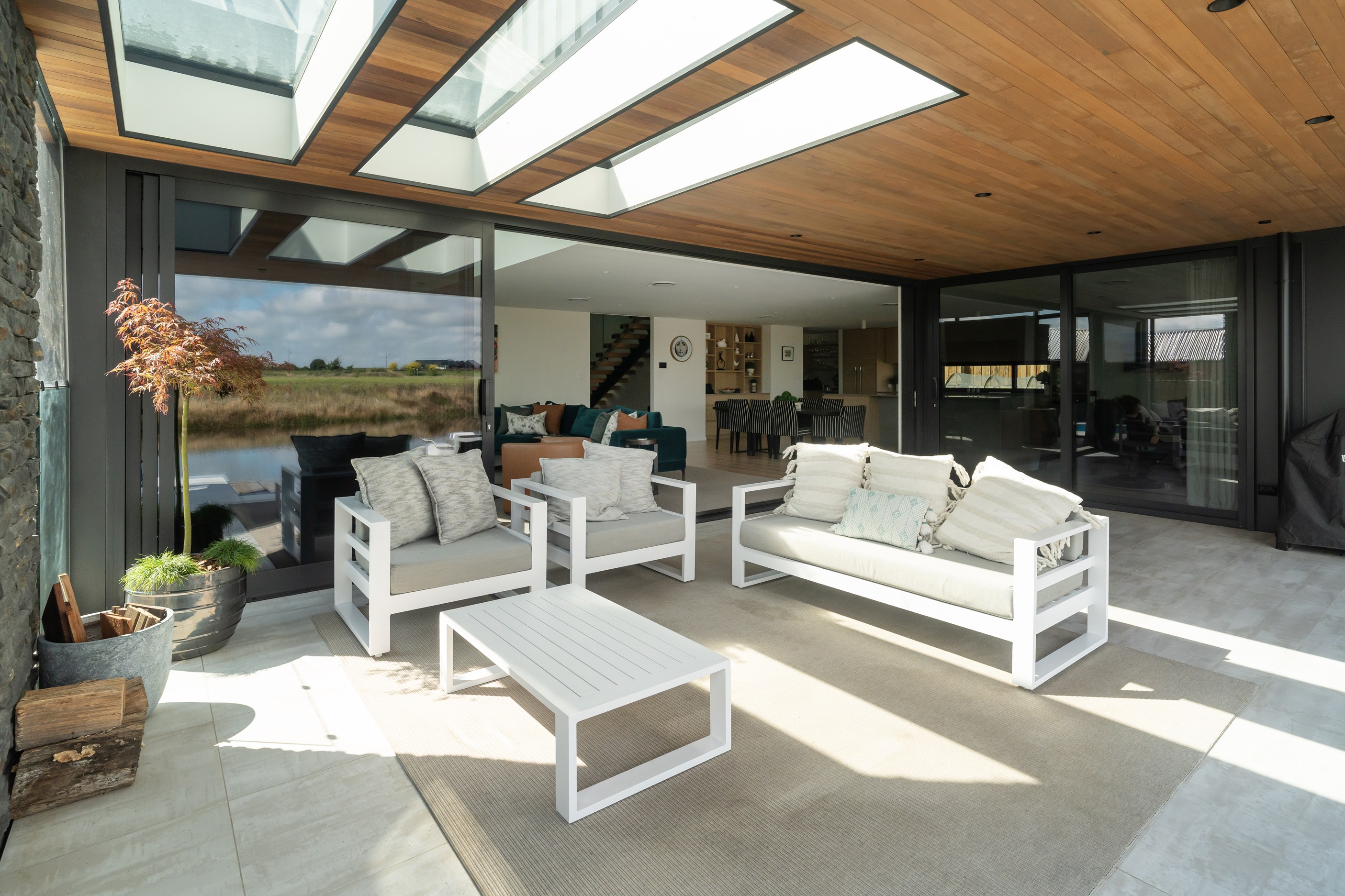 A soft, natural palette runs throughout the interior, pairing warmth with architectural clarity. On the exterior, black standing-seam cladding, cedar and stonework give the home strong definition. Sustainability is integrated with 26 solar panels and a 11kWh battery system to power everything (including EV charging), while zoned heating and cooling ensure quiet efficiency. This is a thoughtfully tailored home — one that’s deeply connected to its setting and designed to be enjoyed at every stage of life.