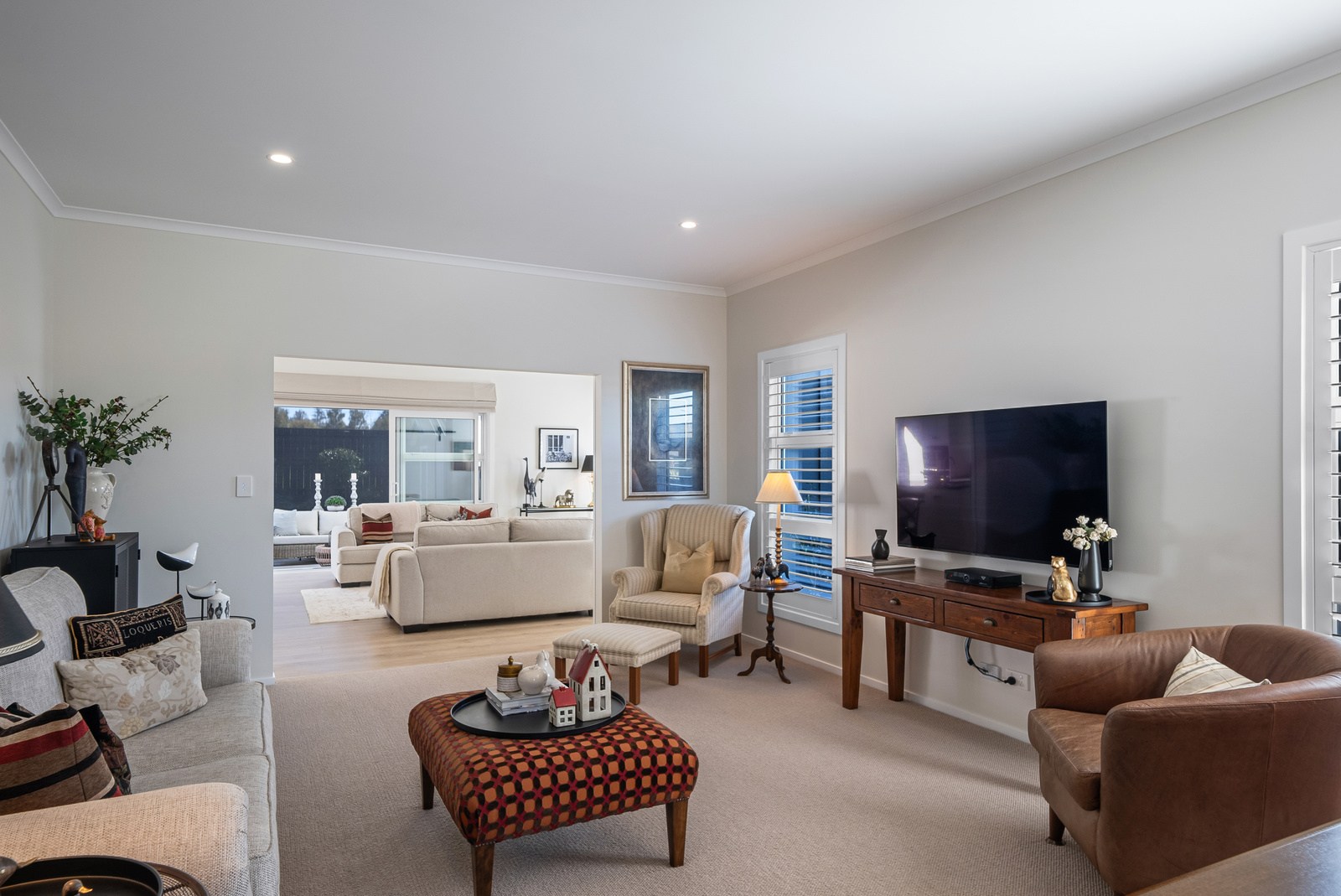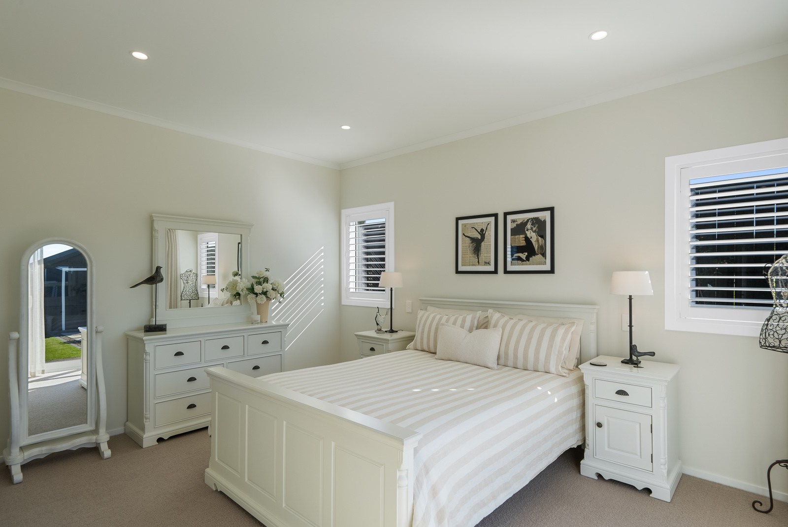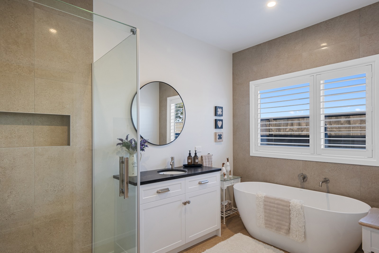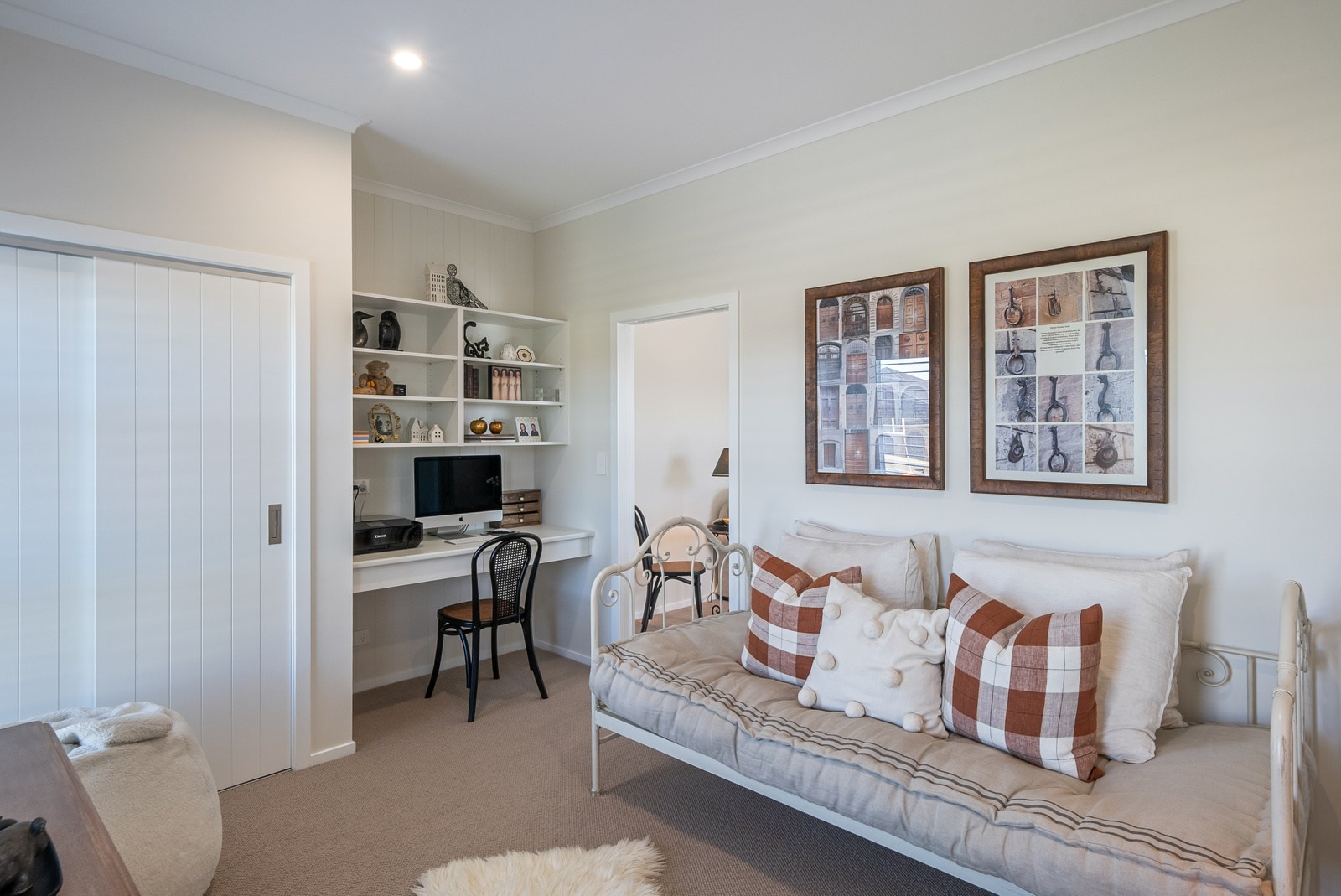 A key must-have of the 233sqm design was an abundance of natural light and the house delivers here, too. Tall windows and sliding doors that open to wow-factor outdoor living spaces, including a loggia, ensure there’s plenty of sun to illuminate and warm. The main bedroom at the very end of a wing in the L-shaped house has a walk-in wardrobe, ensuite and sliders that connect to the outdoors. There’s plenty more on the expertly constructed property’s CV, too, including a kitchen scullery, powder room and internal-access double garage with laundry. Modern, marvellous — and meticulous.