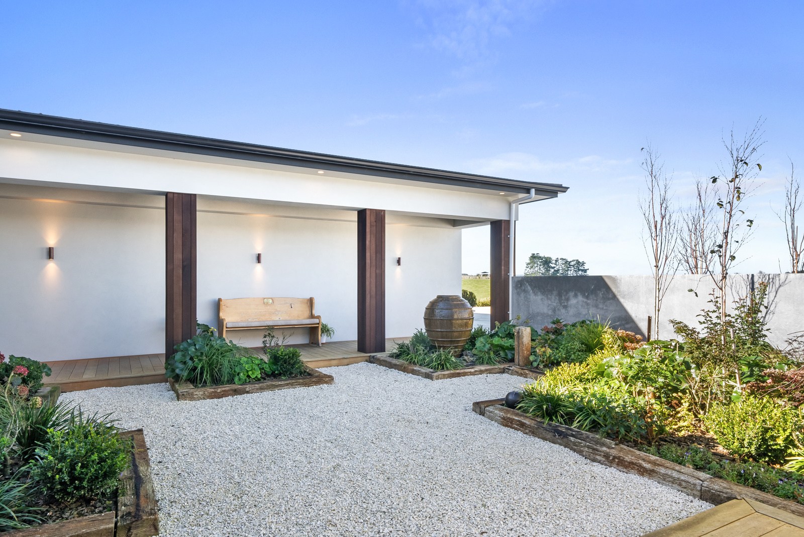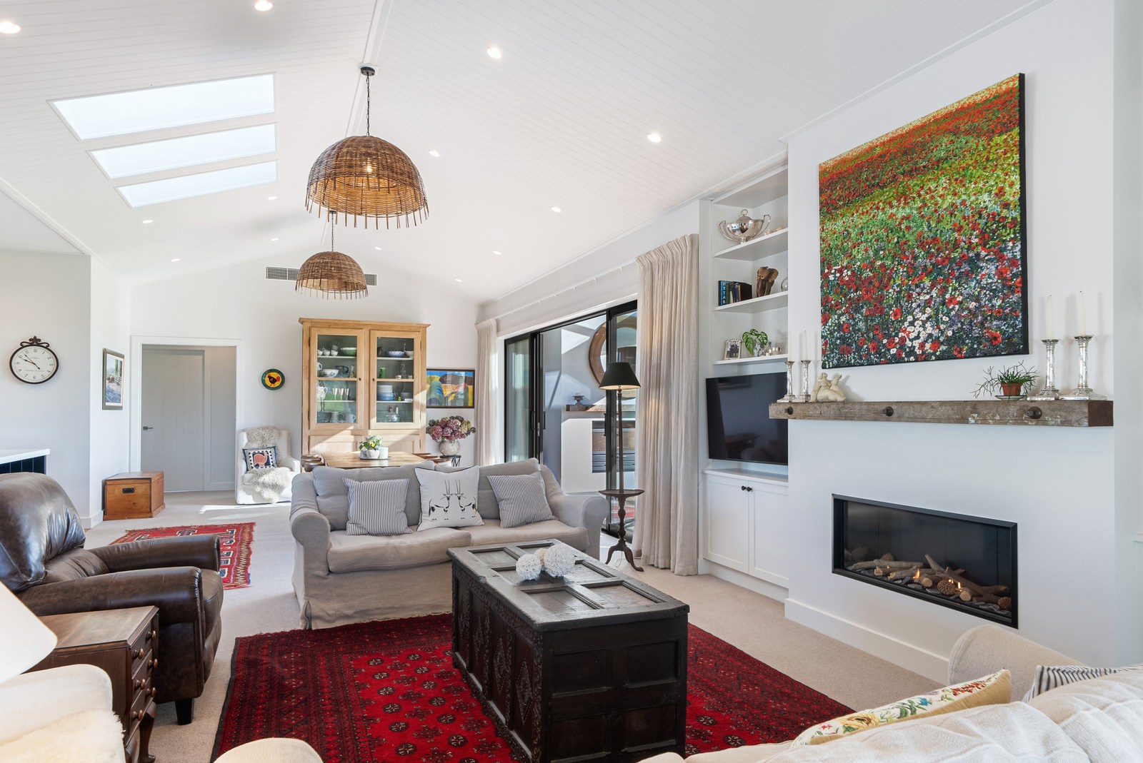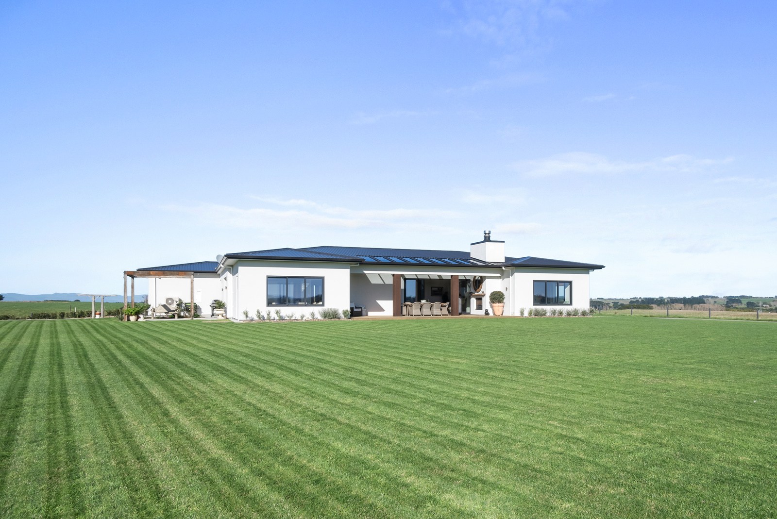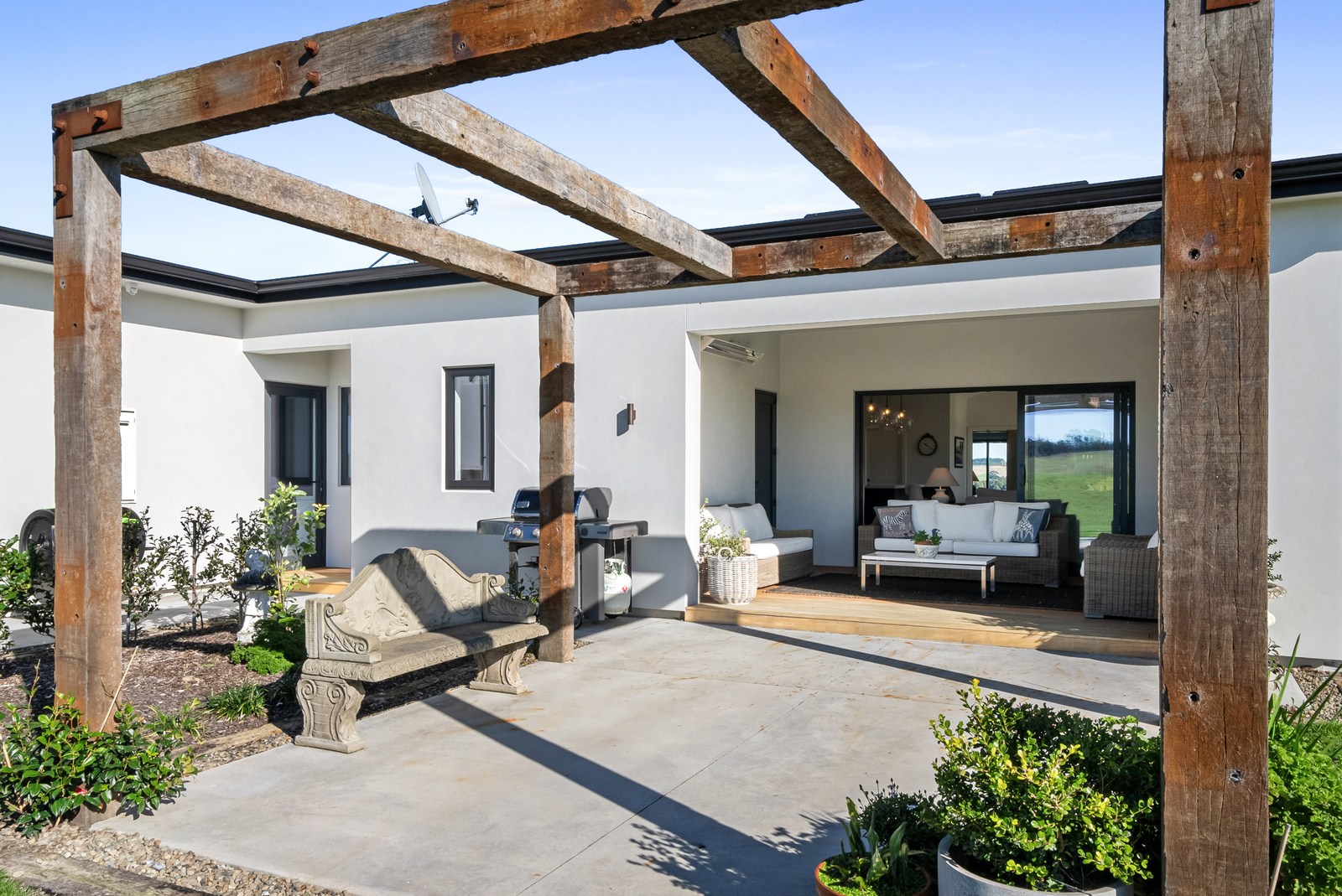 Set amid expansive views of rolling farmland, this four-bedroom, two-bathroom retreat is made for rural living. A walled gravel courtyard, complete with planter boxes and a water feature, creates a welcoming approach, while generous garaging is practical in this setting. Covered outdoor living zones are anchored by a built-in fireplace, offering a warm, sheltered vantage point to enjoy the shifting light as it colours the surrounding landscape. Inside, the 337sqm layout blends timeless materials with contemporary ease. Traditional farmhouse cues — weathered timber features, crisp plaster and deep eaves — give way to expansive, open-plan living, where three skylights draw light into the heart of the home.
