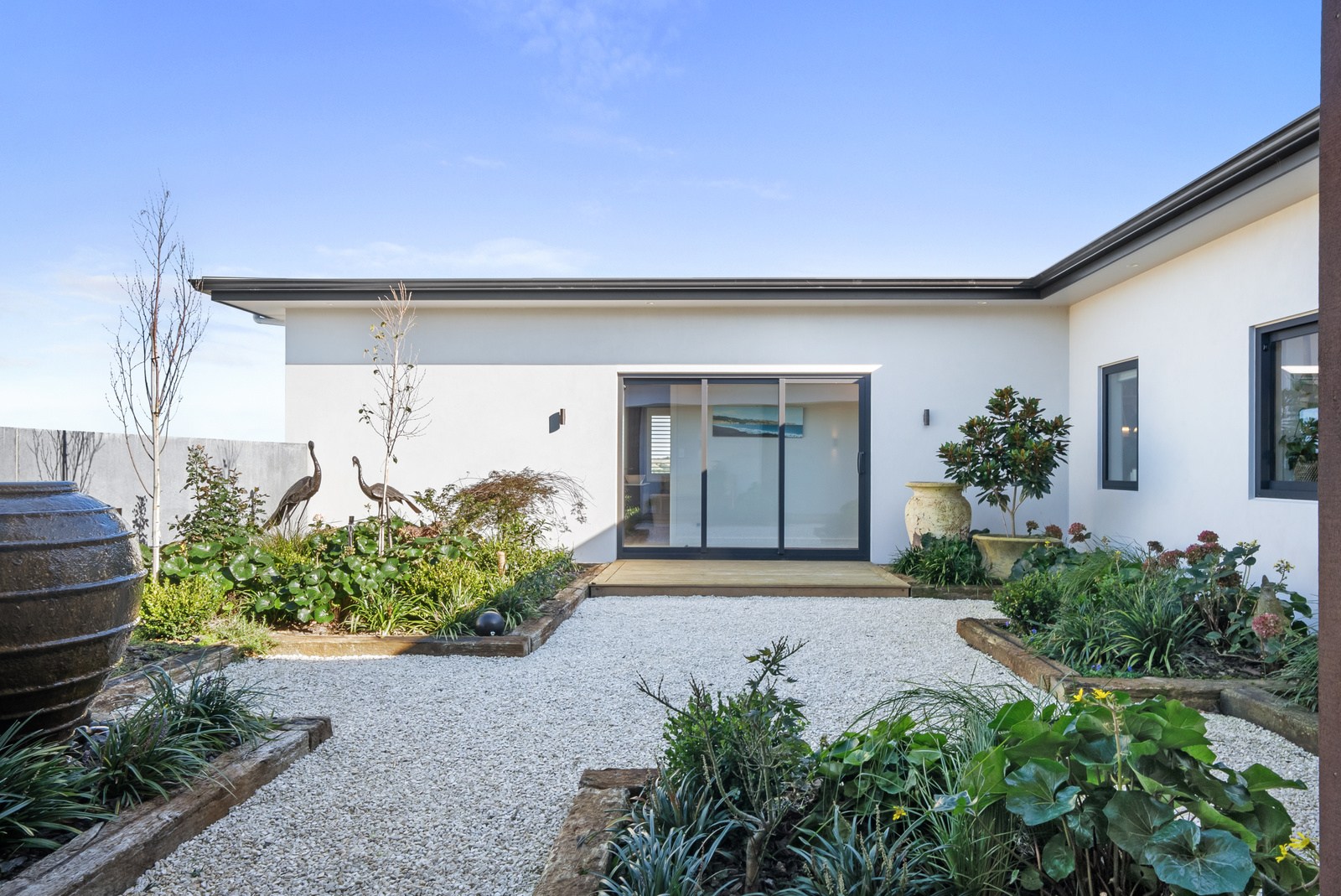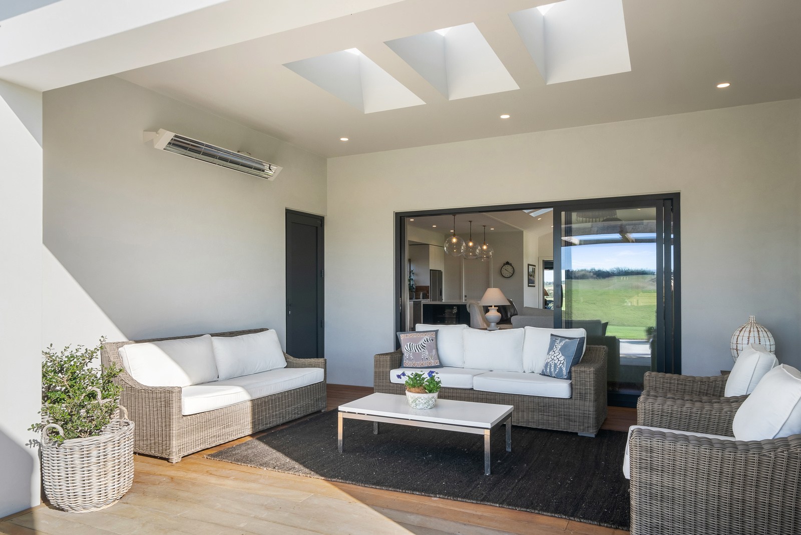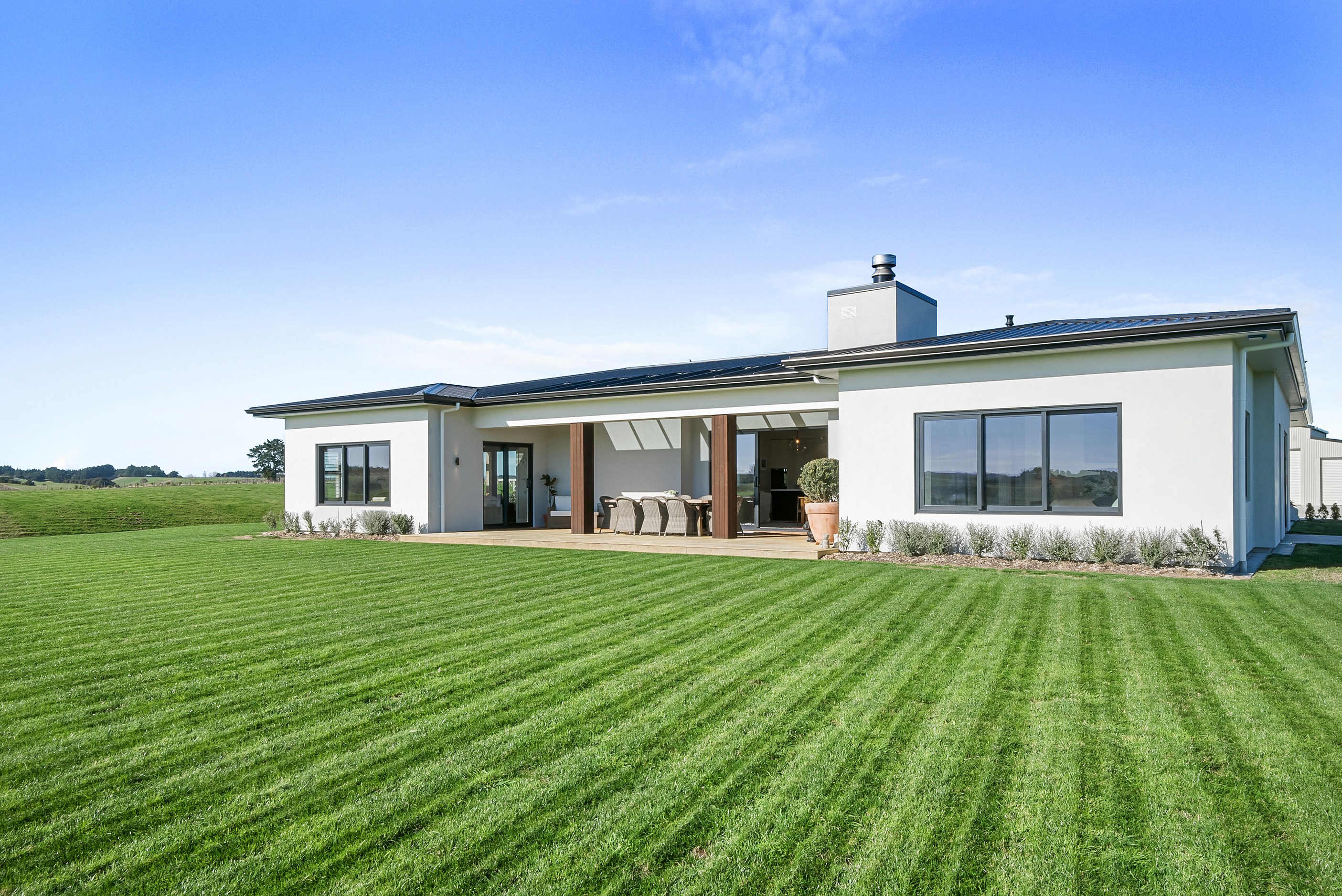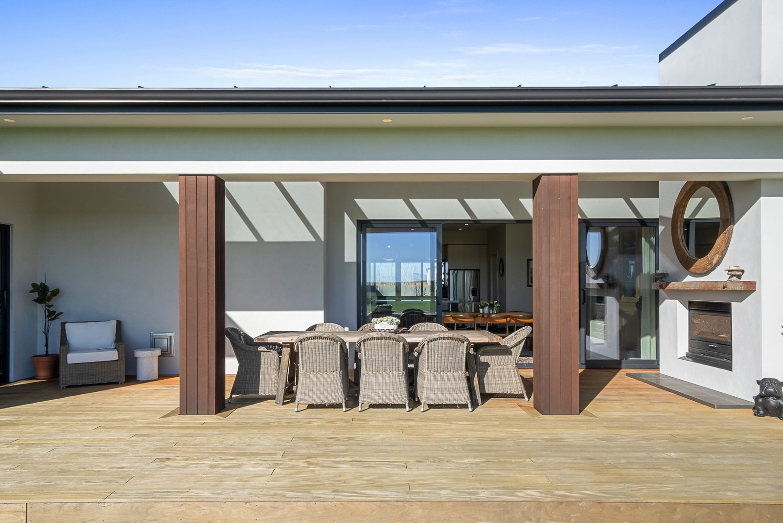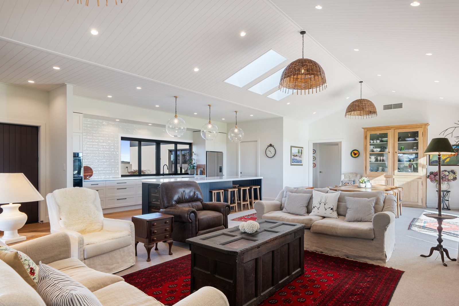 Set amid expansive views of rolling farmland, this four-bedroom, two-bathroom retreat is made for rural living. A walled gravel courtyard, complete with planter boxes and a water feature, creates a welcoming approach, while generous garaging is practical in this setting. Covered outdoor living zones are anchored by a built-in fireplace, offering a warm, sheltered vantage point to enjoy the shifting light as it colours the surrounding landscape. Inside, the 337sqm layout blends timeless materials with contemporary ease. Traditional farmhouse cues — weathered timber features, crisp plaster and deep eaves — give way to expansive, open-plan living, where three skylights draw light into the heart of the home.