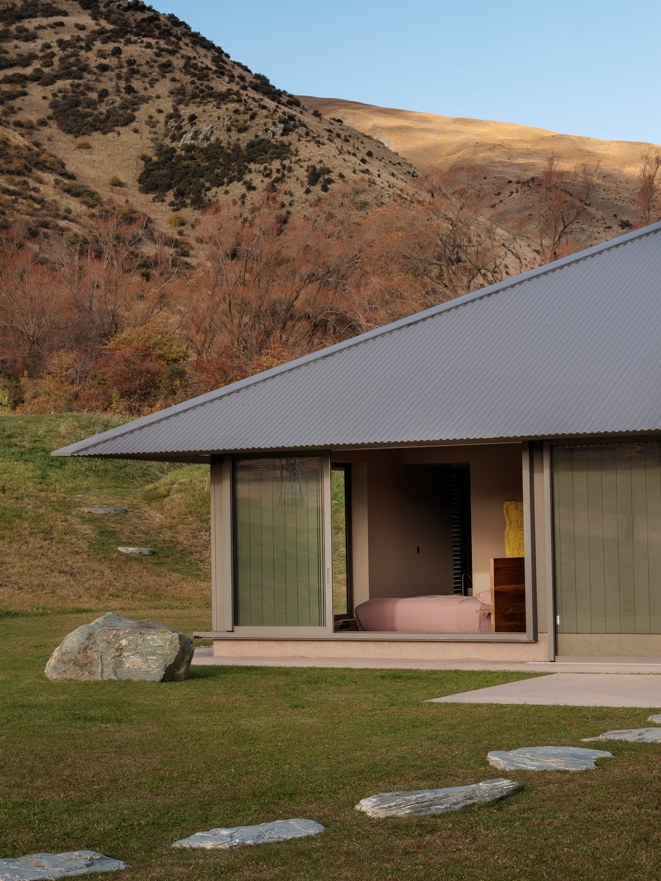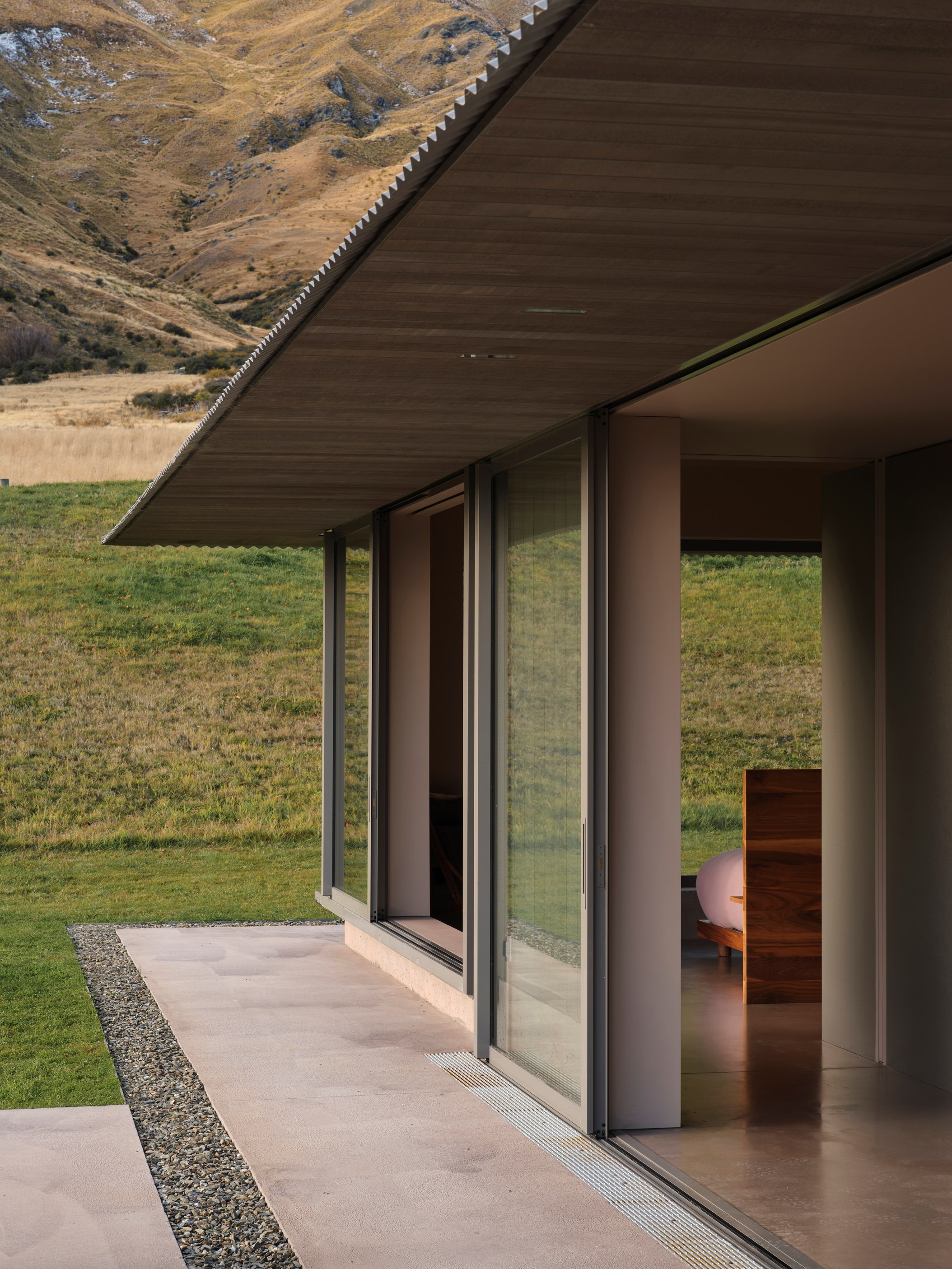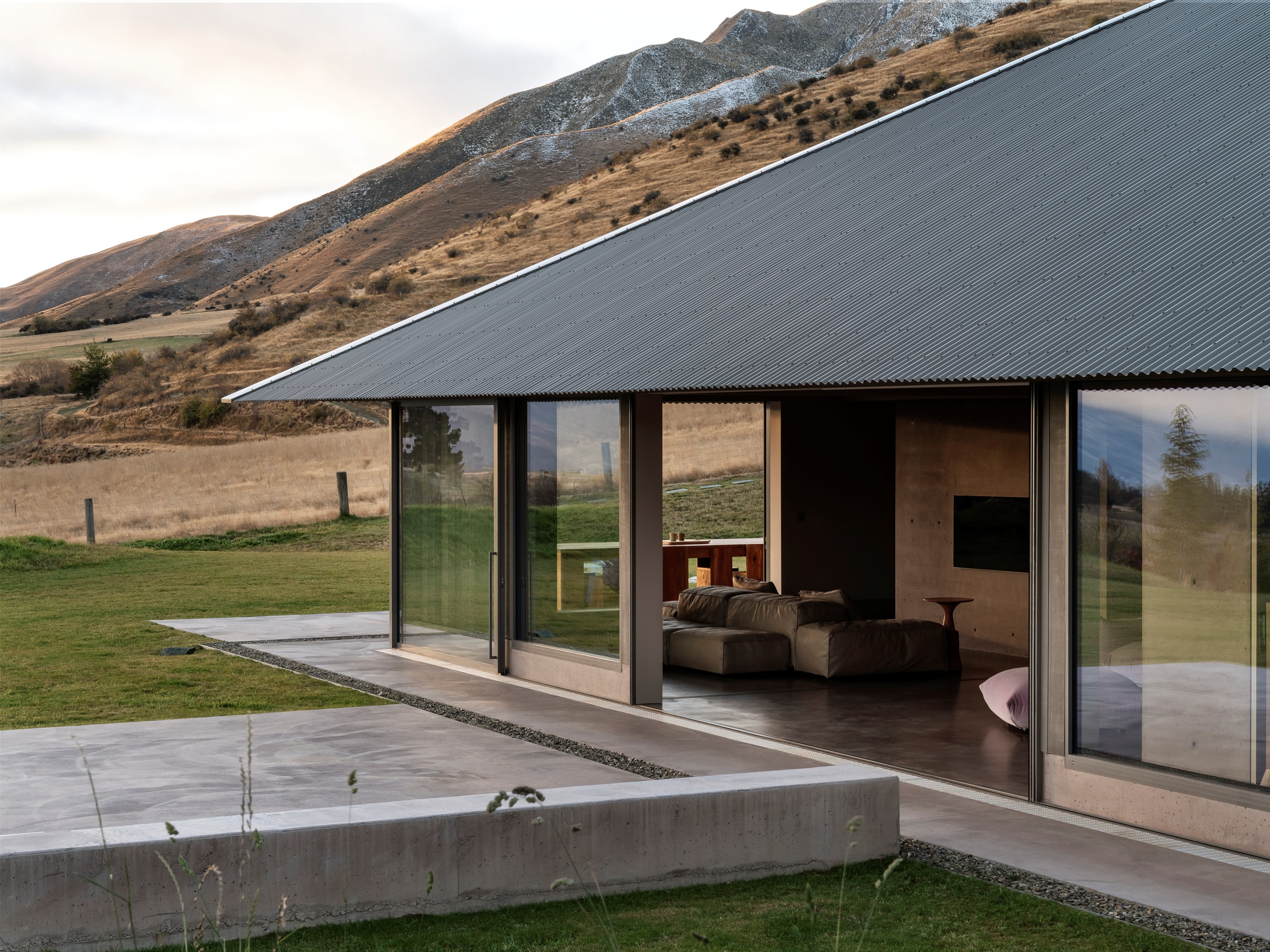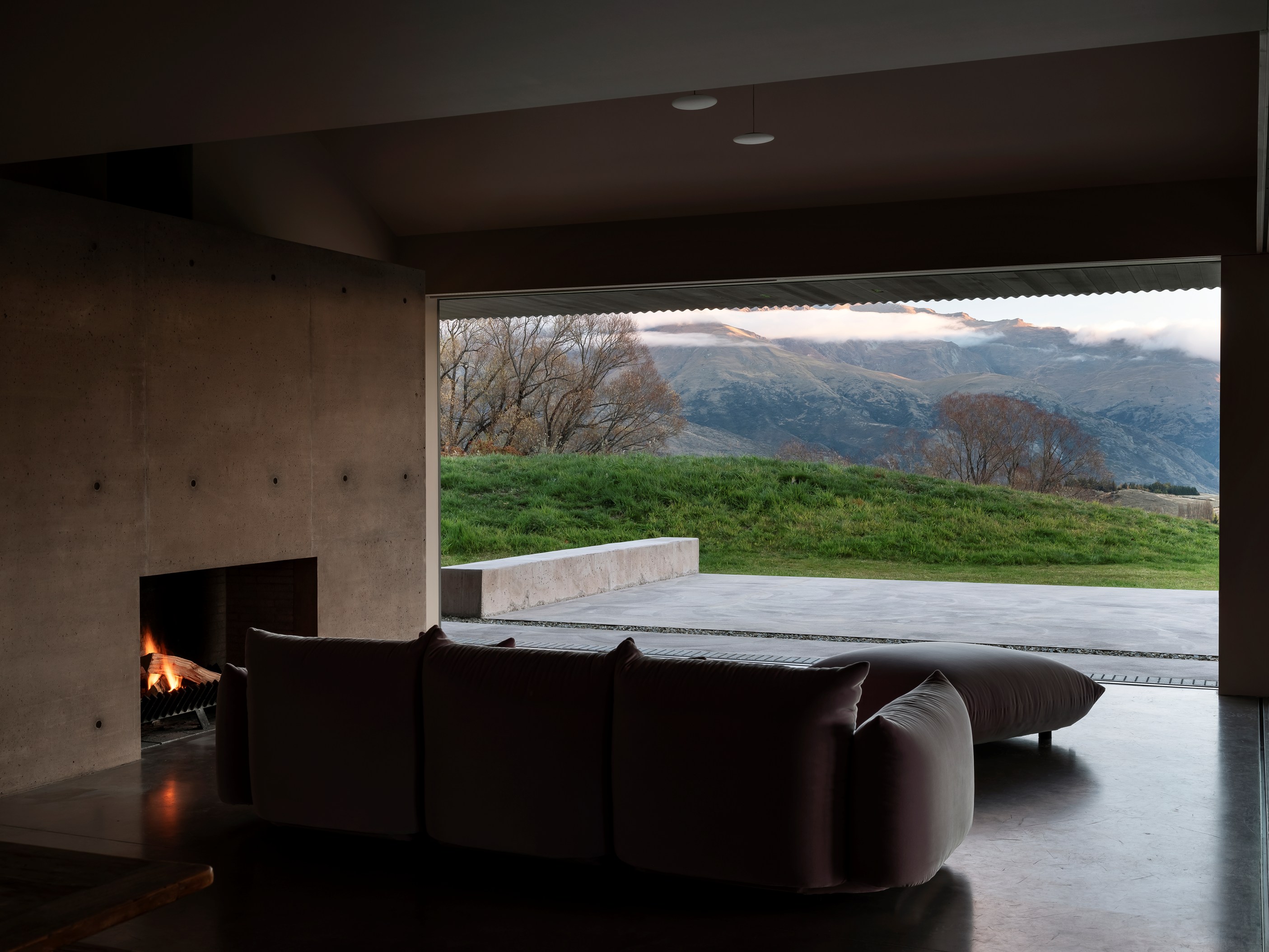This alpine house, designed by Keshaw McArthur, stands apart with its unconventional nine-square grid floorplan — a layout that does more than just organise space, it creates a rhythm, a symmetry and a deep sense of flexibility. Each square functions as a room which can be opened or closed with pocket sliders, allowing the home to expand and contract when needed. Open the sliders and two living rooms flow into the kitchen and dining zone to become one expansive pavilion. Slide them shut and a more intimate arrangement takes shape. One of these living rooms could become a bedroom to join three others in each corner of the floorplan.