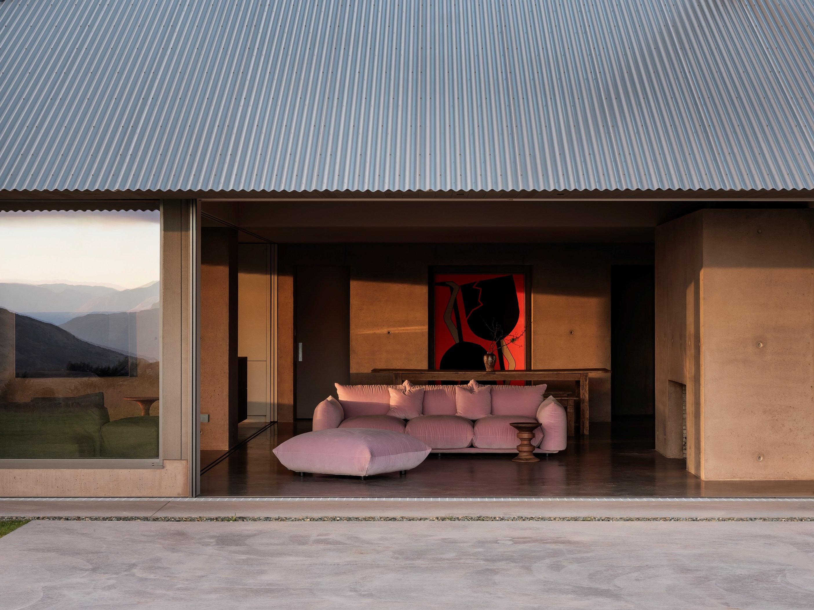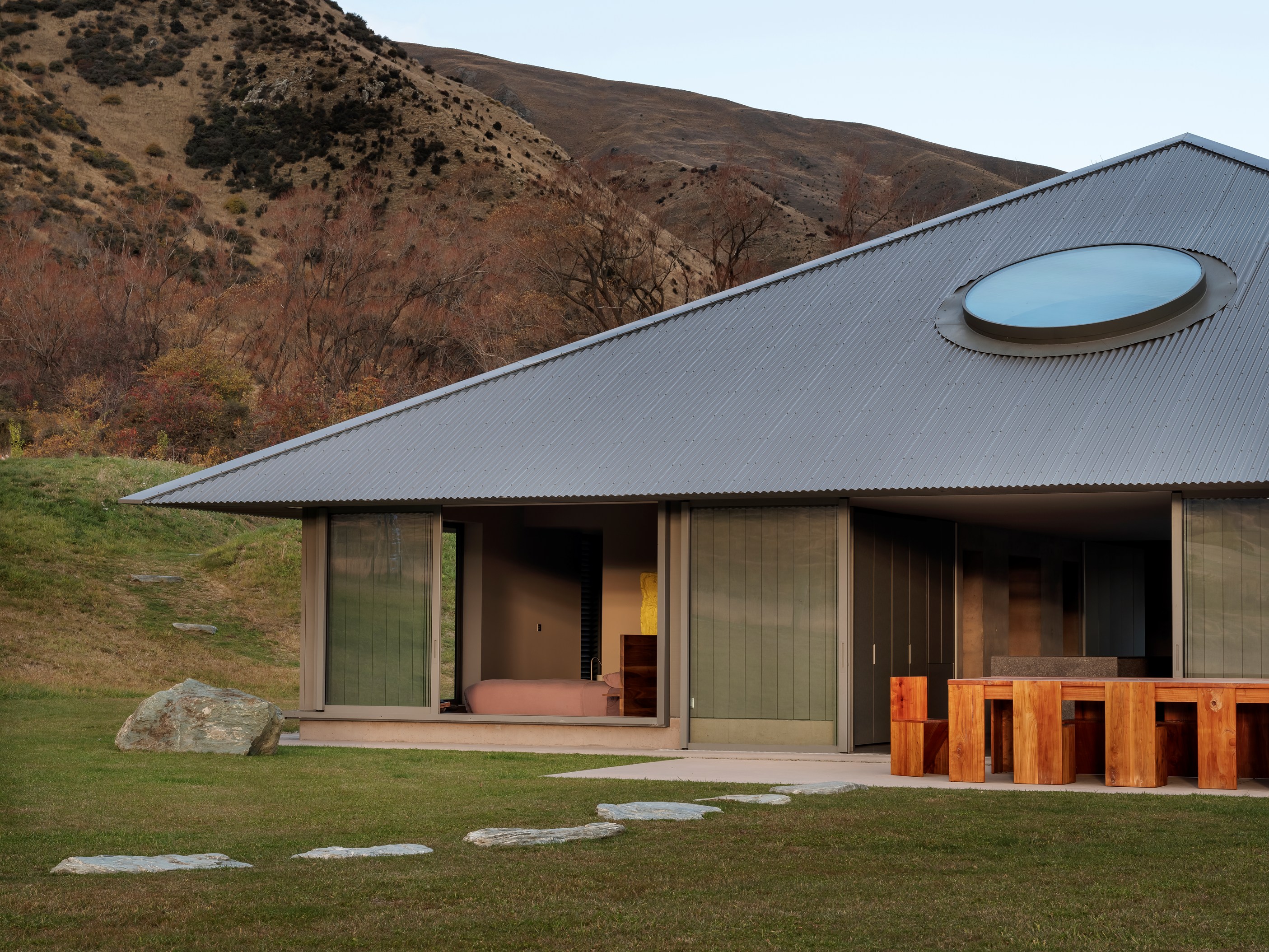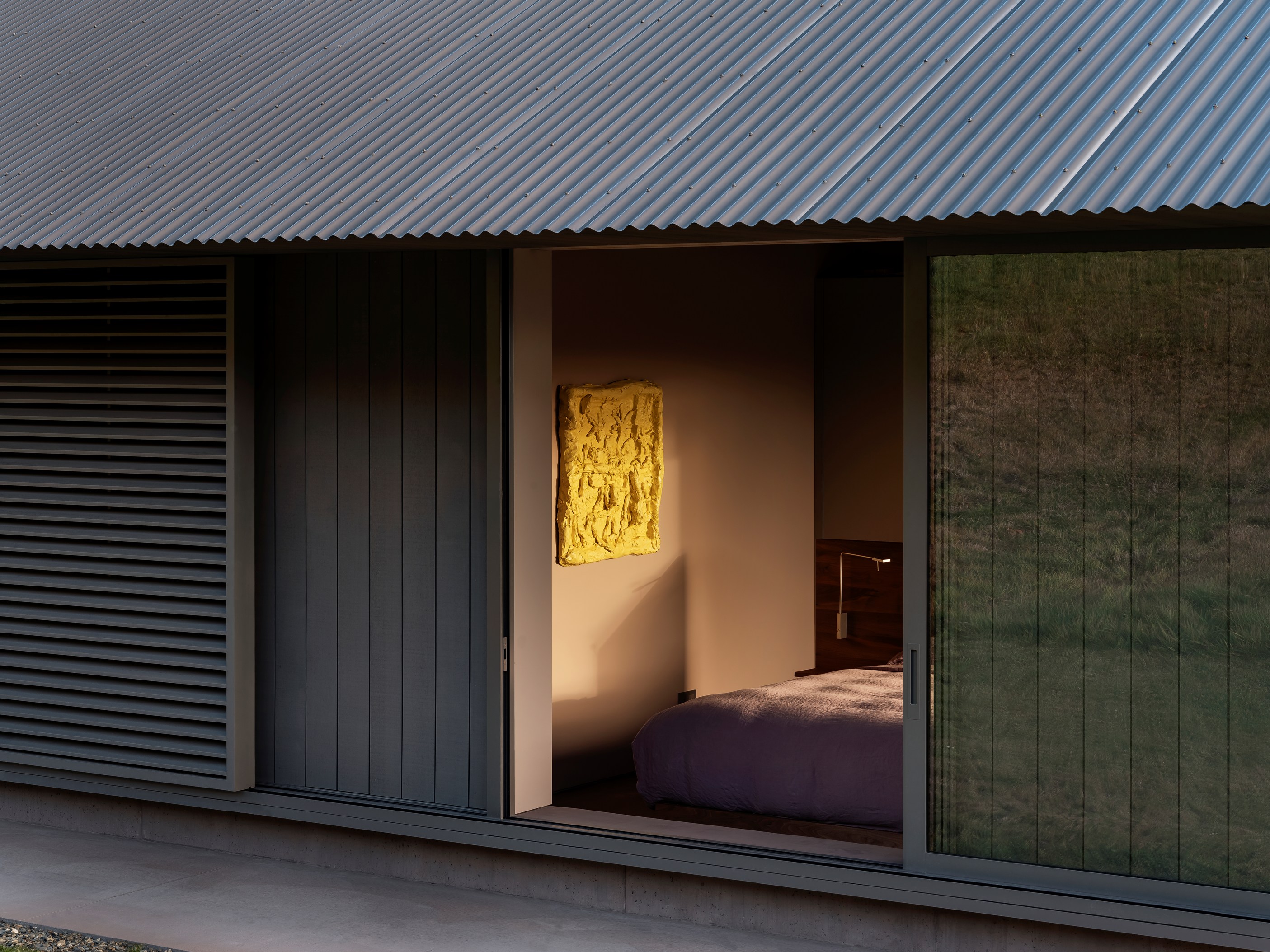 This alpine house, designed by Keshaw McArthur, stands apart with its unconventional nine-square grid floorplan — a layout that does more than just organise space, it creates a rhythm, a symmetry and a deep sense of flexibility. Each square functions as a room which can be opened or closed with pocket sliders, allowing the home to expand and contract when needed. Open the sliders and two living rooms flow into the kitchen and dining zone to become one expansive pavilion. Slide them shut and a more intimate arrangement takes shape. One of these living rooms could become a bedroom to join three others in each corner of the floorplan.