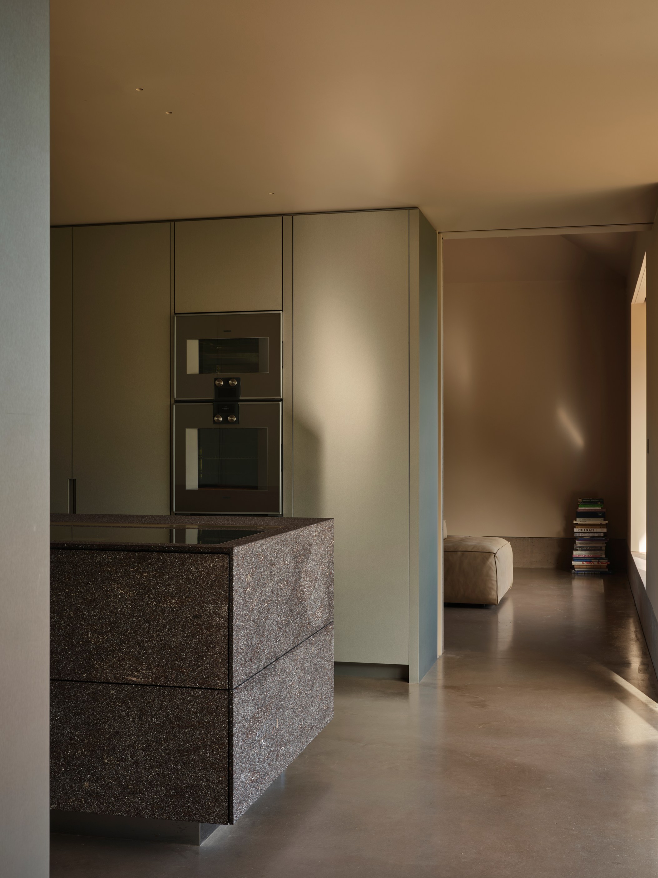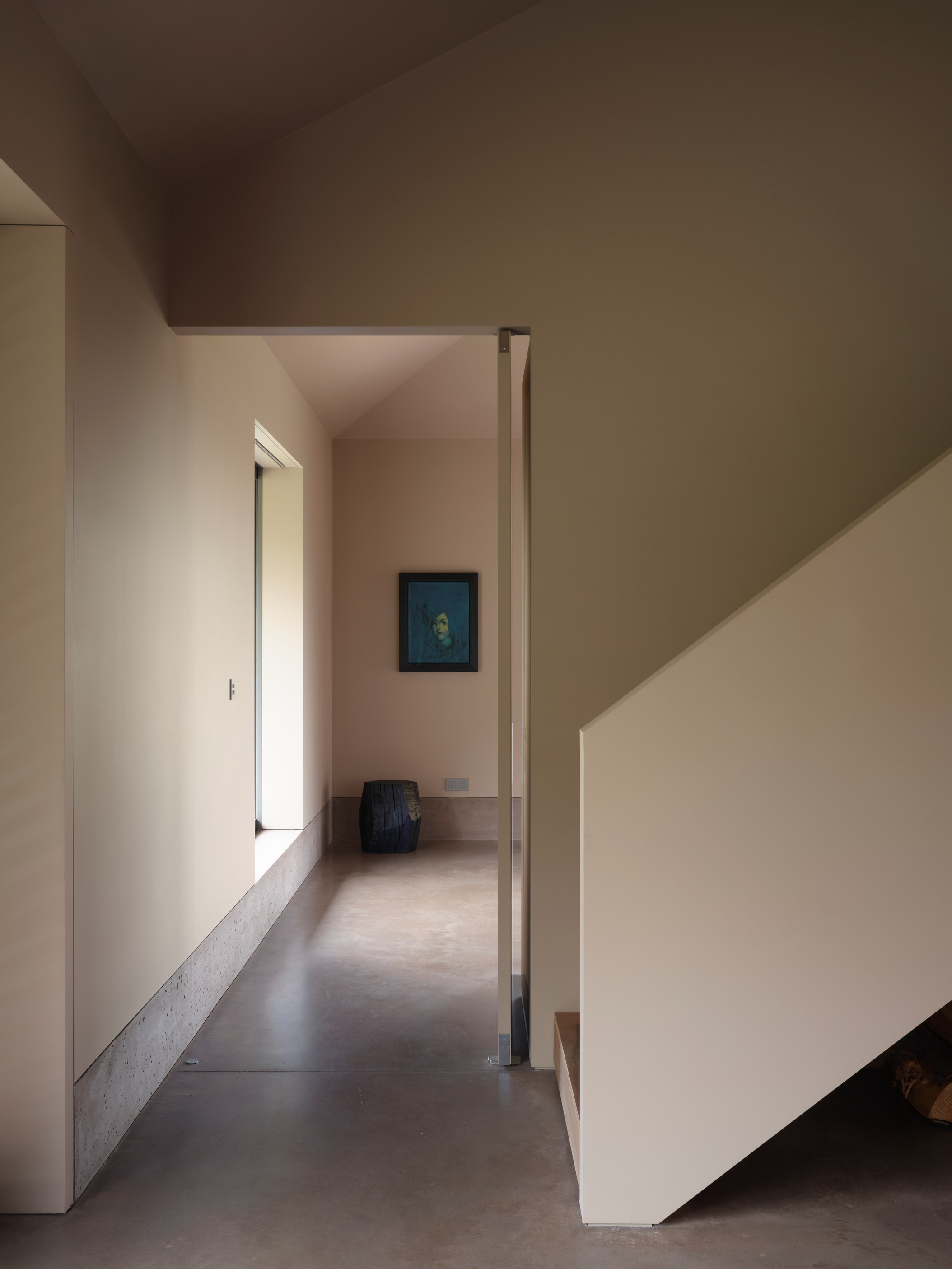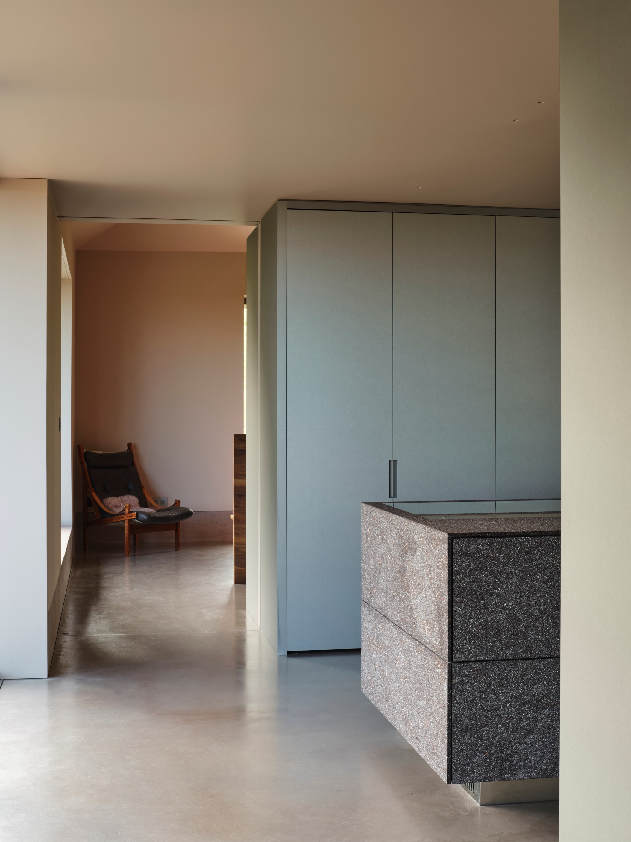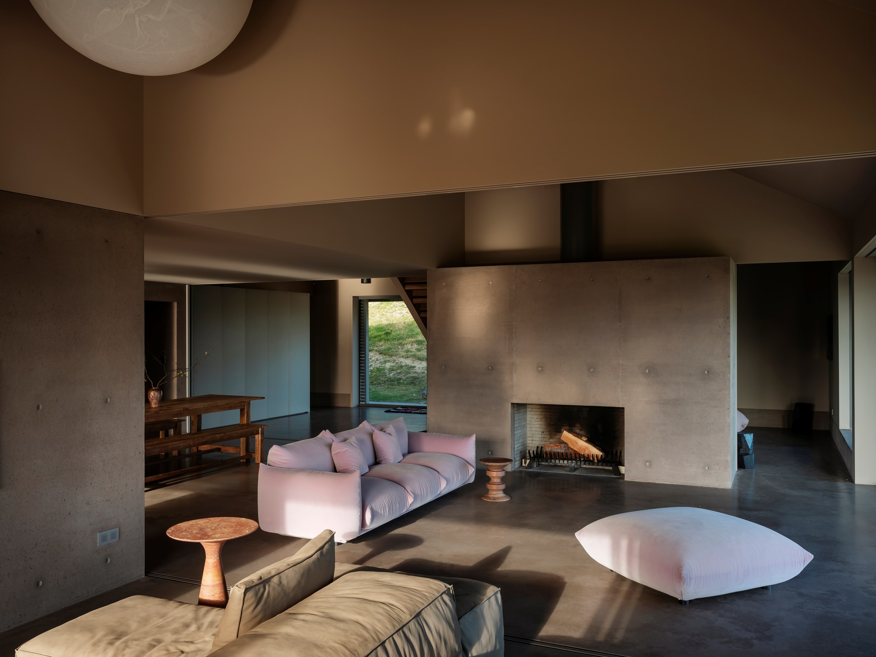 This alpine house, designed by Keshaw McArthur, stands apart with its unconventional nine-square grid floorplan — a layout that does more than just organise space, it creates a rhythm, a symmetry and a deep sense of flexibility. Each square functions as a room which can be opened or closed with pocket sliders, allowing the home to expand and contract when needed. Open the sliders and two living rooms flow into the kitchen and dining zone to become one expansive pavilion. Slide them shut and a more intimate arrangement takes shape. One of these living rooms could become a bedroom to join three others in each corner of the floorplan.
