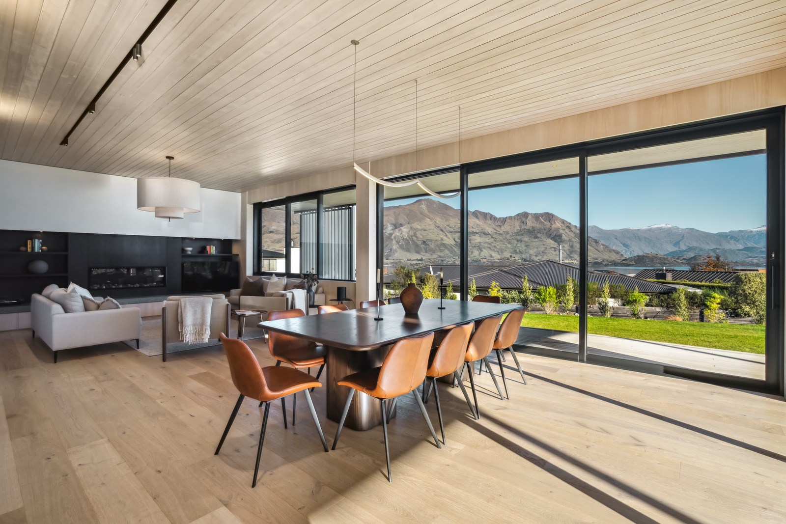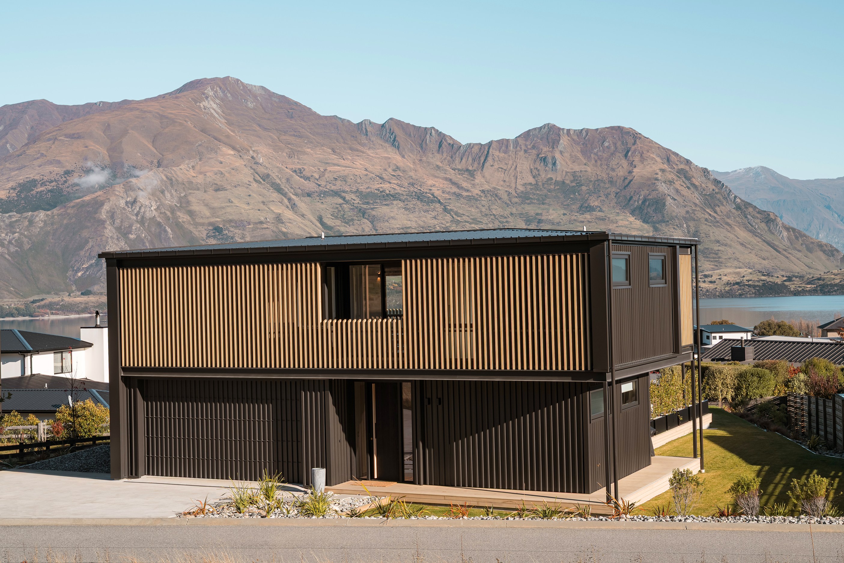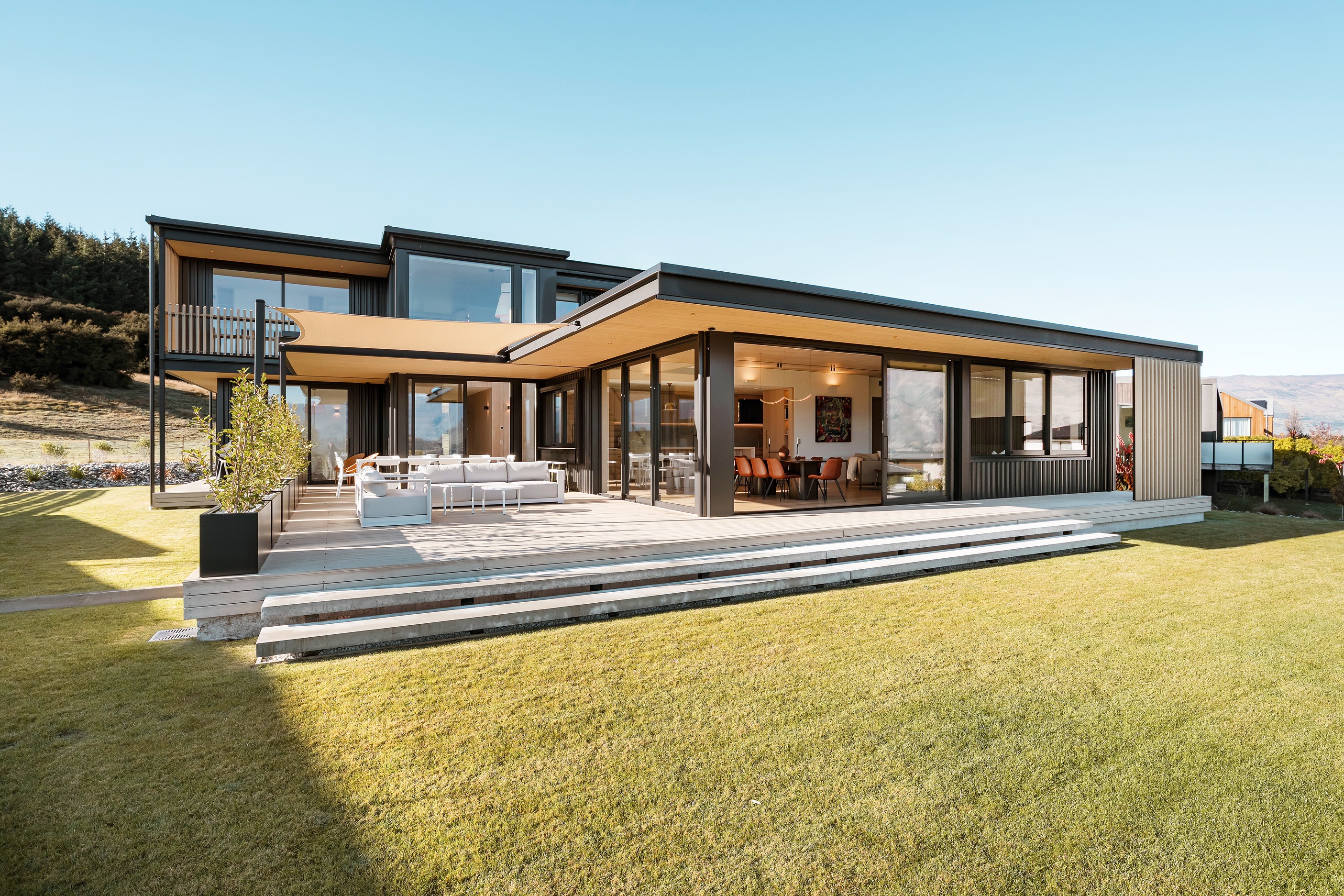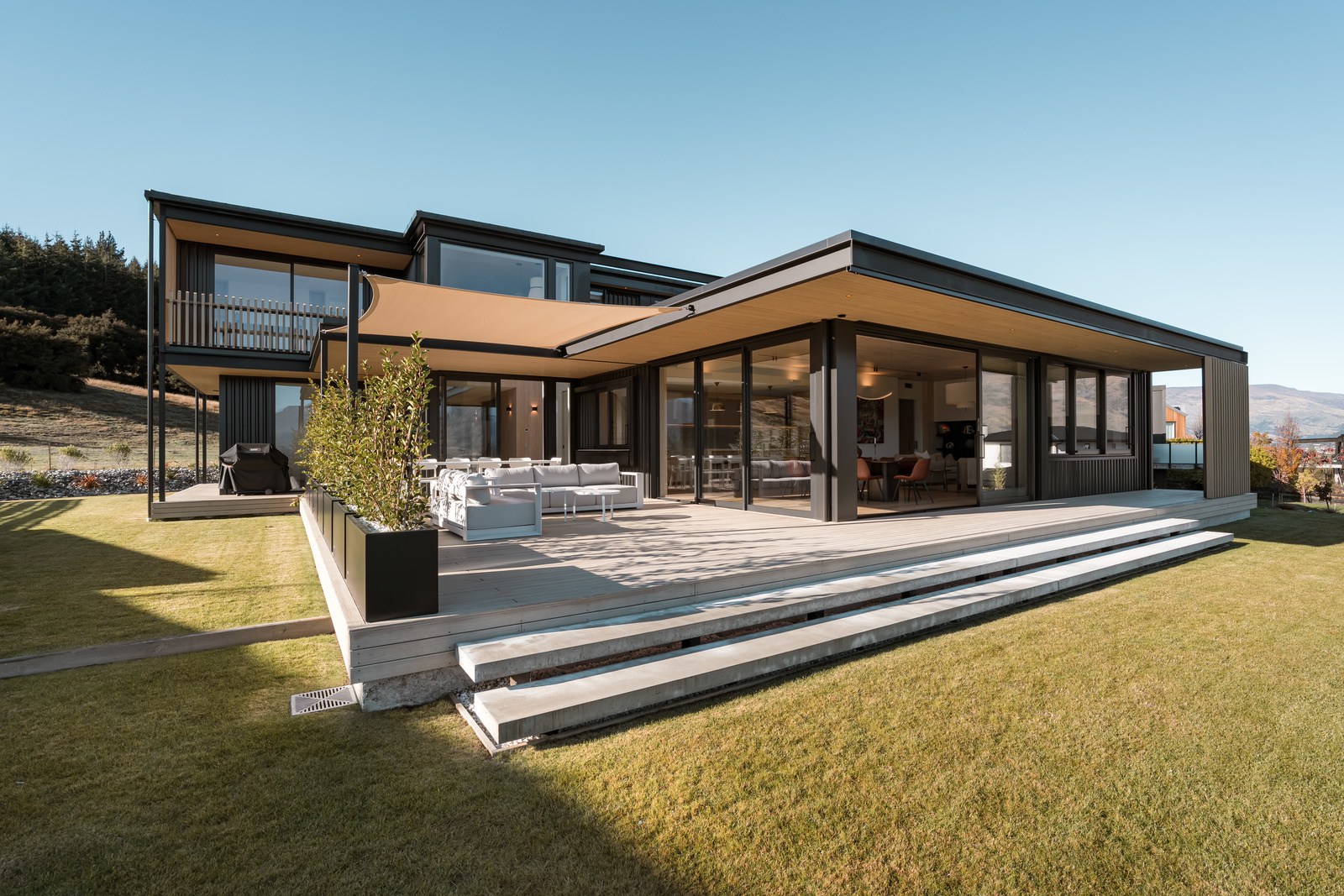 The brief was for a future-proofed family retreat with a strong Danish aesthetic, made to suit the Central Otago landscape. The result is a sophisticated 259sqm residence where light and shadow are architectural features in their own right. Blonded timber linings (in keeping with the Scandi look) and soft finishes lend warmth to the minimalist palette, while slender slatted screens bring dappled light and layered privacy to decks and windows. Exterior vertical-timber fins animate the black façade, casting changing shadows as the sun shifts through the day.