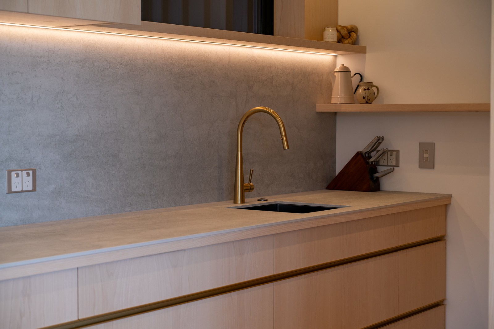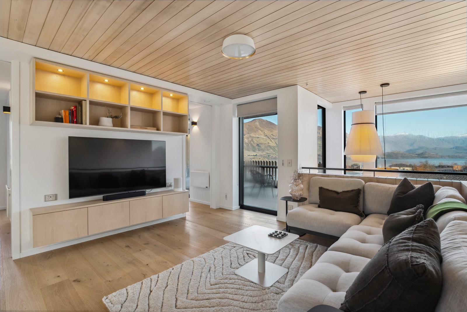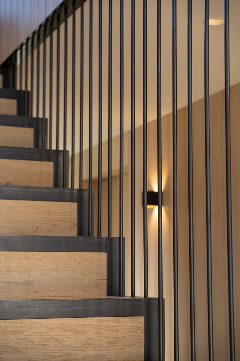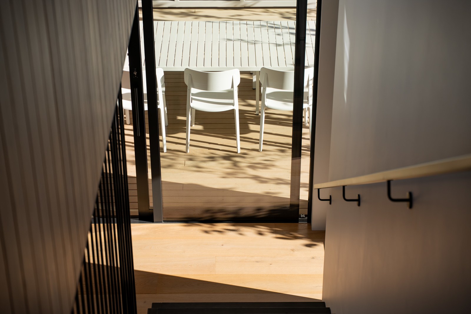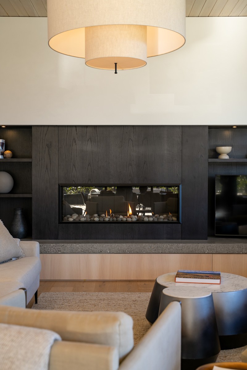 The brief was for a future-proofed family retreat with a strong Danish aesthetic, made to suit the Central Otago landscape. The result is a sophisticated 259sqm residence where light and shadow are architectural features in their own right. Blonded timber linings (in keeping with the Scandi look) and soft finishes lend warmth to the minimalist palette, while slender slatted screens bring dappled light and layered privacy to decks and windows. Exterior vertical-timber fins animate the black façade, casting changing shadows as the sun shifts through the day.