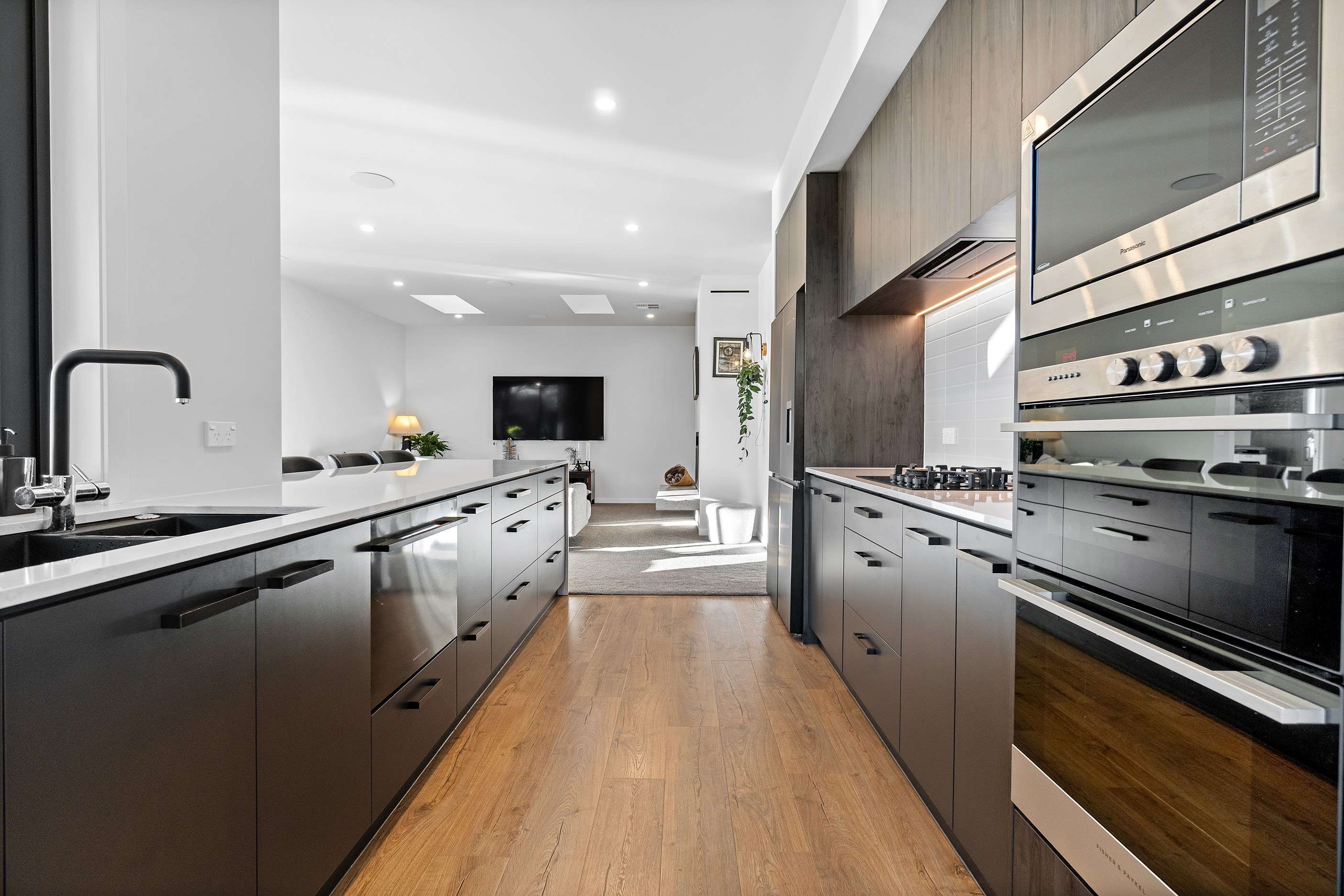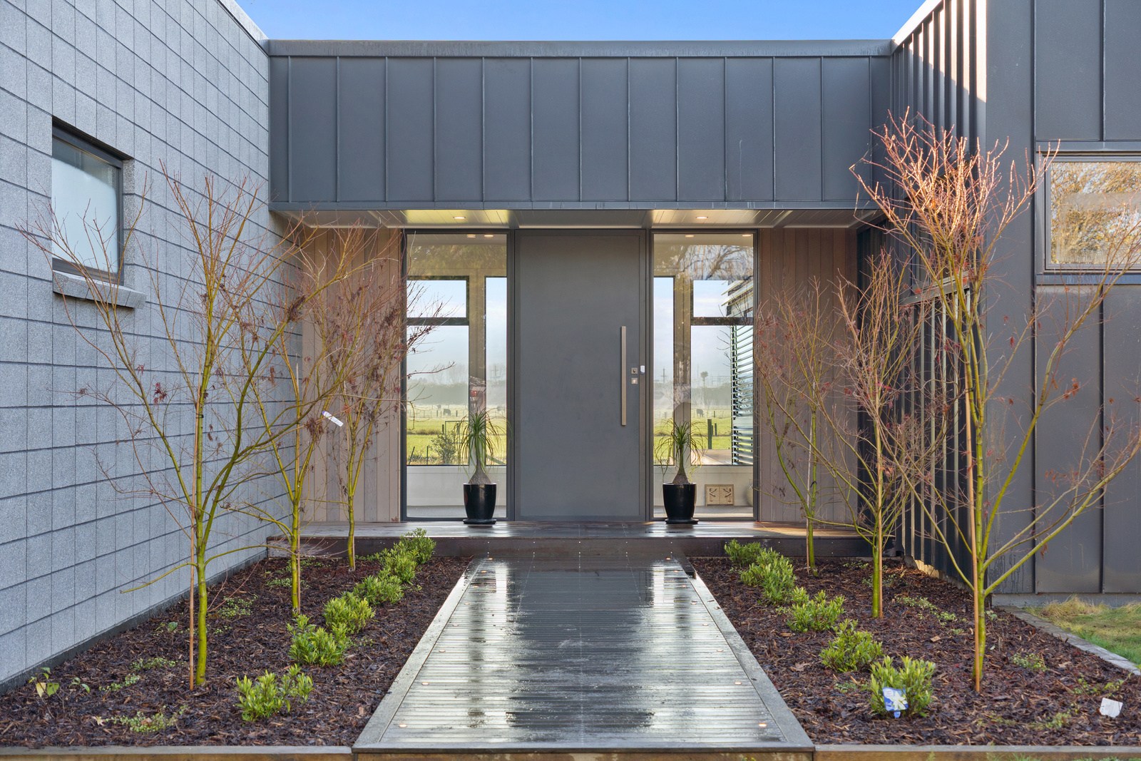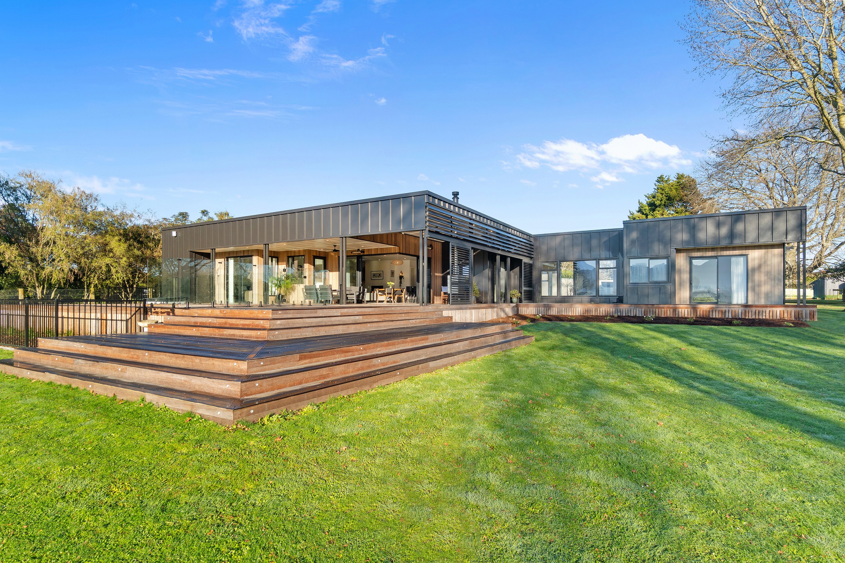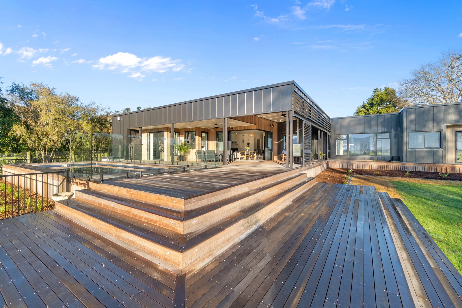 This residence, built for a newly retired couple, embraces stunning views of Mount Te Aroha and perfectly integrates comfort with contemporary elegance. The three-bedroom, three-bathroom home showcases modern architectural lines tailored for family life and built for entertaining. The exterior combines dark standing-seam metal cladding with vertical cedar, creating visual appeal without compromising simplicity. Subtle yet distinct craftsmanship is visible throughout, reflecting a commitment to quality finishes and practical detail.