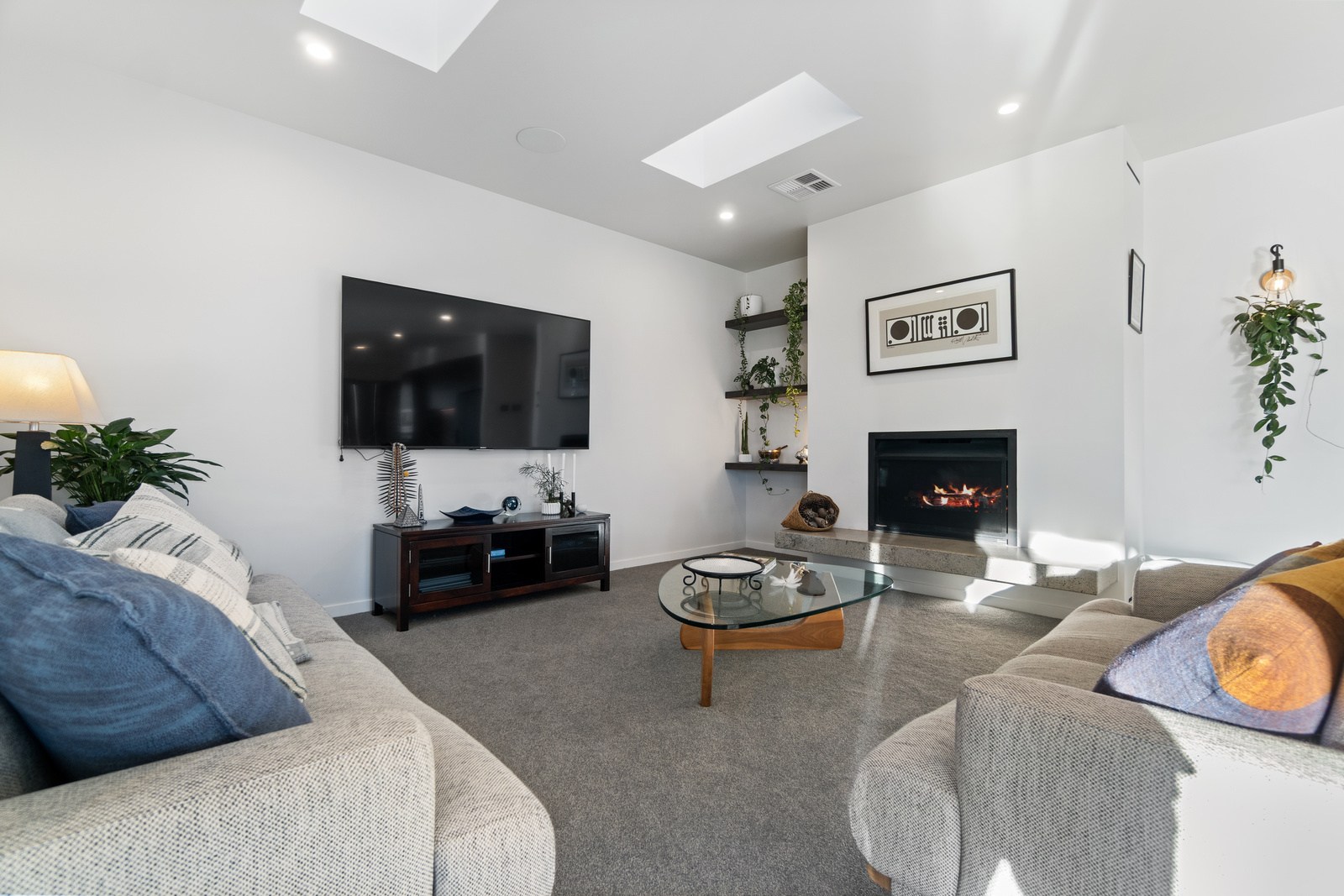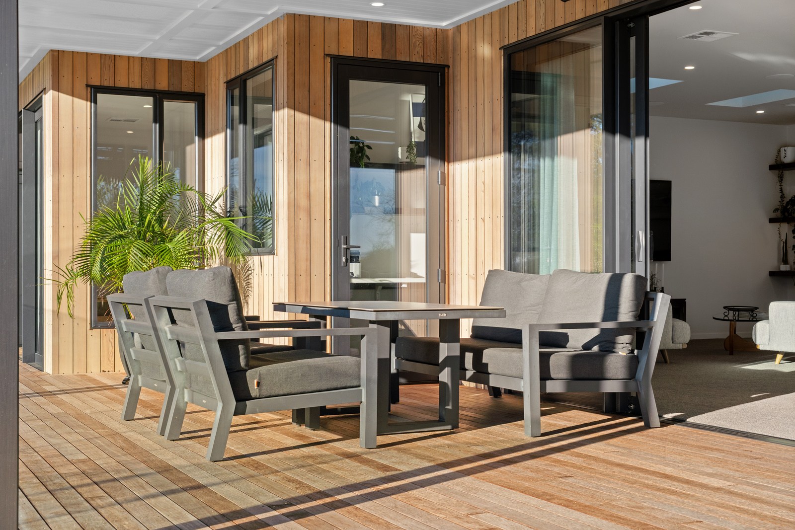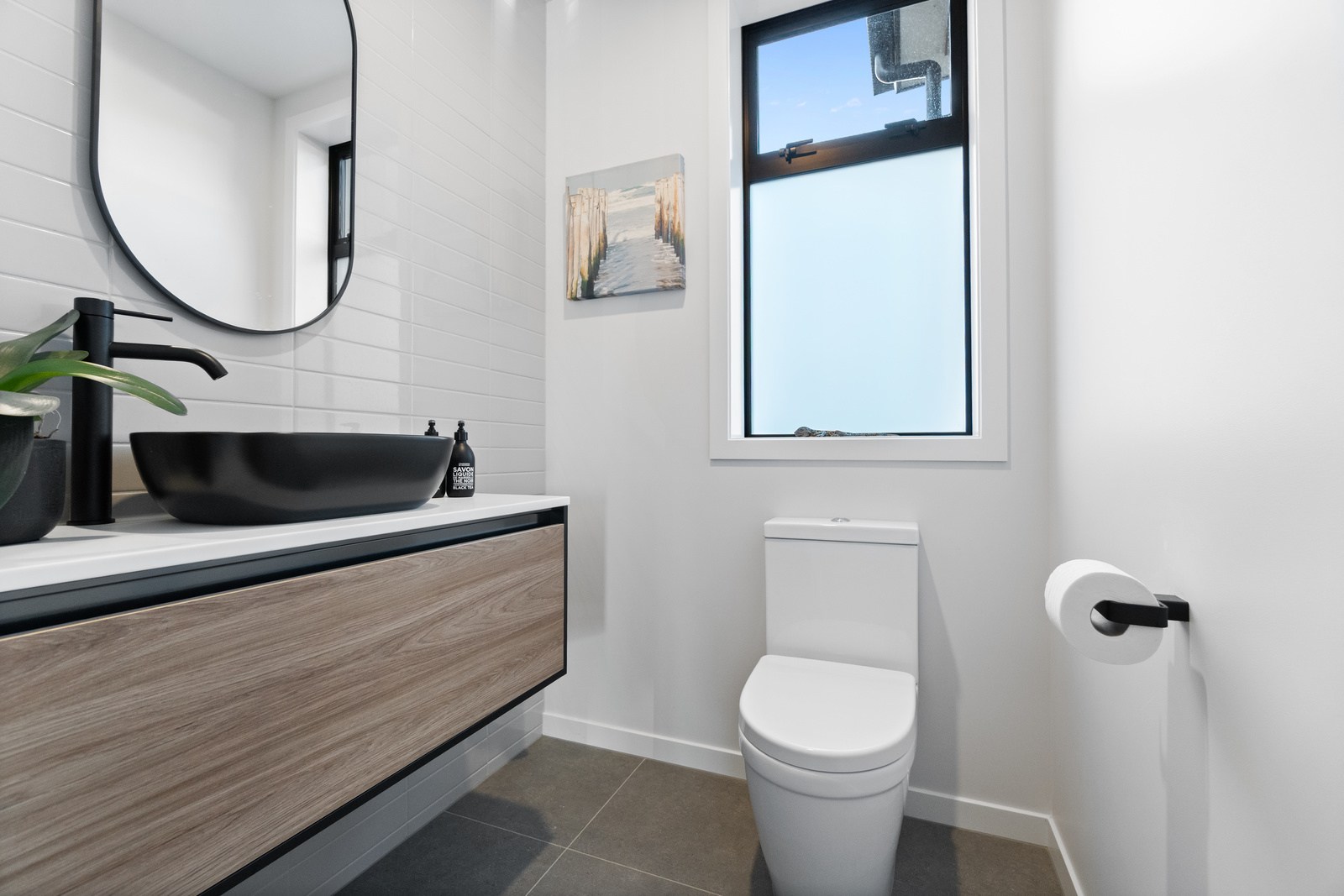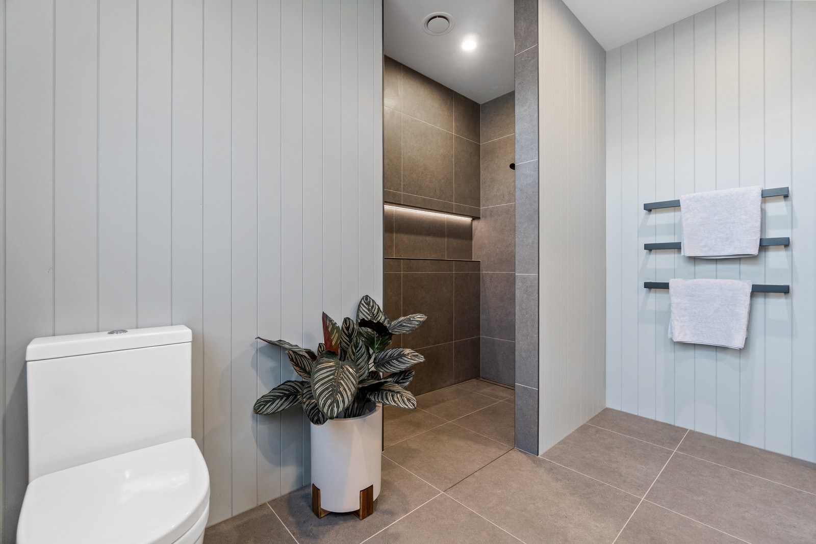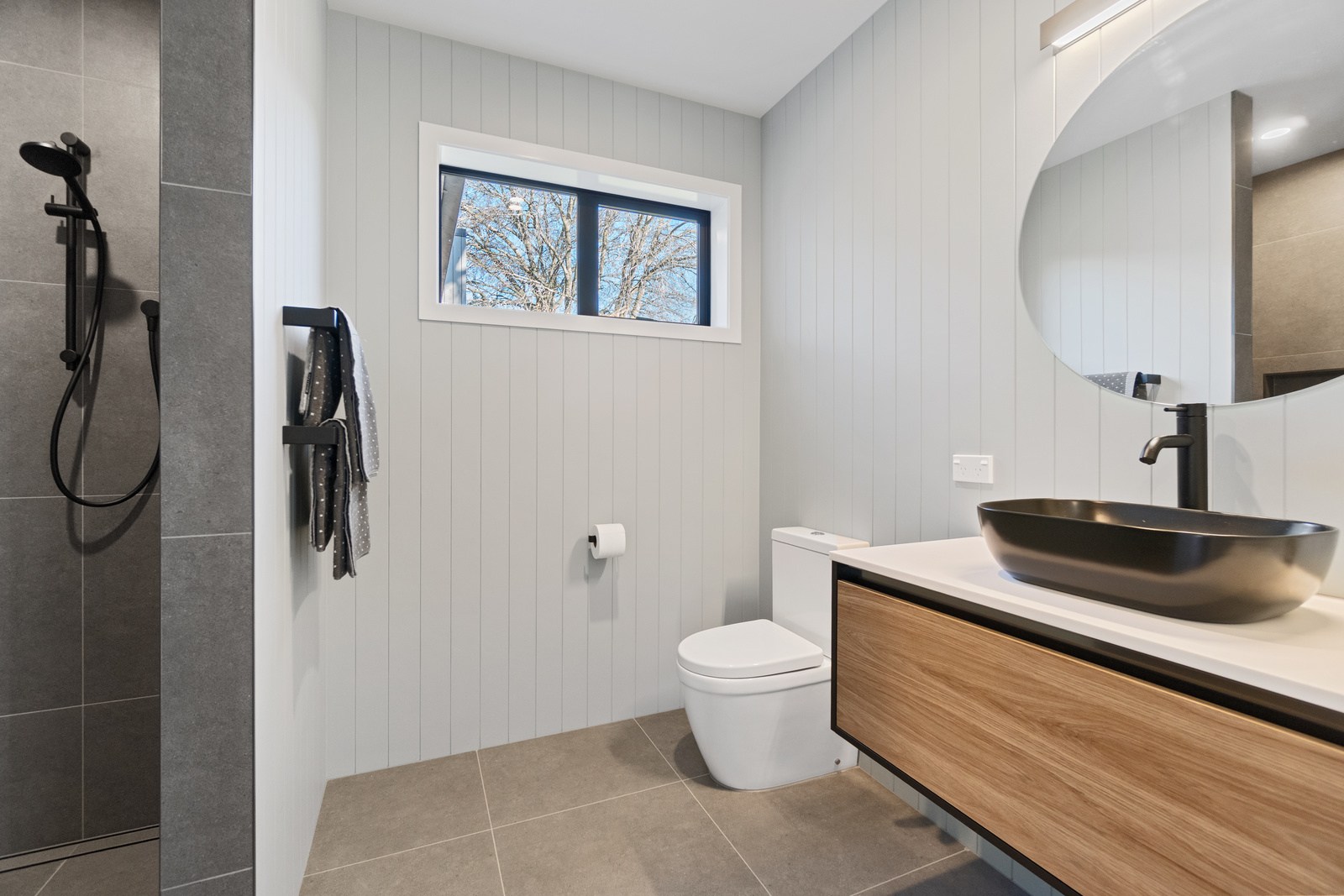 This residence, built for a newly retired couple, embraces stunning views of Mount Te Aroha and perfectly integrates comfort with contemporary elegance. The three-bedroom, three-bathroom home showcases modern architectural lines tailored for family life and built for entertaining. The exterior combines dark standing-seam metal cladding with vertical cedar, creating visual appeal without compromising simplicity. Subtle yet distinct craftsmanship is visible throughout, reflecting a commitment to quality finishes and practical detail.