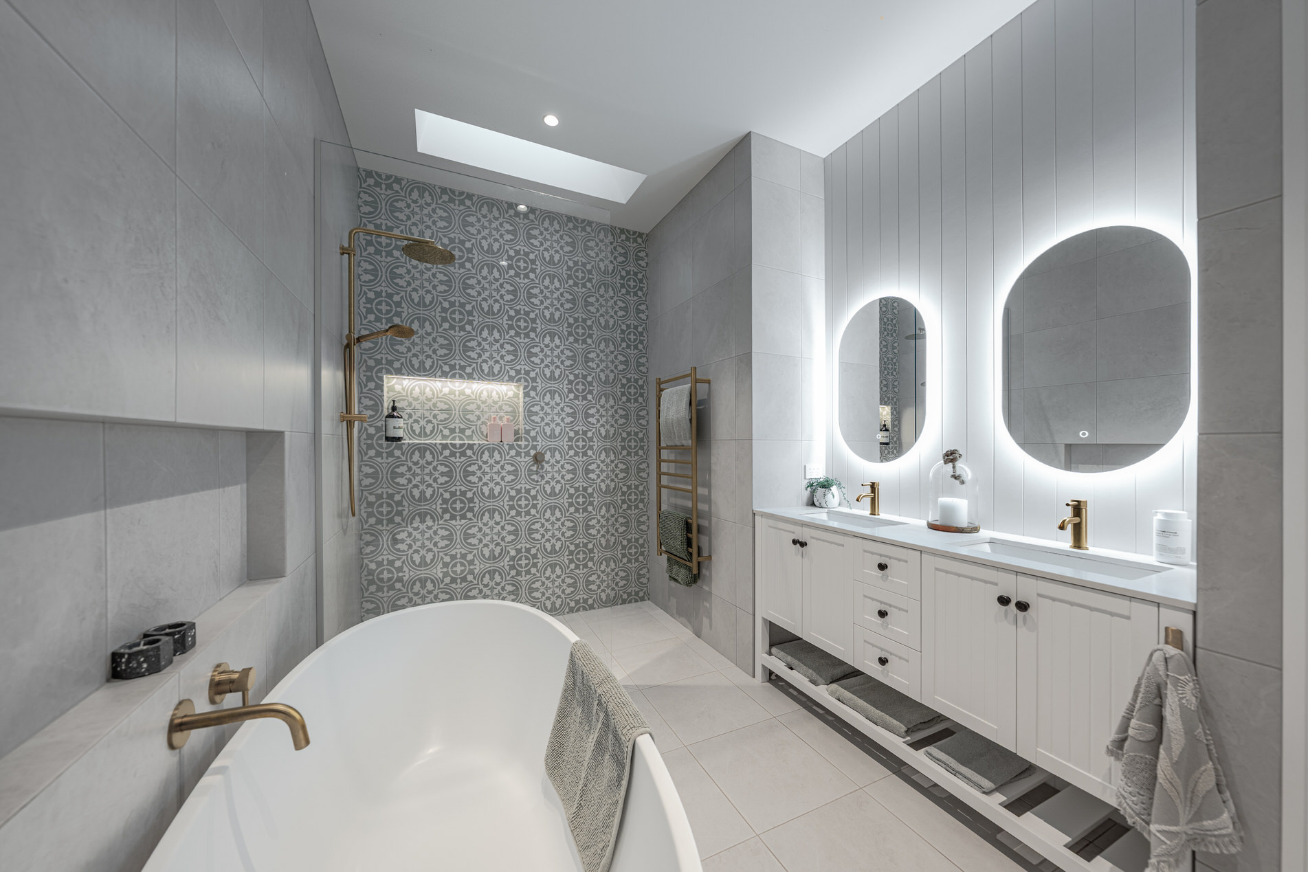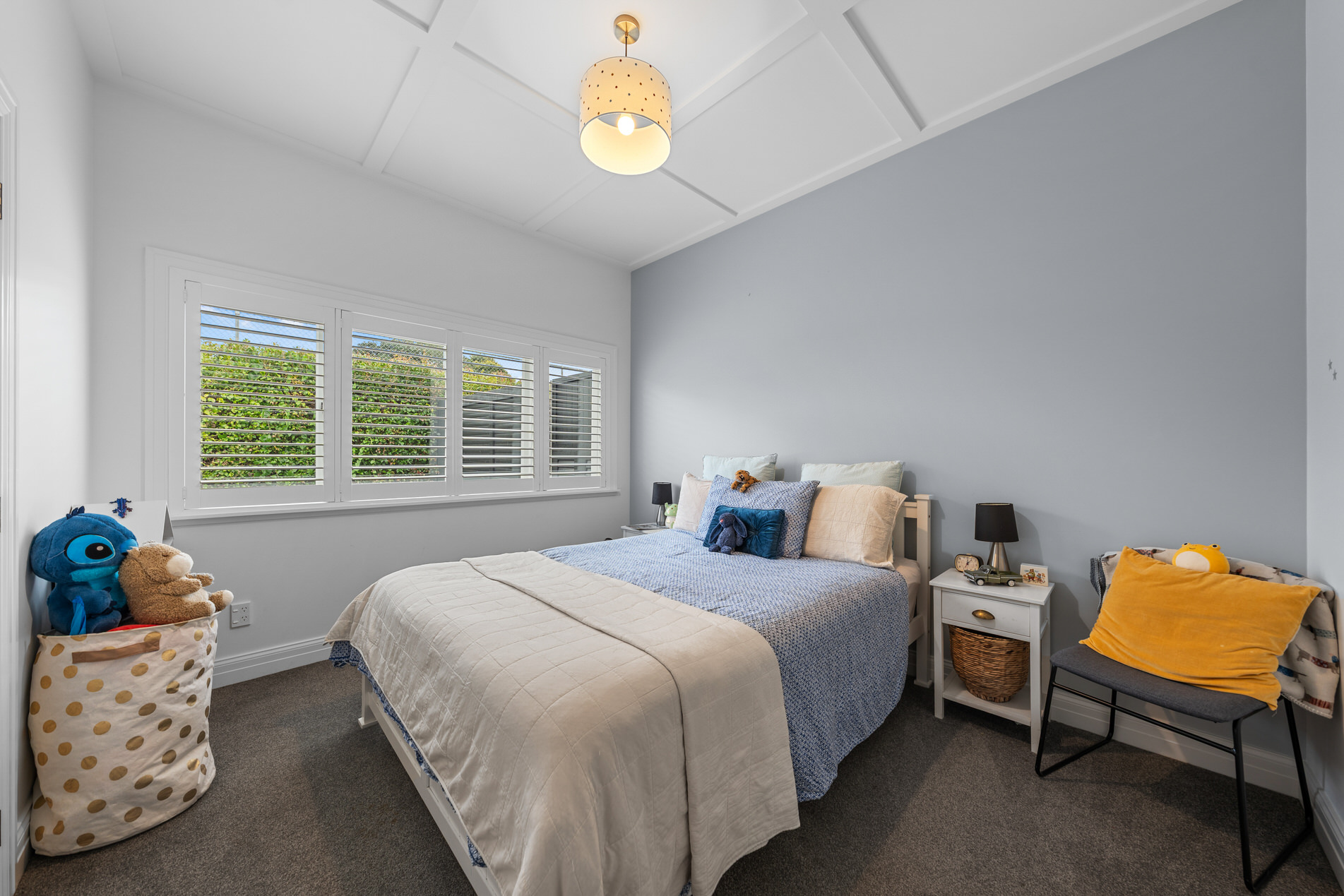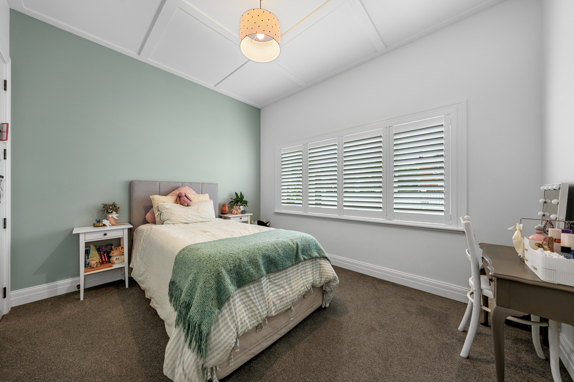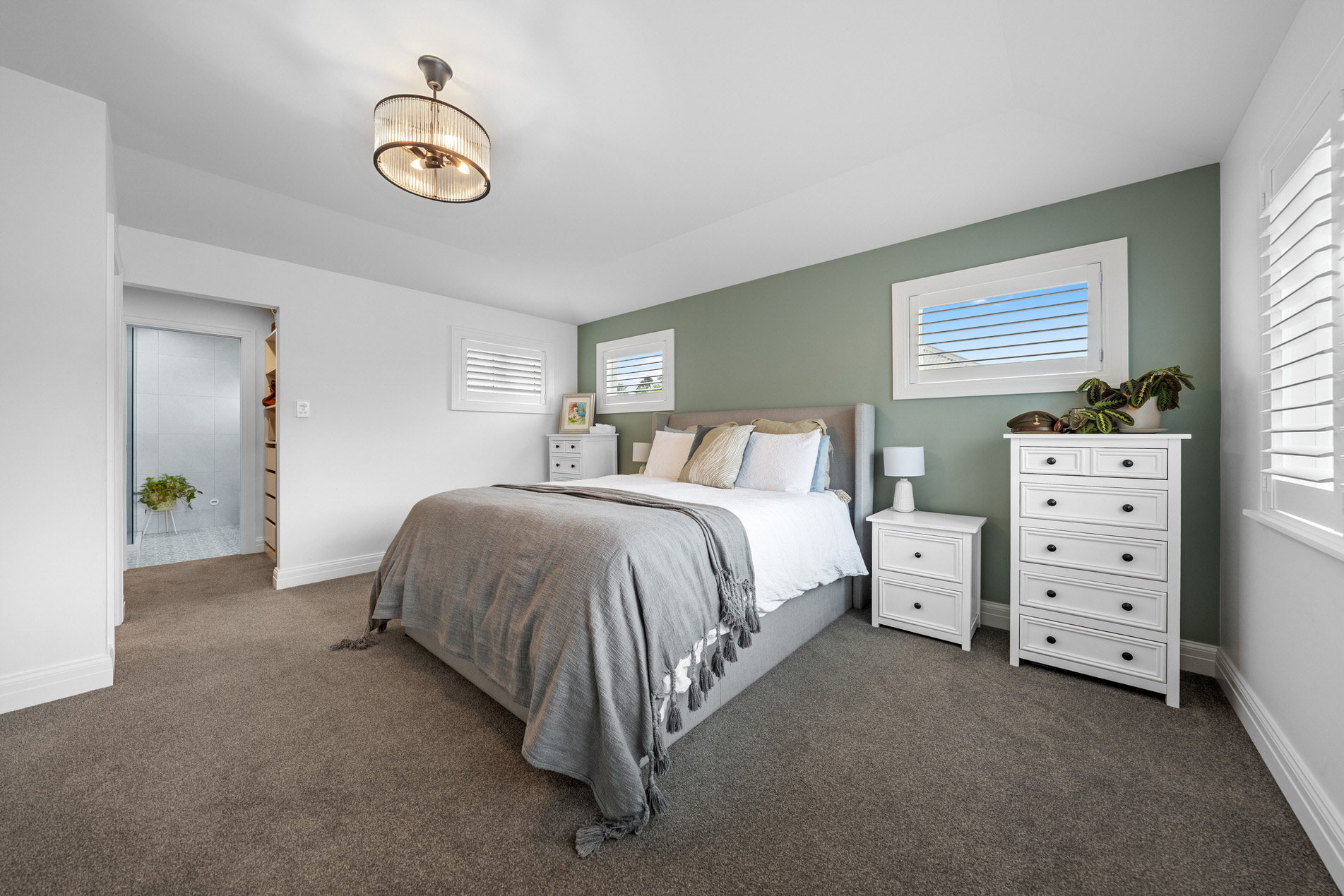A generous-sized kitchen takes the main role here with cabinetry painted in a soft blue, a striking 2.6-metre central island that doubles as a table to gather around, plus a butler’s pantry and laundry both off to the side. Keeping everyone connected in this open-plan space is the generous living area with couches focussed on the TV and fireplace. Skylights and bifold doors connect the area to the covered deck and second dining area, forming a true all-season entertaining zone. The overall result? A charming four-bedroom family home that really works — it’s practical, liveable and full of personality.