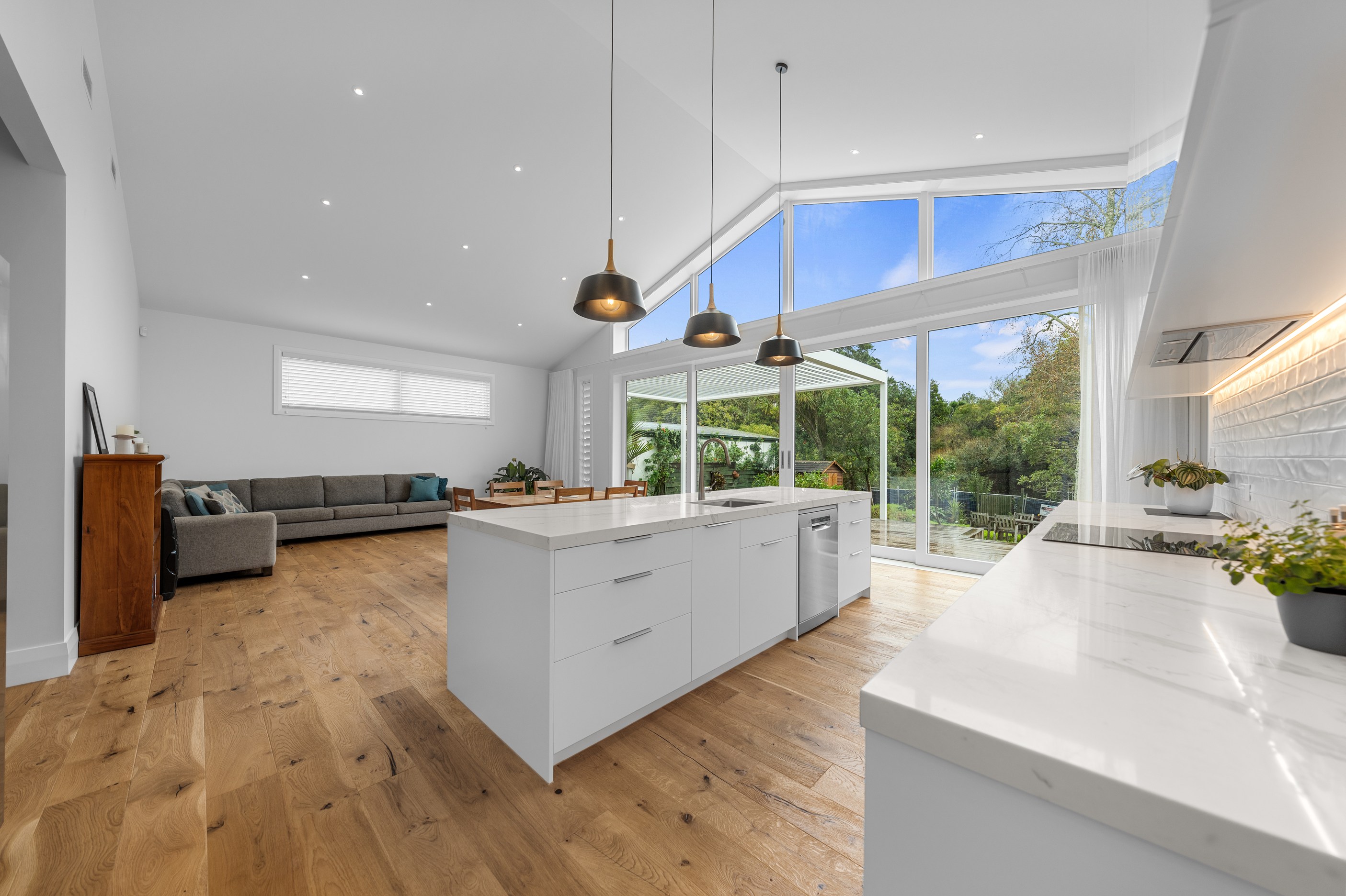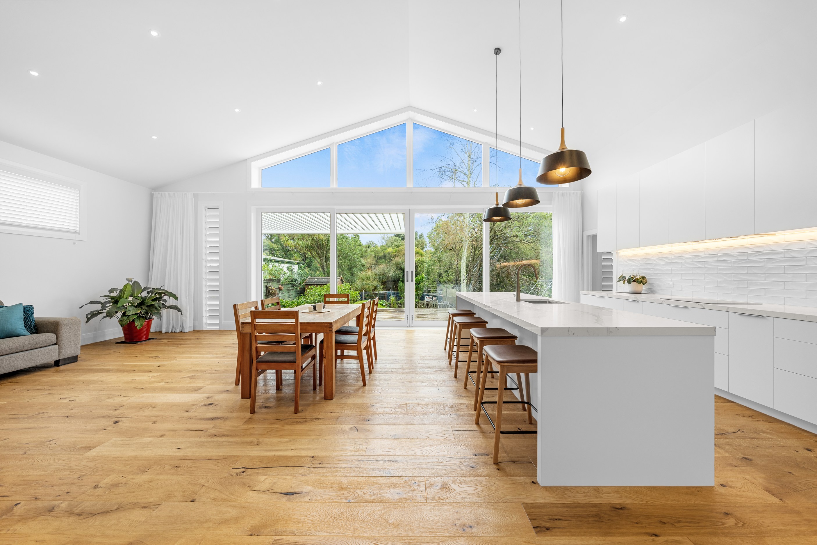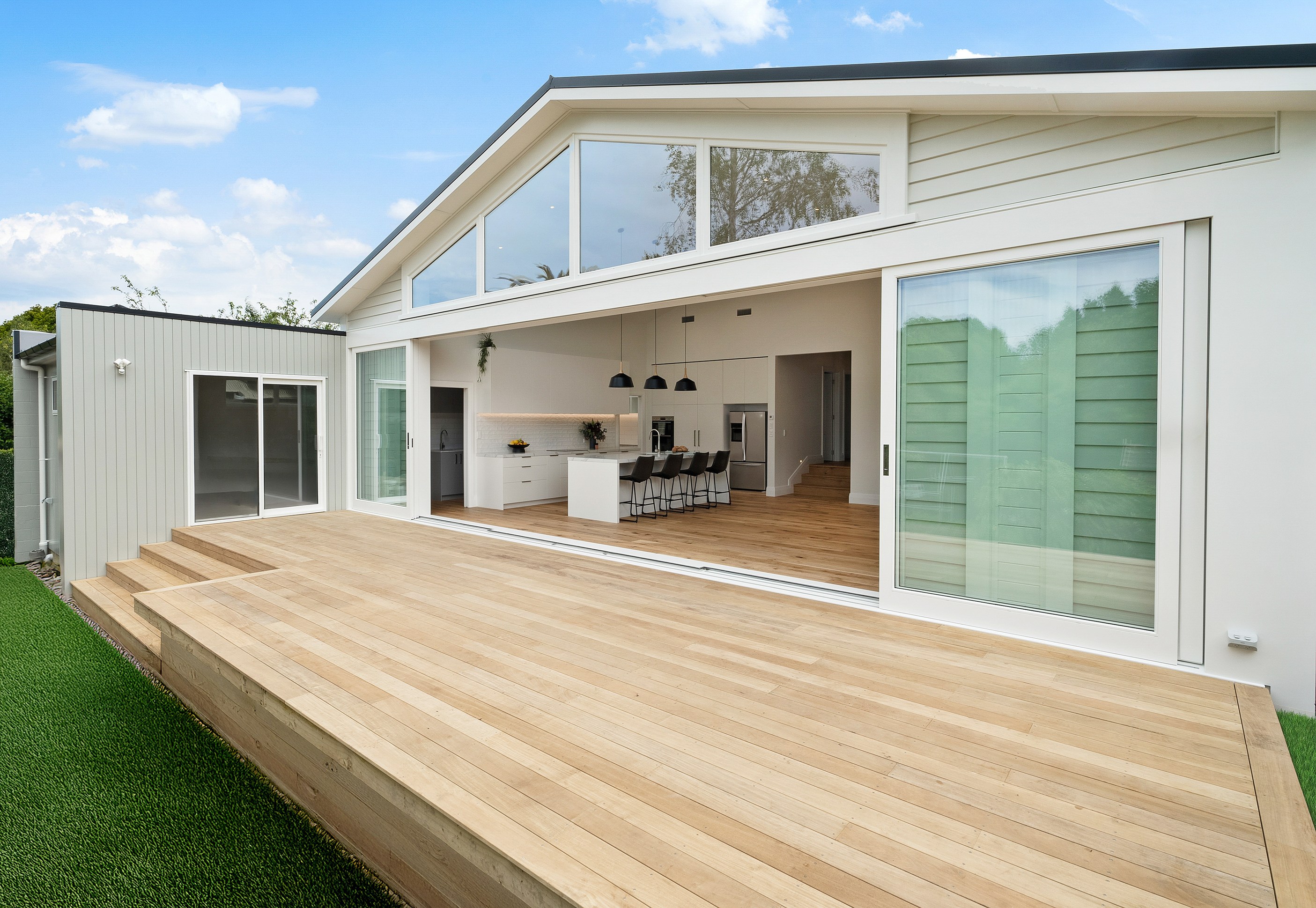 The new extension is where the transformation shines. A soaring cathedral-like ceiling, expansive windows and large timber sliders now flood the open-plan kitchen, dining and lounge with natural light, creating a seamless flow to the outdoors and an expansive deck. This living space is purposebuilt for large family gatherings, with clever storage solutions and a fresh sense of openness. The 240sqm home now offers four bedrooms, two bathrooms, two living areas and a practical laundry and butler’s pantry. Exterior updates blend harmoniously with the original structure. Considered design and expert execution have come together, breathing new life into a cherished home and delivering modern comfort, while honouring its past.
