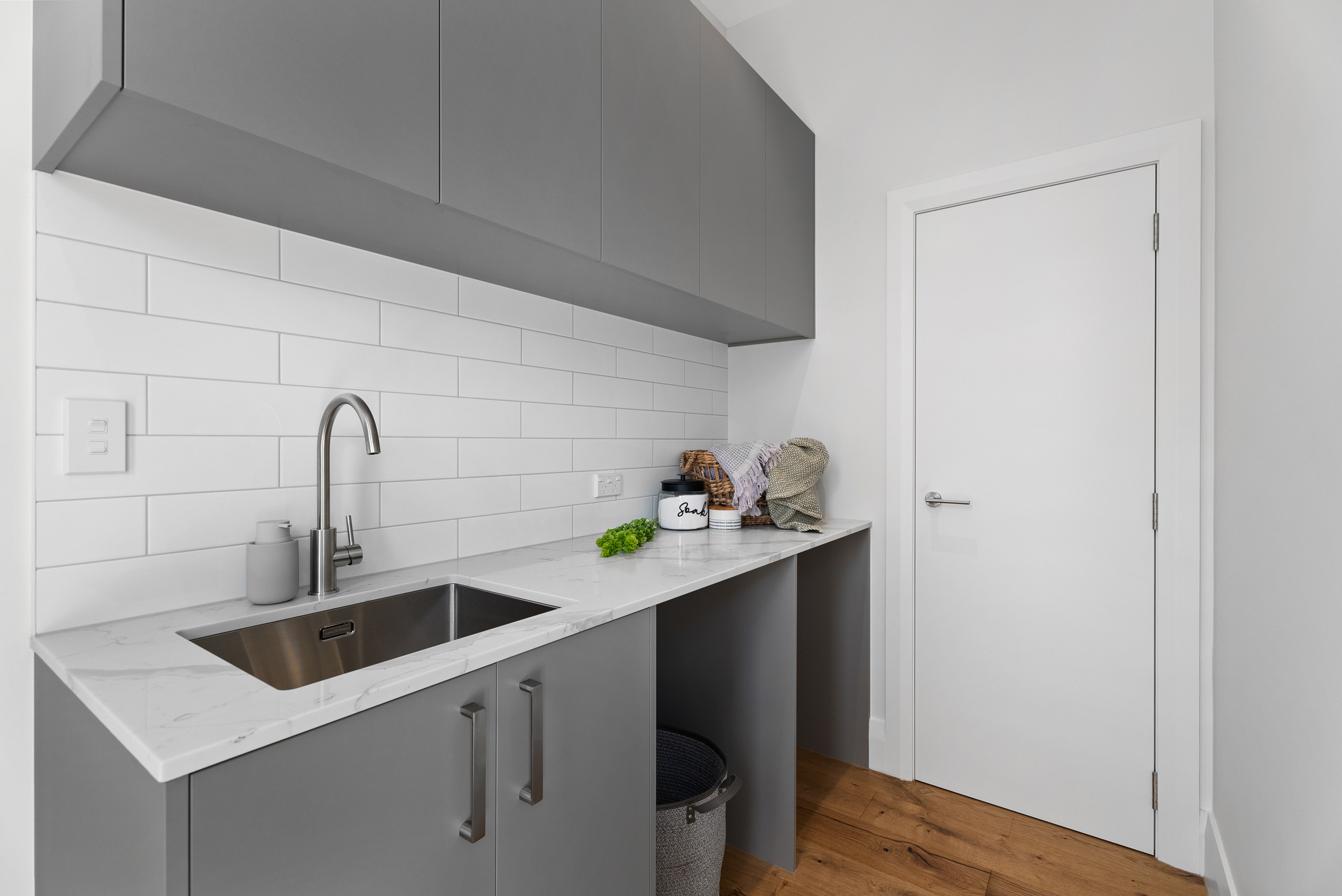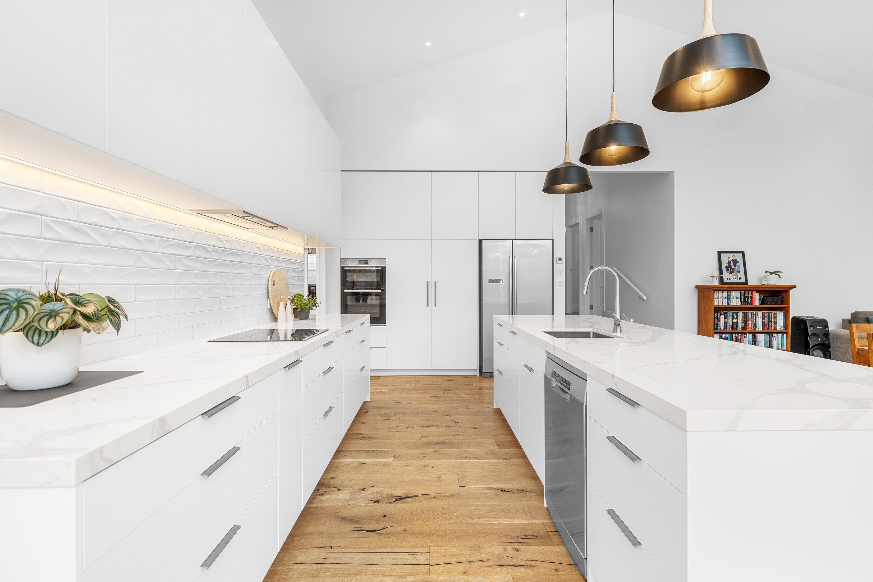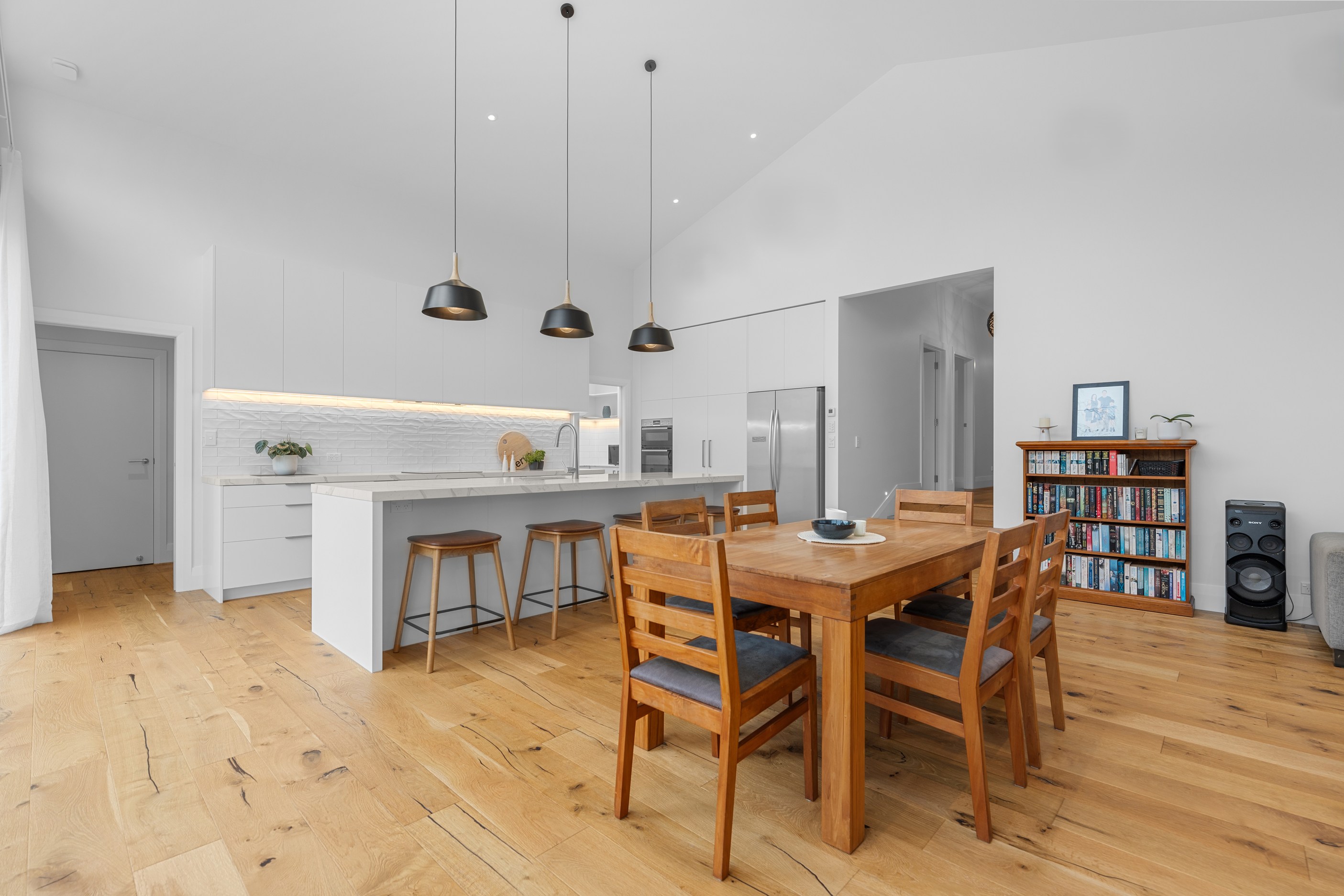 The new extension is where the transformation shines. A soaring cathedral-like ceiling, expansive windows and large timber sliders now flood the open-plan kitchen, dining and lounge with natural light, creating a seamless flow to the outdoors and an expansive deck. This living space is purposebuilt for large family gatherings, with clever storage solutions and a fresh sense of openness. The 240sqm home now offers four bedrooms, two bathrooms, two living areas and a practical laundry and butler’s pantry. Exterior updates blend harmoniously with the original structure. Considered design and expert execution have come together, breathing new life into a cherished home and delivering modern comfort, while honouring its past.