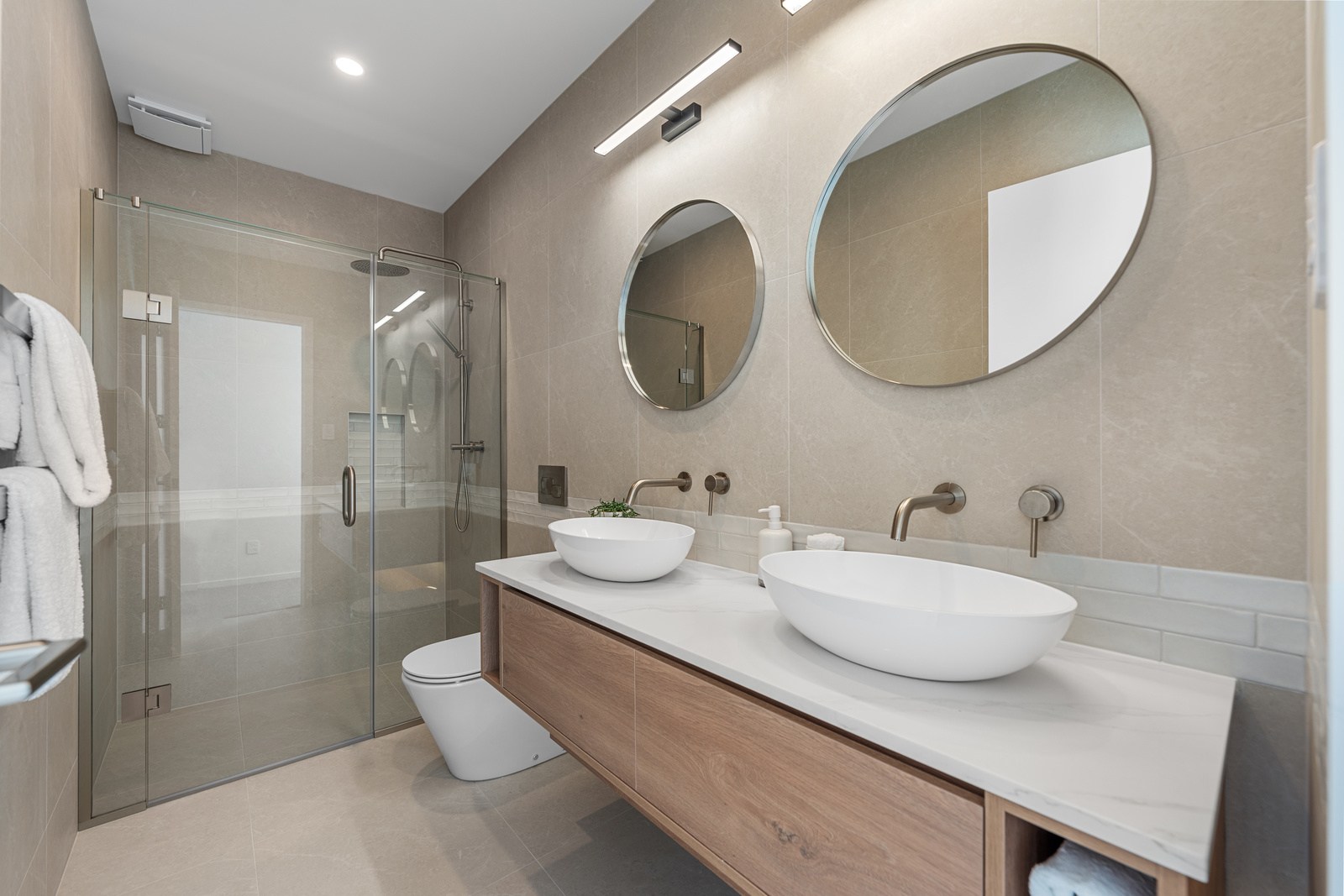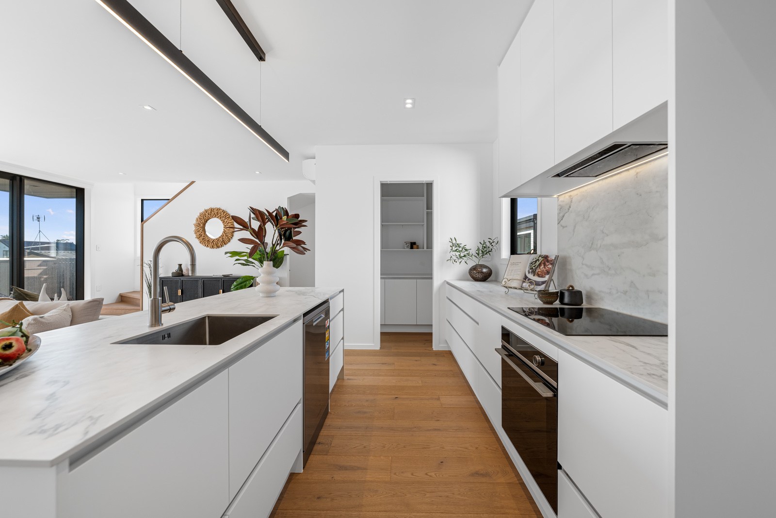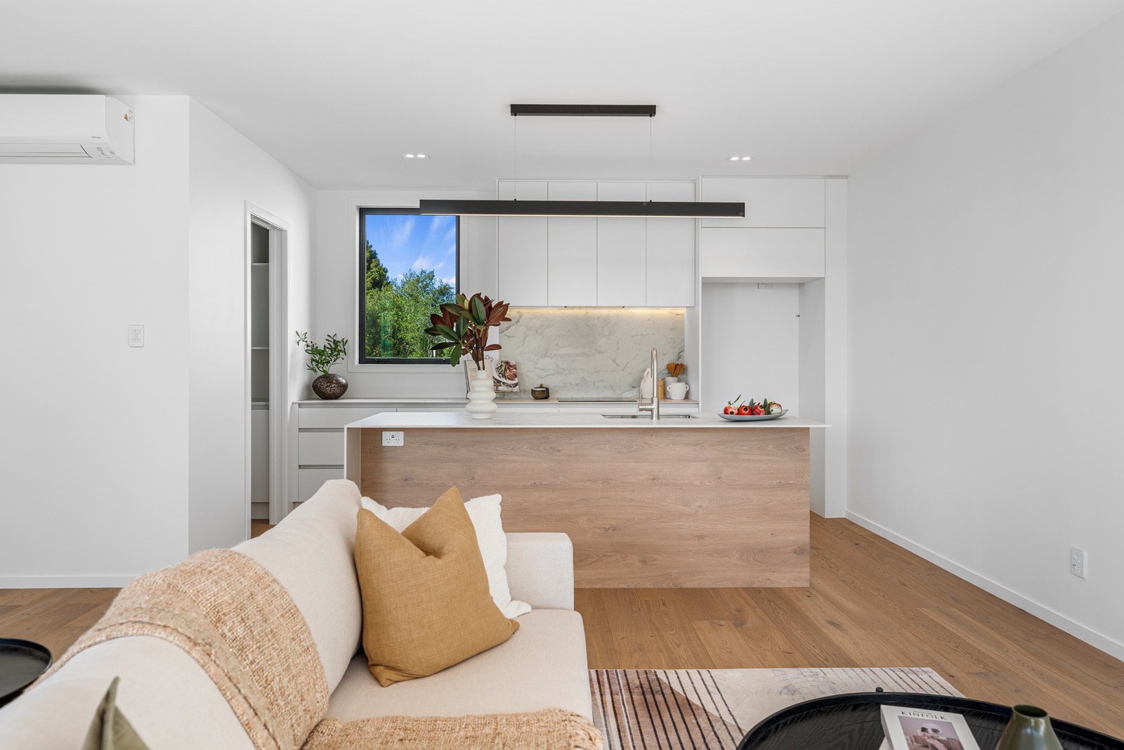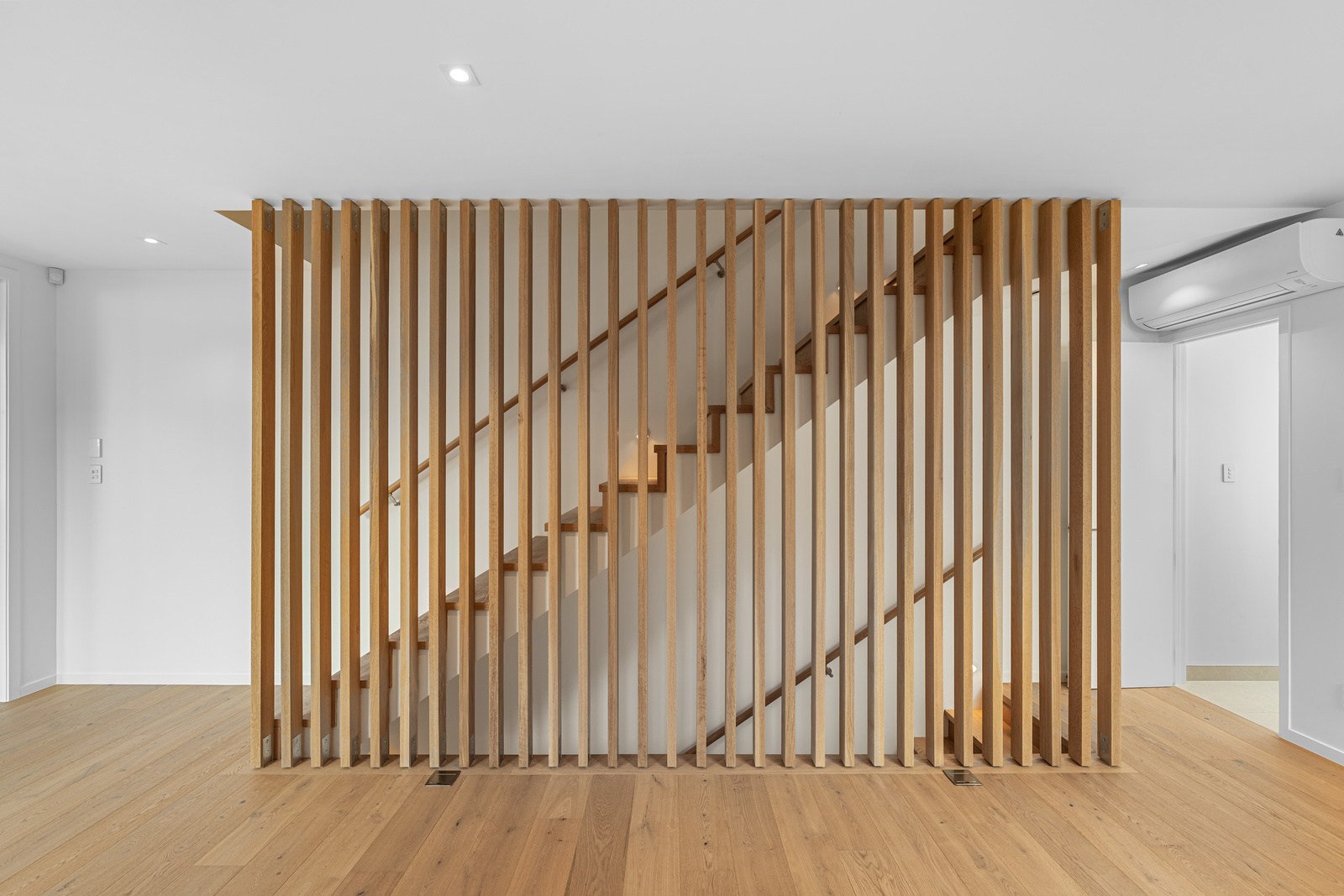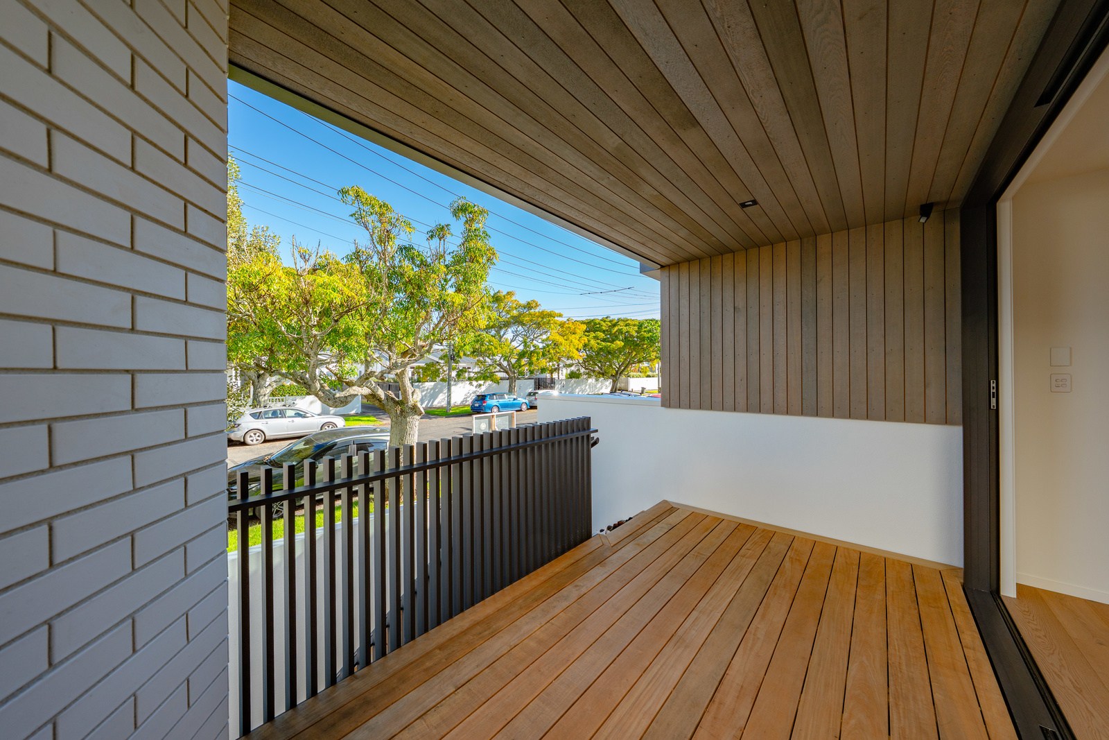 Delivering five high-end homes on a compact urban site, this development exemplifies how smart design and precision construction can achieve elegant, future-ready living. The subdivision introduces three distinct typologies, unified by a bold material palette of pale brick, vertical cedar and aluminium louvres. The result is a crisp, modern aesthetic that balances architectural clarity with a warm, textural finish. A streamlined roofline, enhanced by an improved capping solution and concealed guttering beneath the deck balustrade, maintains the integrity of the building’s silhouette.
