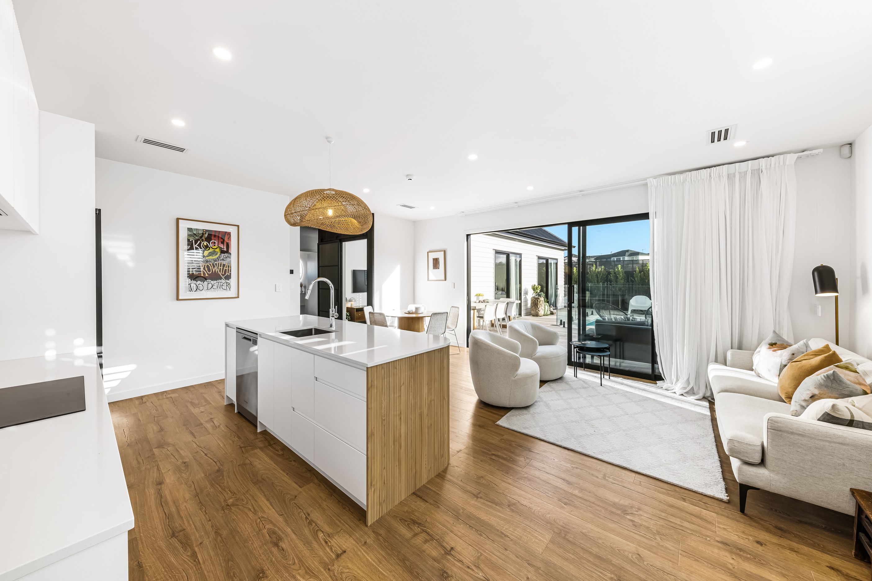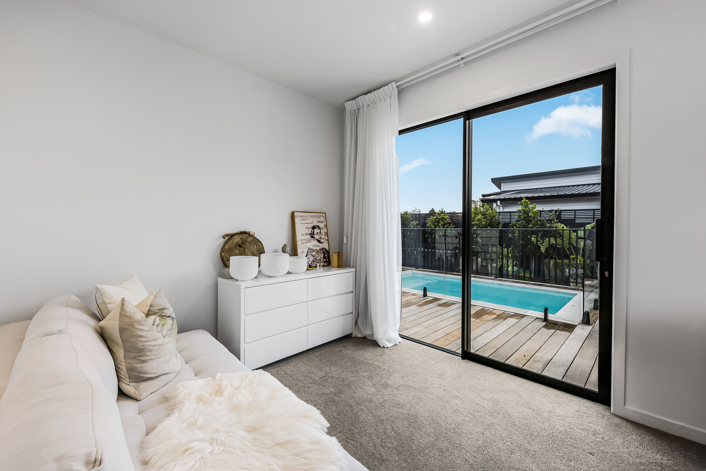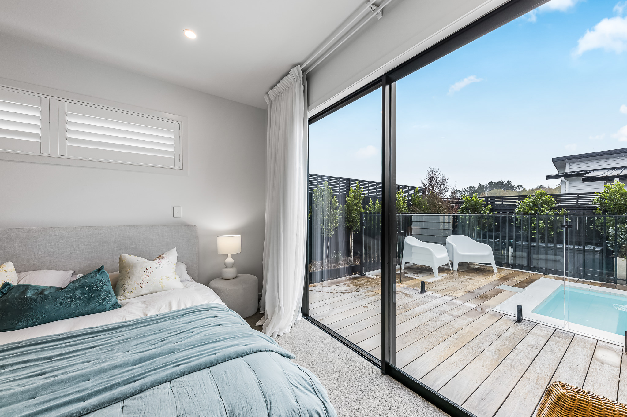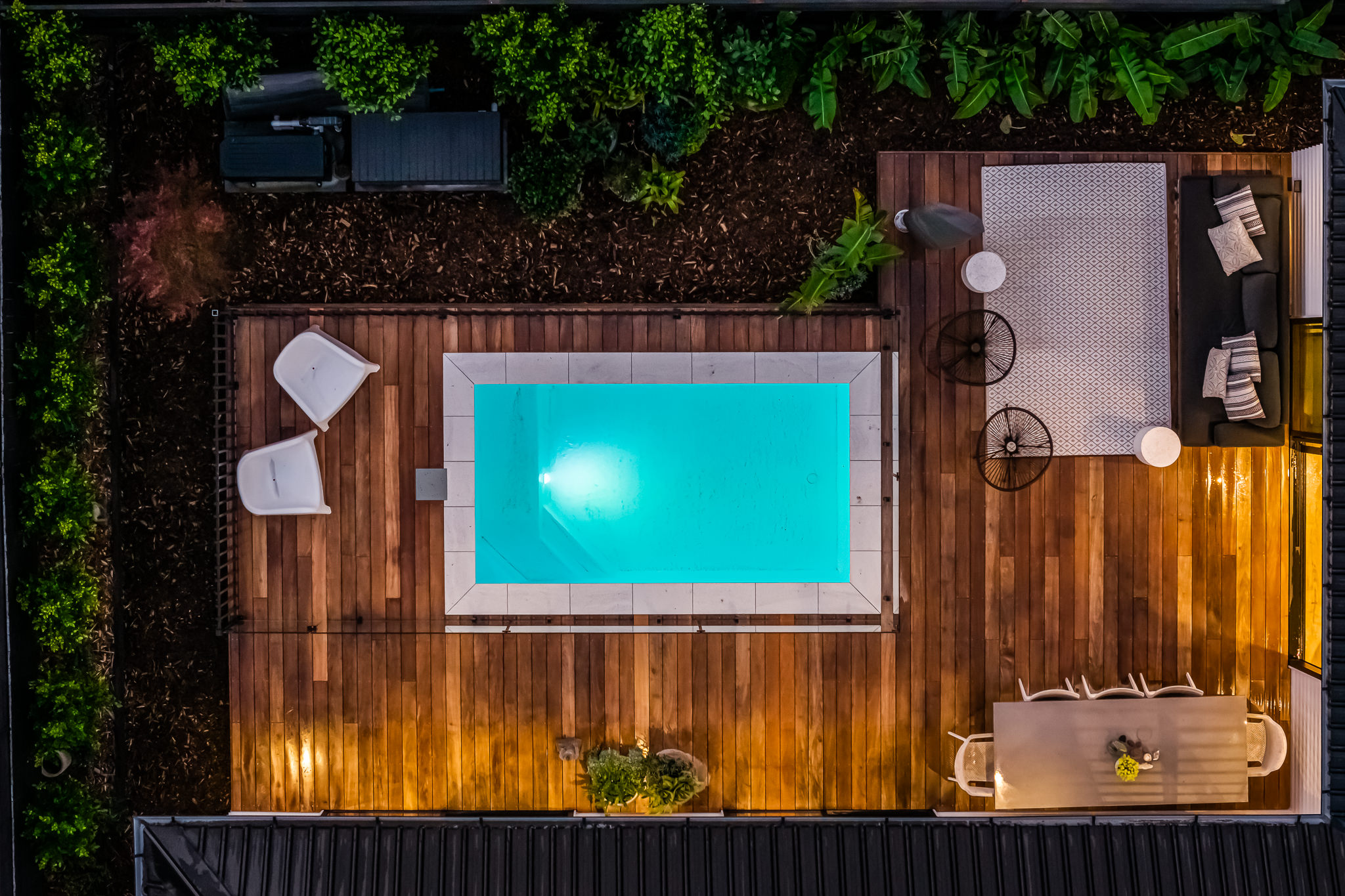 From the street, this contemporary four-bedroom home makes an immediate statement. A dramatic high gable, softened by the warmth of contrasting Abodo timber, creates a striking visual statement while integrating seamlessly into the streetscape. Yet it’s what lies beyond the façade that truly captures attention. The design embraces the north-facing site, wrapping around a private plunge pool that becomes the focal point of outdoor living. Large sliders from the main living area and two bedrooms open onto the expansive deck, creating an easy flow for sun-soaked lounging and effortless entertaining.