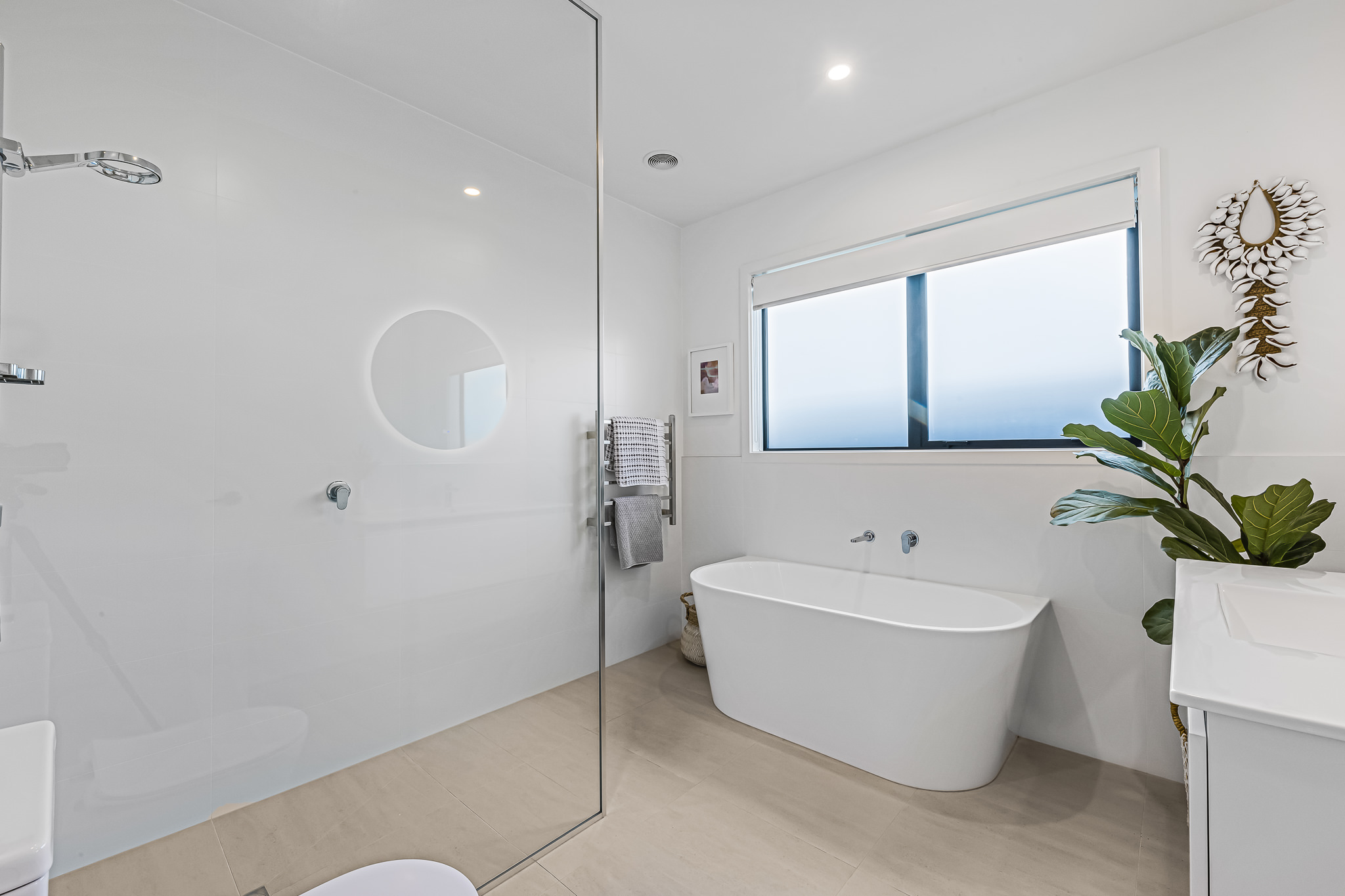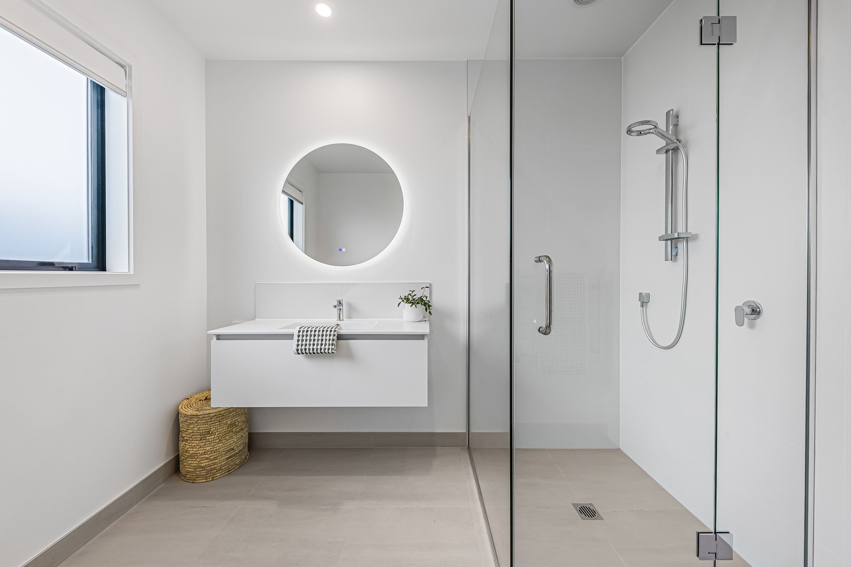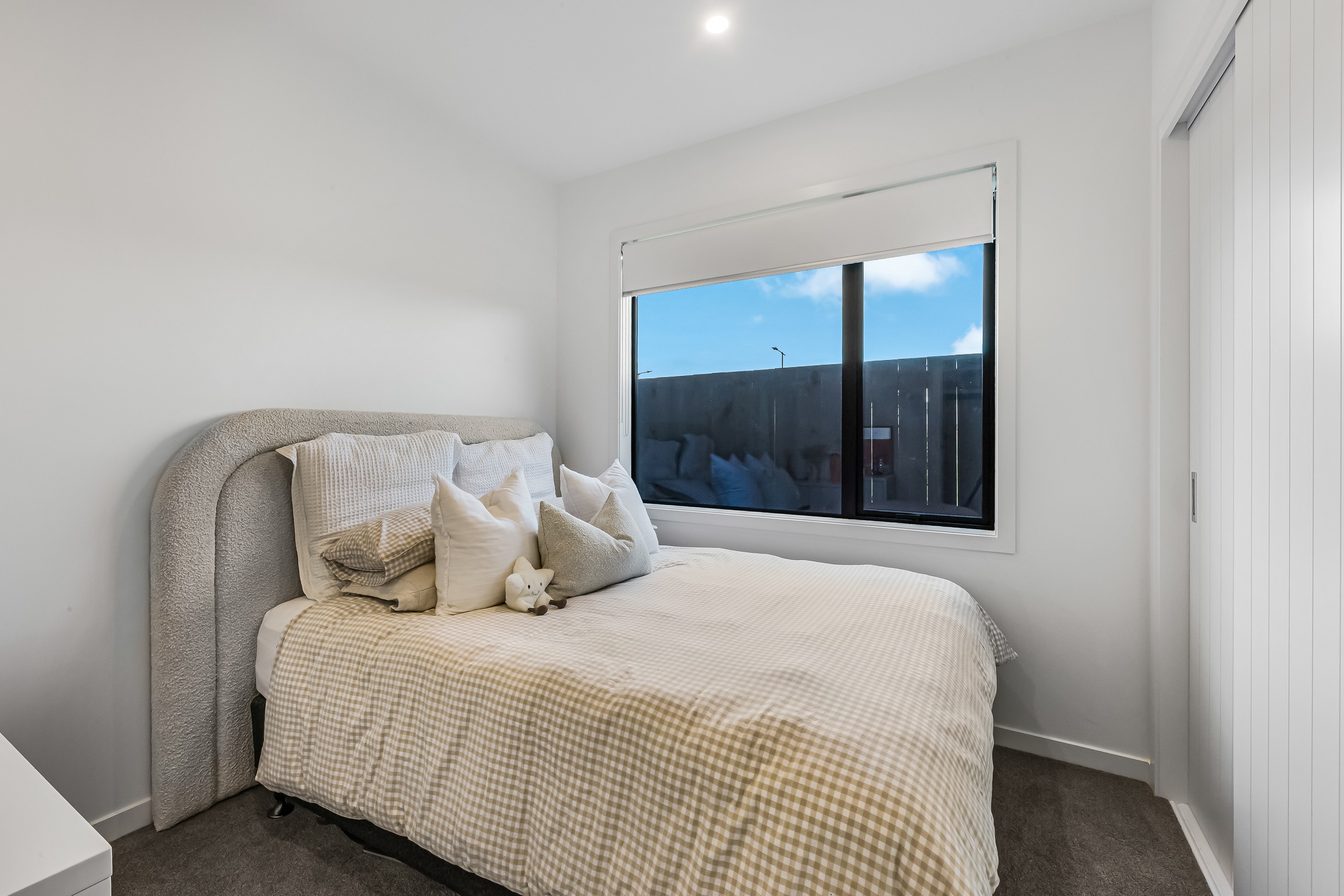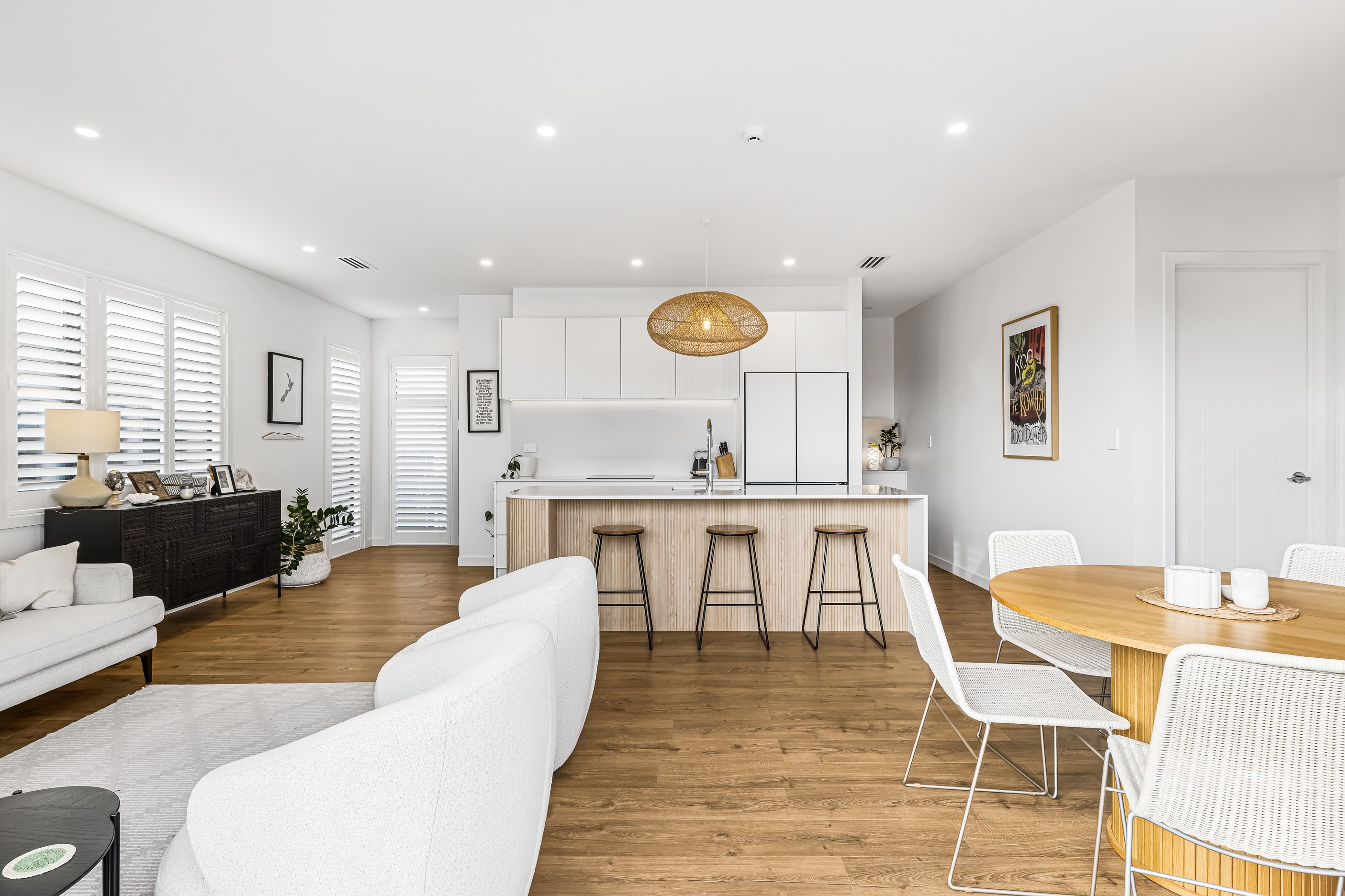 Step into the heart of the home, an inviting open-plan kitchen, dining and living area. The curved end of the kitchen island makes a statement as does a dramatic glass-and-steel barn door, which leads to a cosy media room, offering a quiet counterpoint to the home’s living spaces. With four bedrooms, two bathrooms and dual living areas in a compact 176sqm footprint, the home balances spaciousness with smart, efficient design. Every element feels tailored — from the calming boho-Scandinavian palette to the practical flow of rooms designed for easy, everyday living. This build wasn’t without its challenges — its success hinged on precision craftsmanship to deliver the bespoke architectural features the design demanded. The result is a home that is both refined and welcoming.