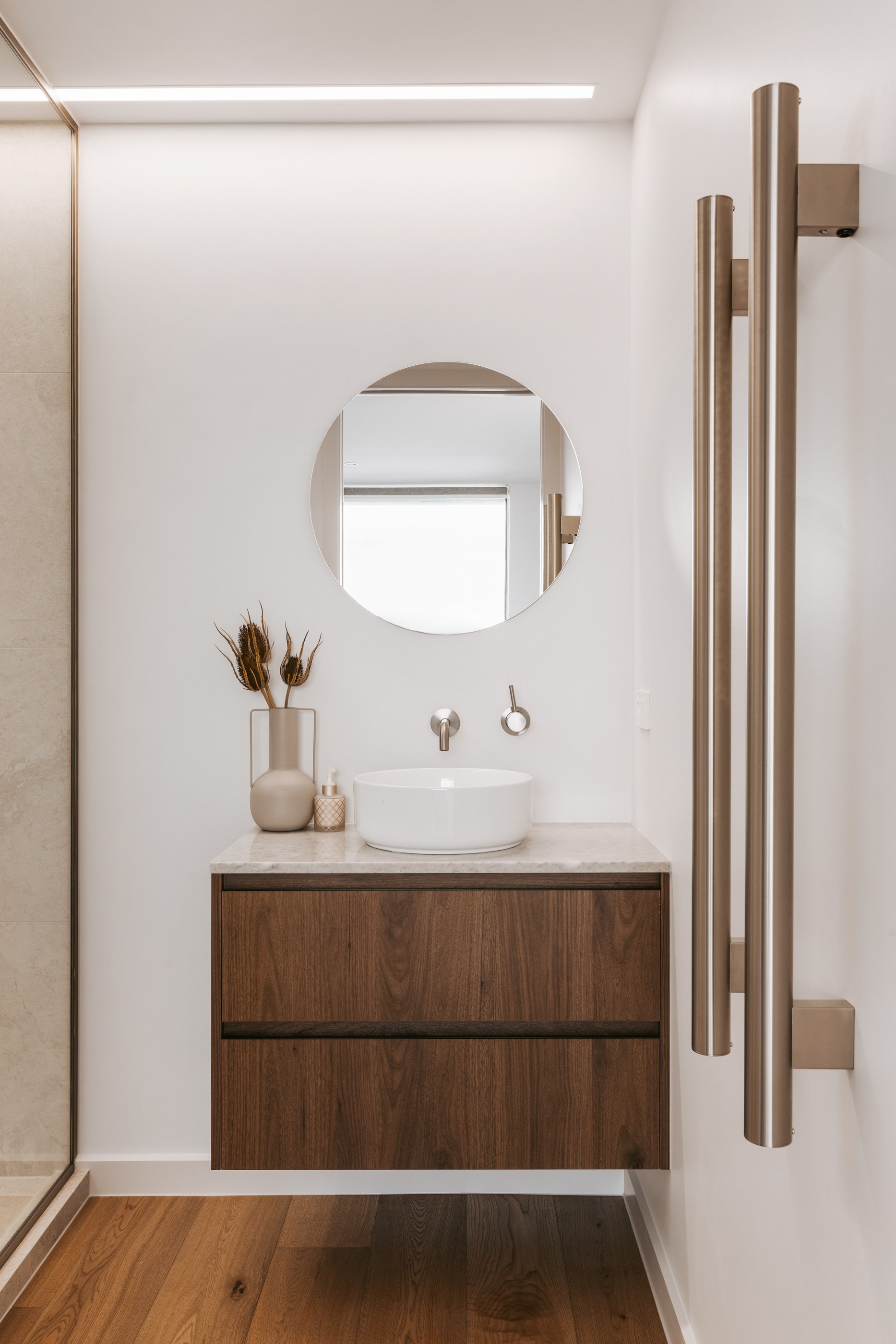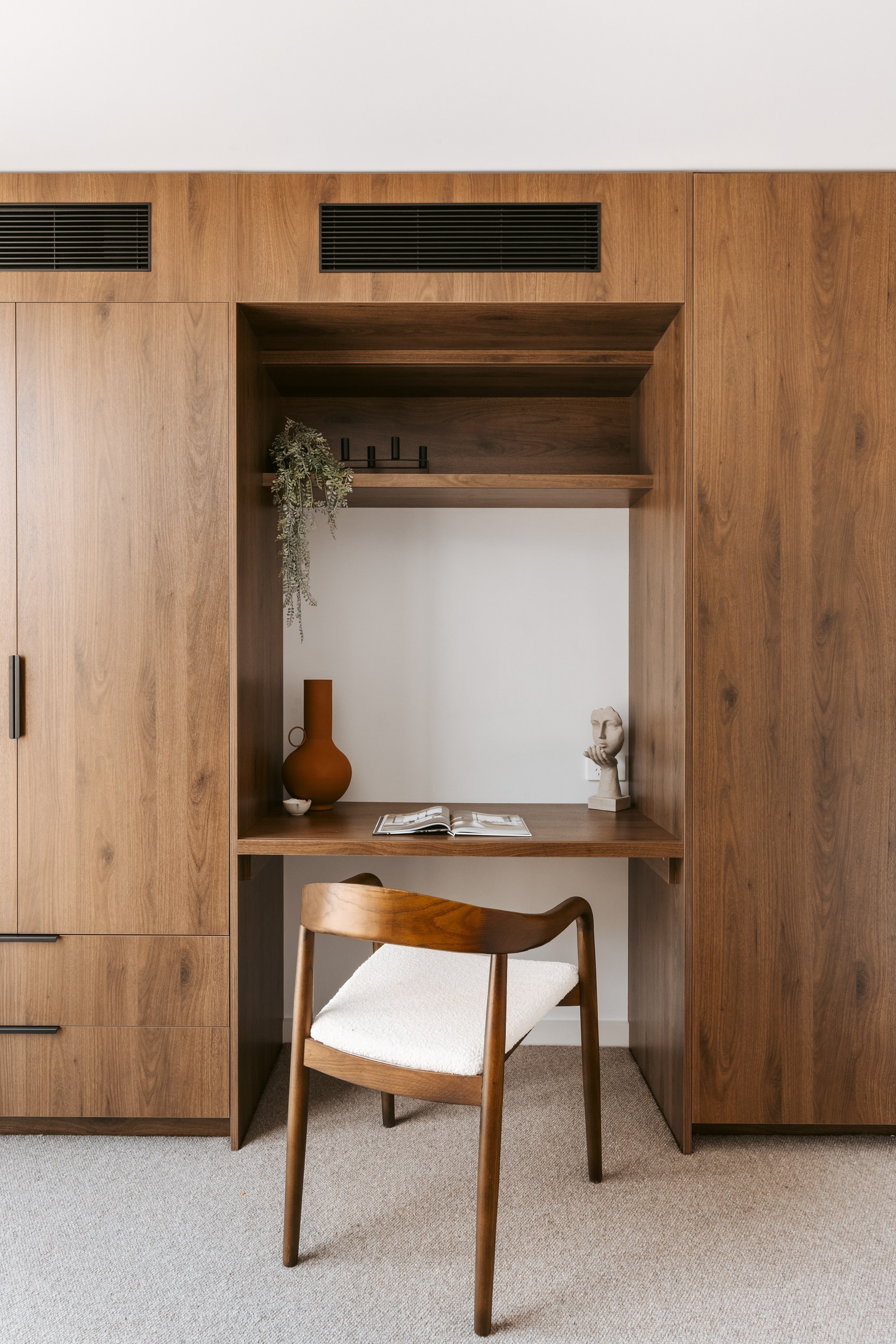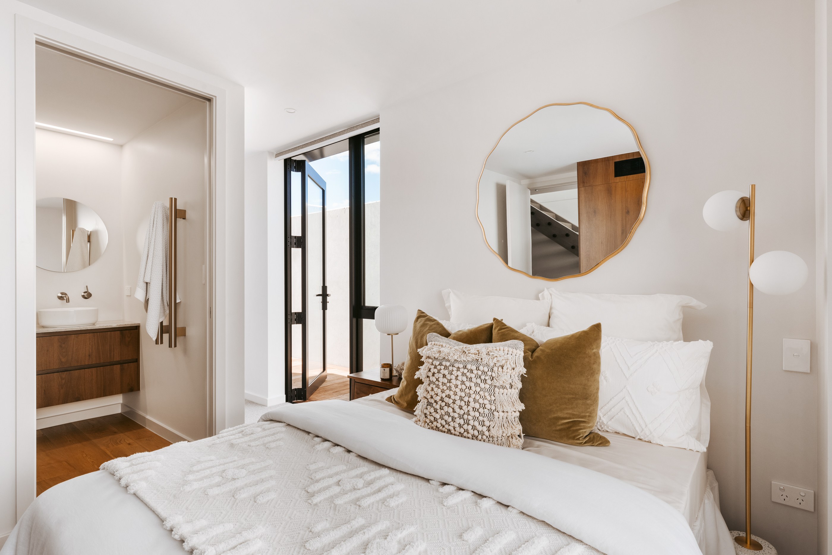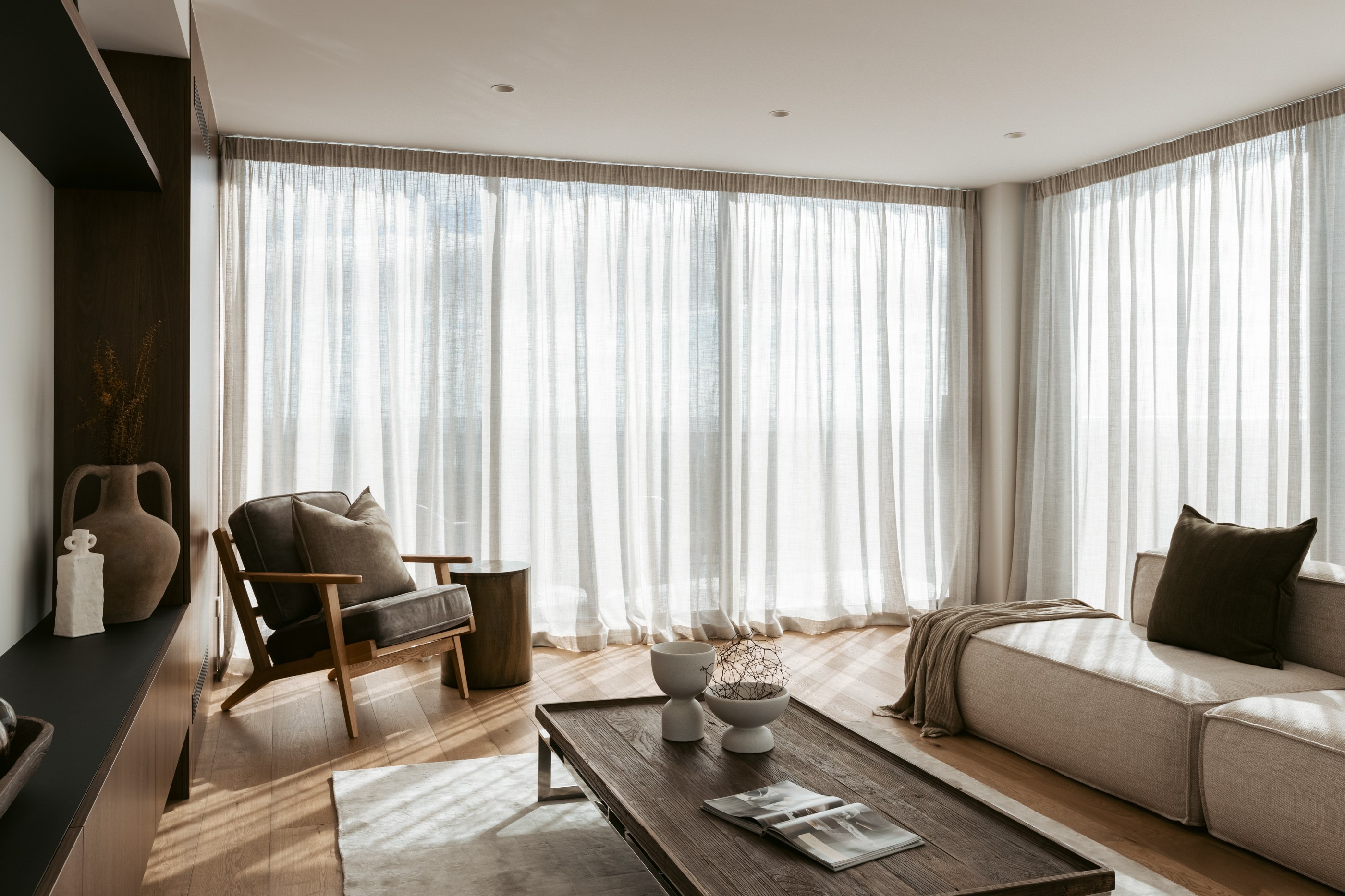 Take the timber stairs — sunlit thanks to swathes of glazing — and you’ll come to the open-plan living and dining spaces with elegant built-in cabinets. These flow from kitchens where minimalism, bold geometry, solid-oak island extensions and sleek lacquered cabinets ramp up the opulence. Naturally, this stylish space extends to sea-facing balconies. At the other end of the floor are the main bedrooms that feature dressing rooms and ensuites. The second flight of stairs takes you to the roof terraces with sun, sea views and salt air. Dark metal cladding is coast-hardy, low maintenance and low key. There’s so much to commend in this build that speaks an elegant architectural language and showcases next-level craftsmanship.