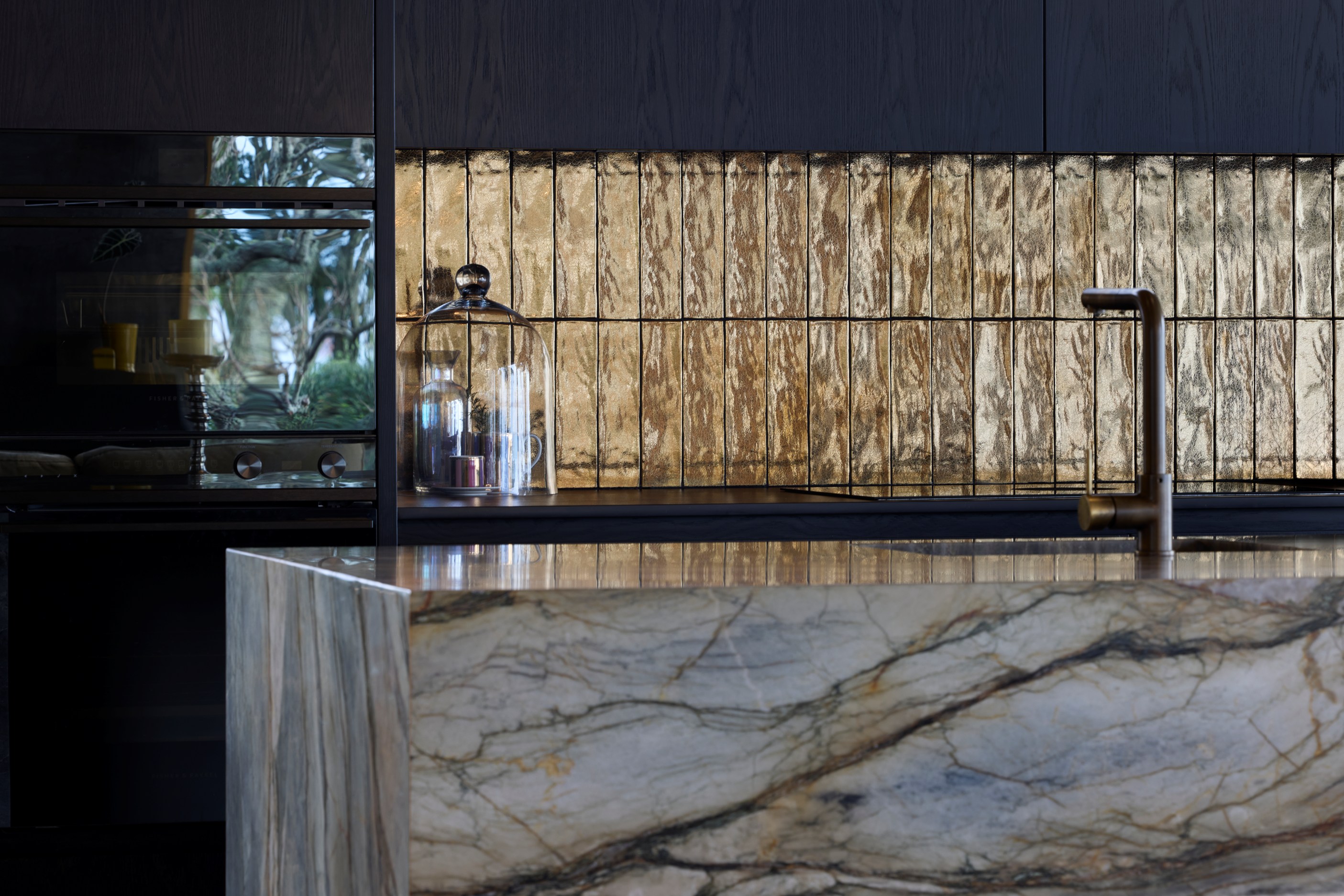 Dreamy living spaces, which are studies in the use of organic materials and shades, appear to glide toward the covered outdoor relaxing and entertaining zone, which faces the water. The moody tones are highlighted by down-lighting and skylights, reinforced with luxury touches such as golden textured splashback tiles and marble in the kitchen. Bedrooms continue the theme of natural opulence .The main suite has a timber-lined ensuite with glass freestanding bath, custom dressing room and access to a sheltered deck. One of the other bedrooms has in-built bunk beds. Hydroponic underfloor heating, a gas fire and exterior woodburner keeps residents warm in winter and automation controls lighting. Nothing has been left to chance here.