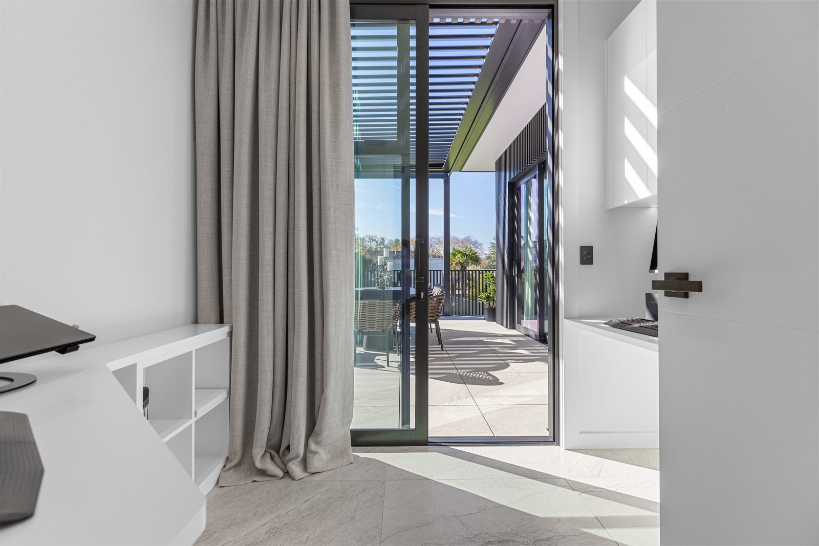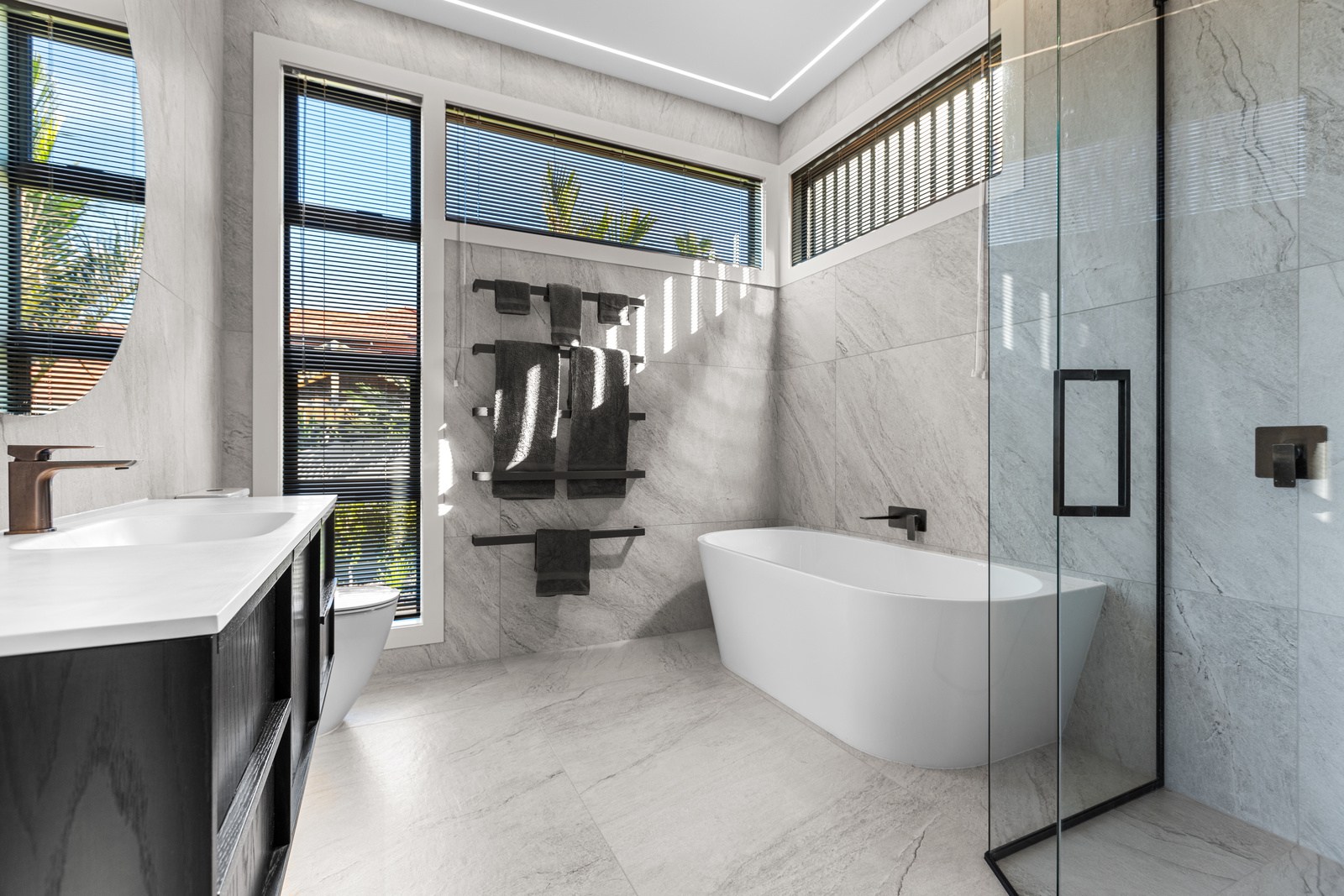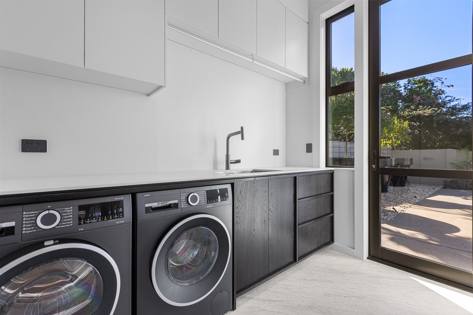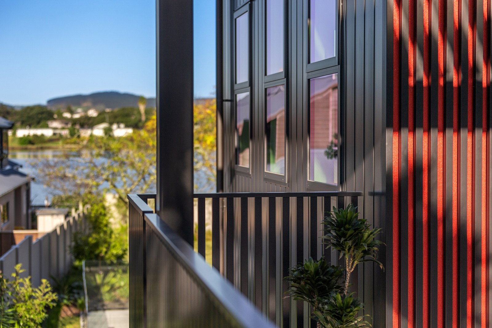 A bold architectural vision has transformed this home into a statement of refined coastal living. The original structure has been expertly reimagined by removing two upper storeys and retaining the solid plastered block base, laying the foundation for a breathtaking new form. Inspired by the owners’ love of the sea, the house now features a striking five-metre-high clerestory pop-up roof with aluminium joinery that captures panoramic harbour views and floods the interior with natural light. Aluminium vertical weatherboards and painted plastered feature walls with screen detailing elevate the contemporary façade.