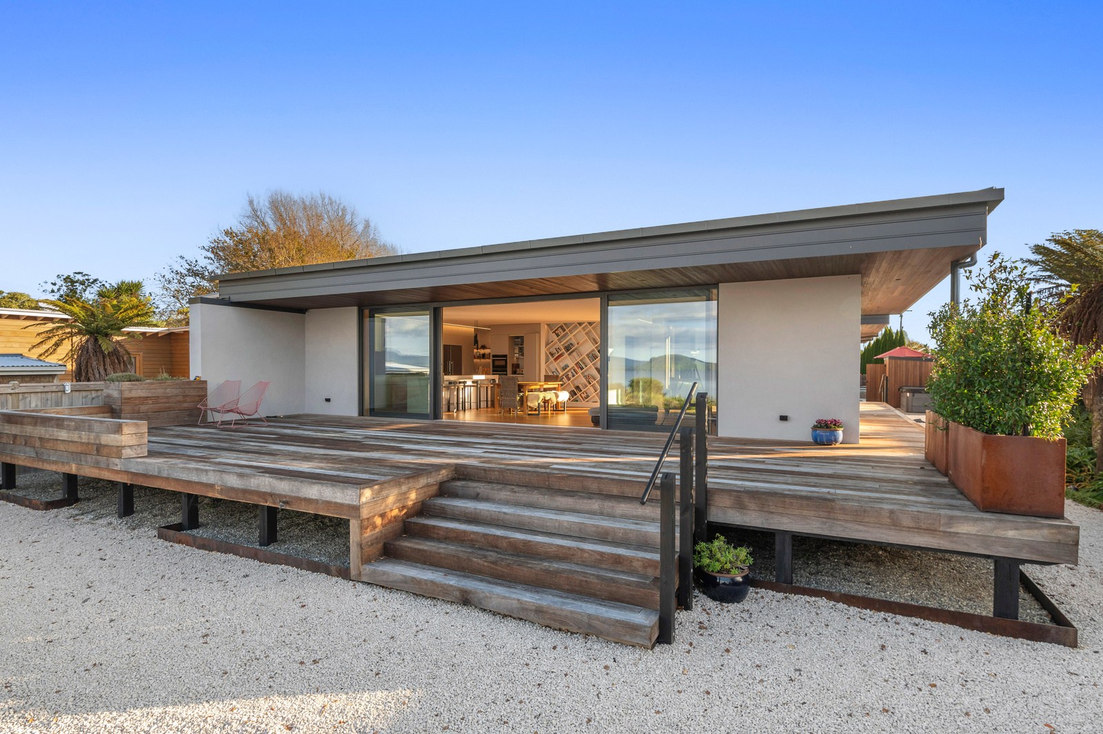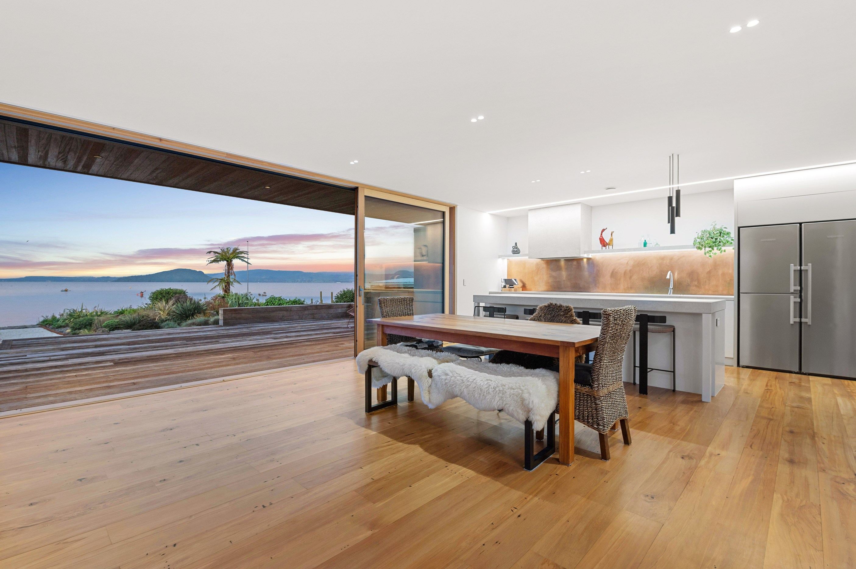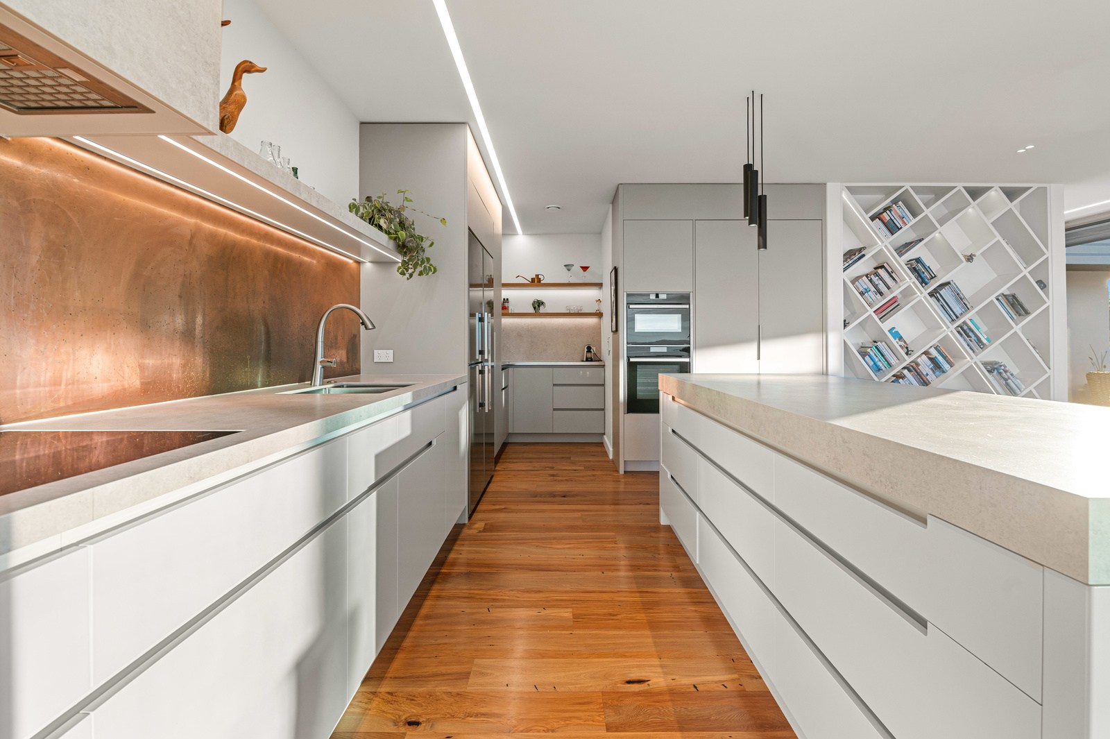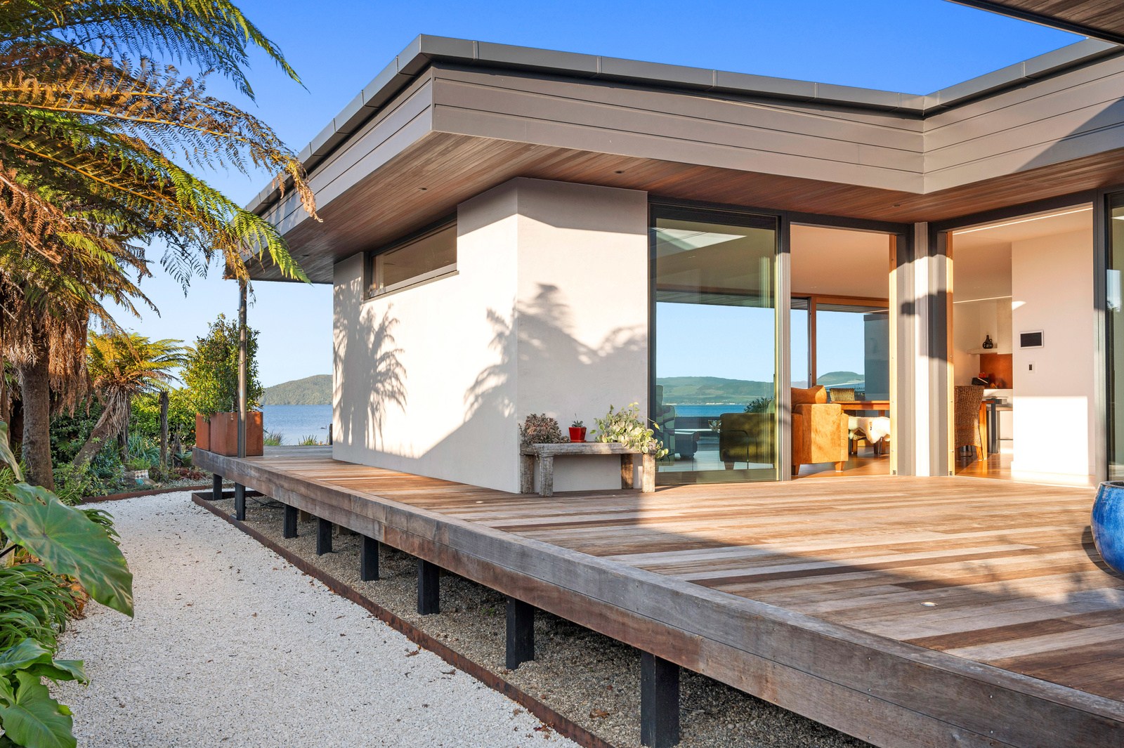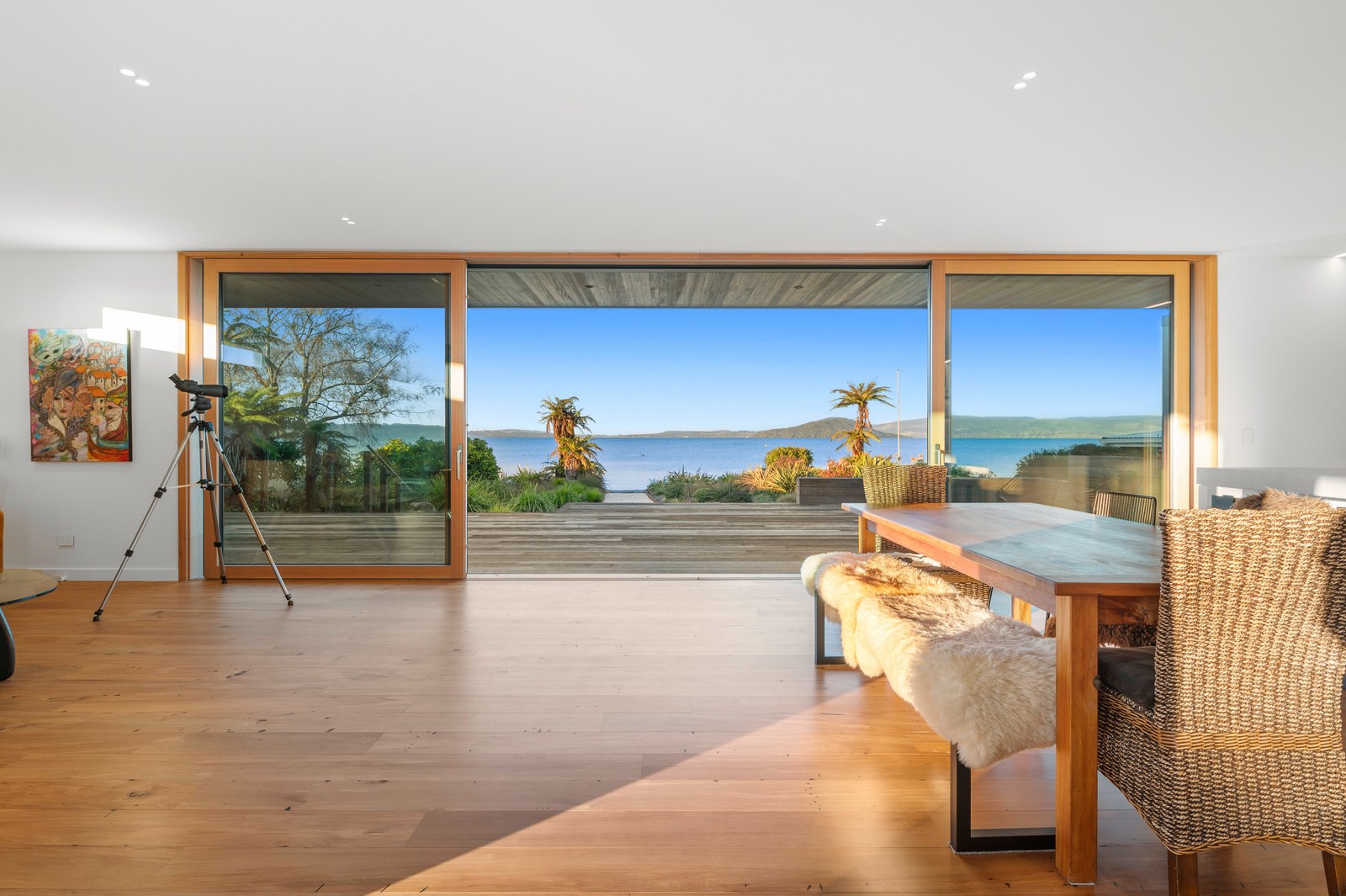 Inside, the design is contemporary and inviting. Built-in bookshelves, a copper-toned splashback and natural finishes add depth and character. The main bedroom, which also opens to that view, becomes a front-row seat to watch the shifting light. Sustainability is built in, with eHaus Euro standard, airtight construction, heat-recovery ventilation and high-performance joinery. Solar capability and smart-home integration add future-proof functionality. With its resilient materials and enduring sense of place, this home offers year-round comfort and strong design credentials in an exceptional lakeside setting.