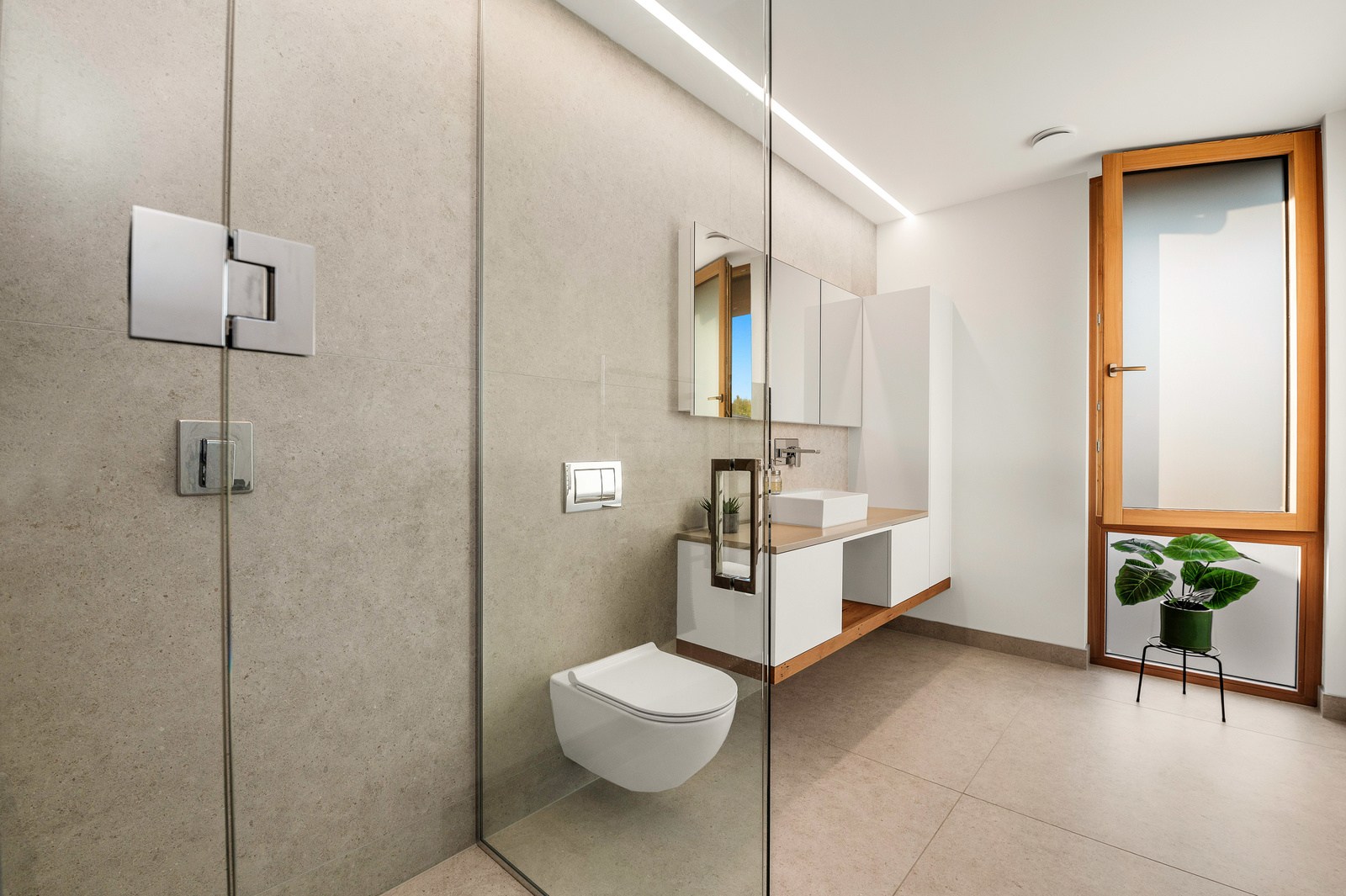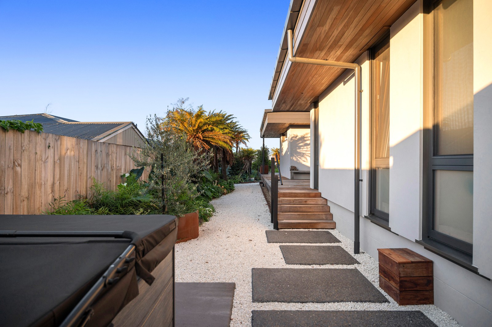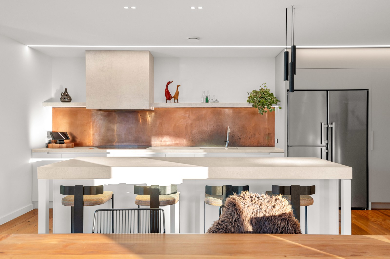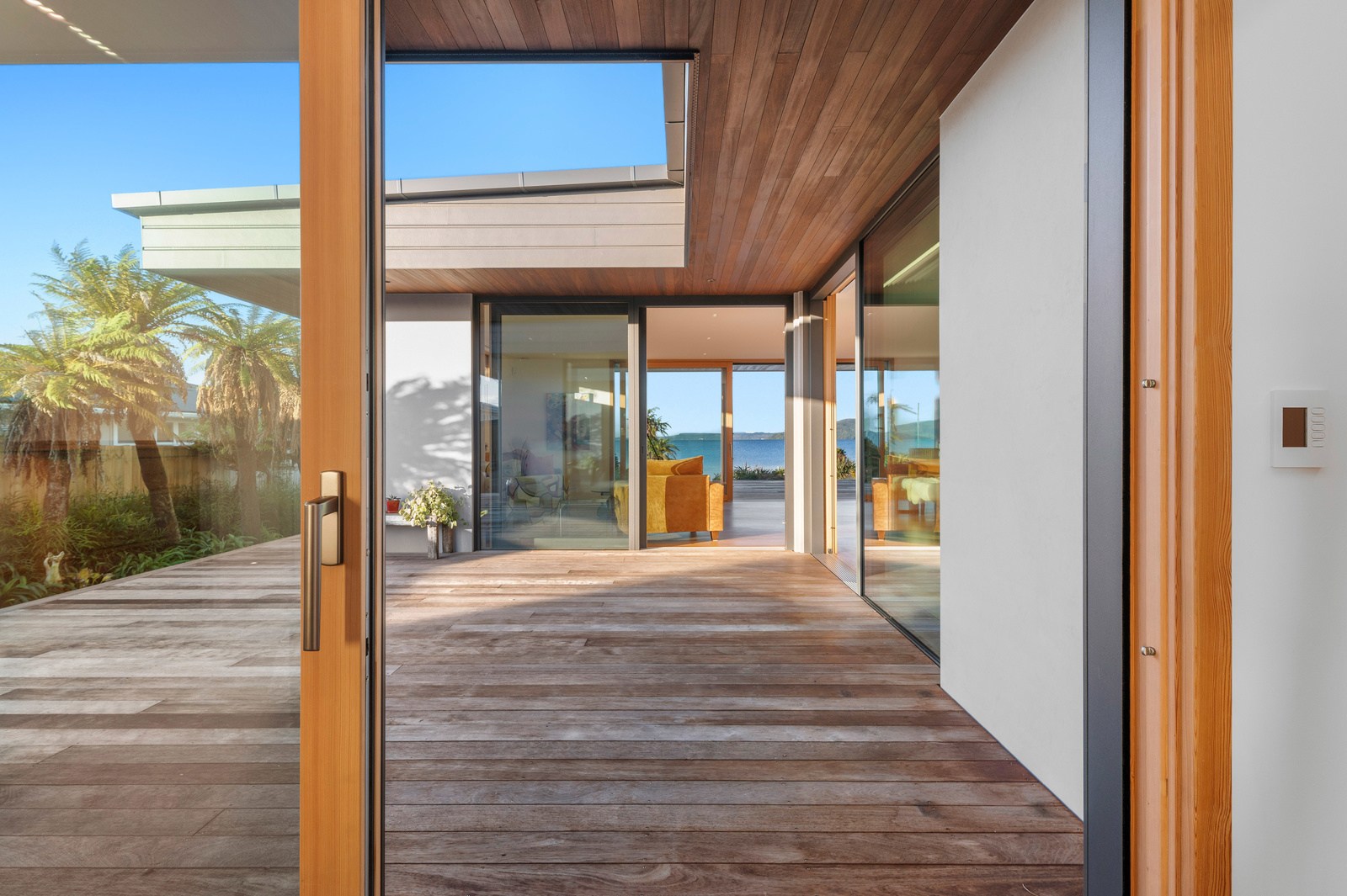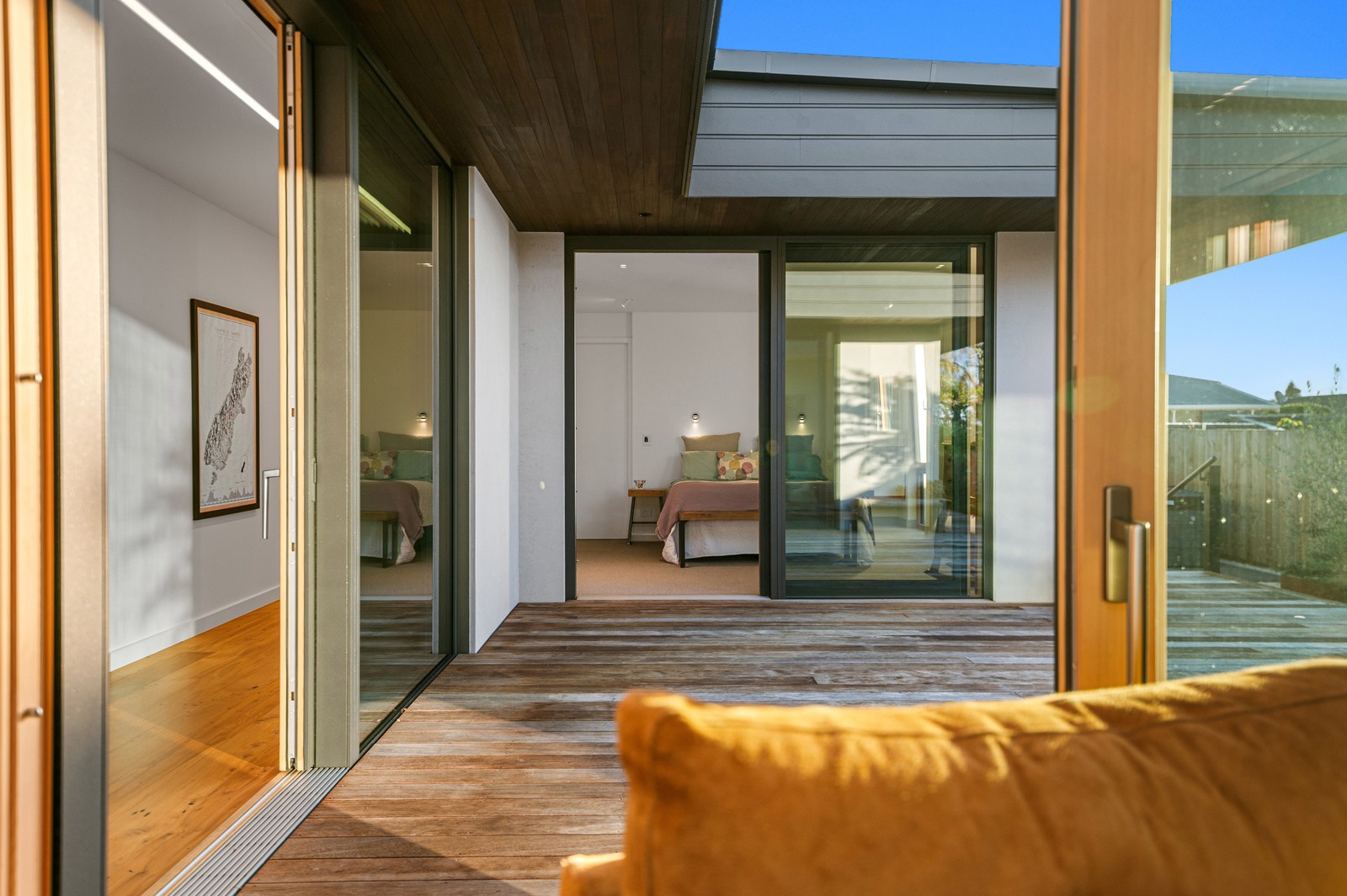 Inside, the design is contemporary and inviting. Built-in bookshelves, a copper-toned splashback and natural finishes add depth and character. The main bedroom, which also opens to that view, becomes a front-row seat to watch the shifting light. Sustainability is built in, with eHaus Euro standard, airtight construction, heat-recovery ventilation and high-performance joinery. Solar capability and smart-home integration add future-proof functionality. With its resilient materials and enduring sense of place, this home offers year-round comfort and strong design credentials in an exceptional lakeside setting.