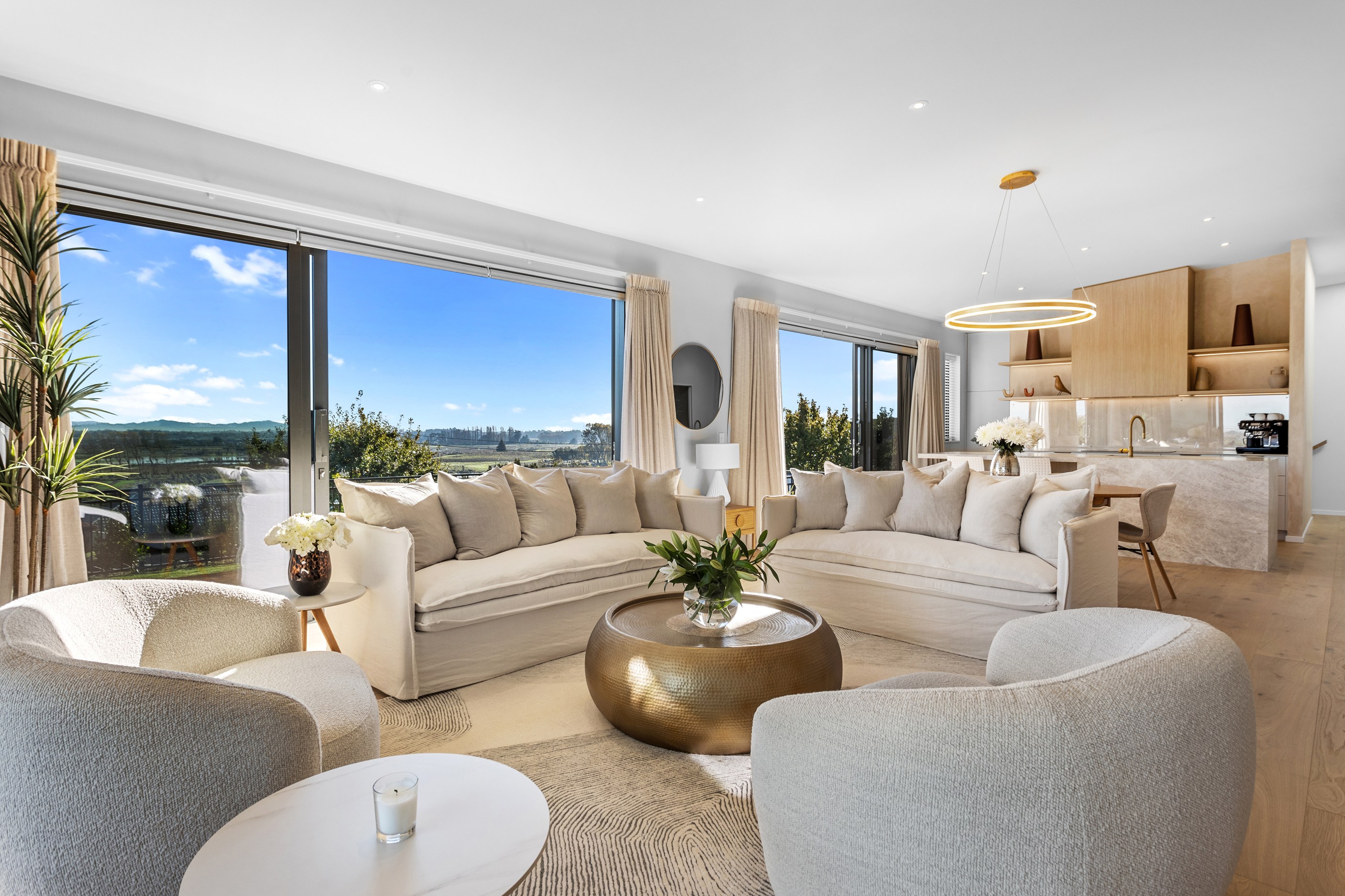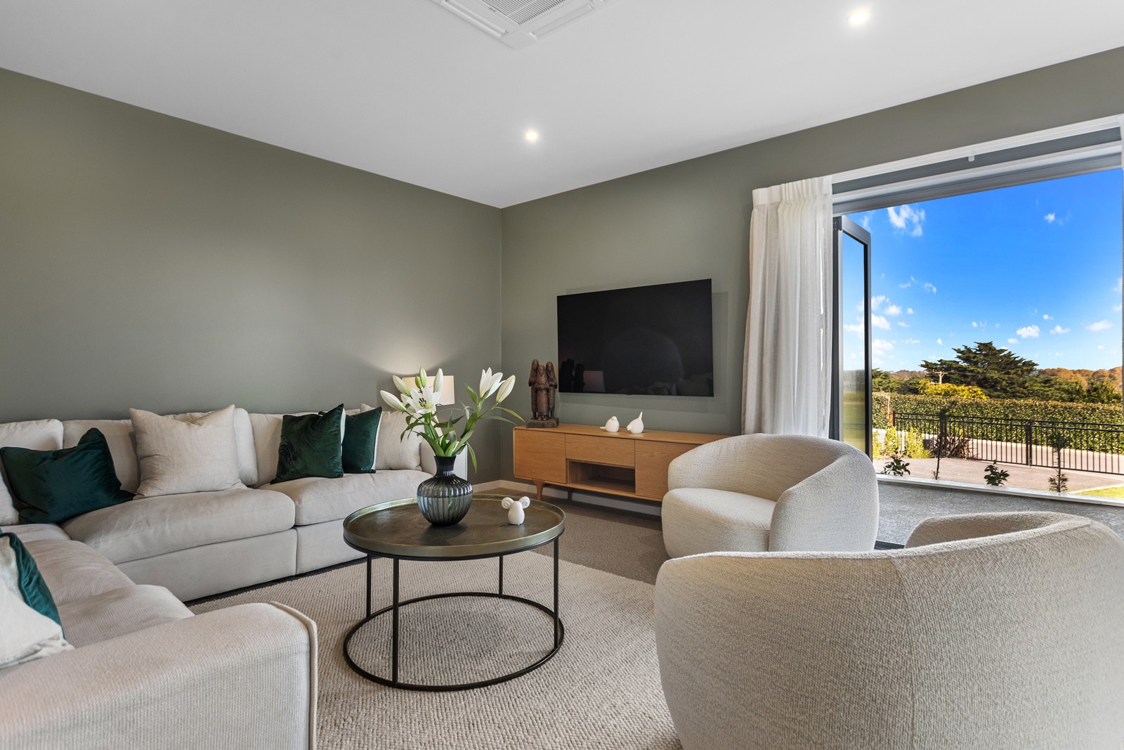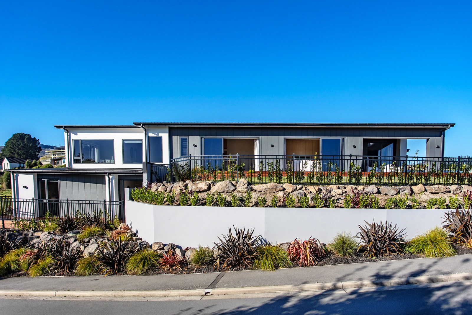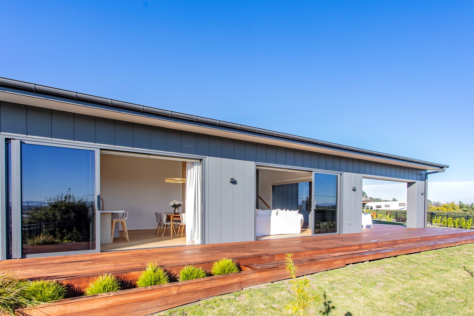 On a difficult site, chosen for its safe cul-de-sac location and breathtaking views of Te Kuru Wetlands and the Southern Alps, this fourbedroom, three-bathroom home is a refined balance of function and elegance. Careful excavation, including the removal of a significant amount of rock, was required to transform the sloping 1776sqm section into a workable foundation that now provides ample space for both children and adults to play in this private paradise. The well-considered 332sqm floorplan places living and entertaining at the heart of family life.