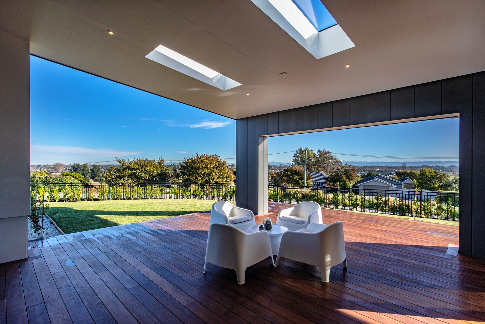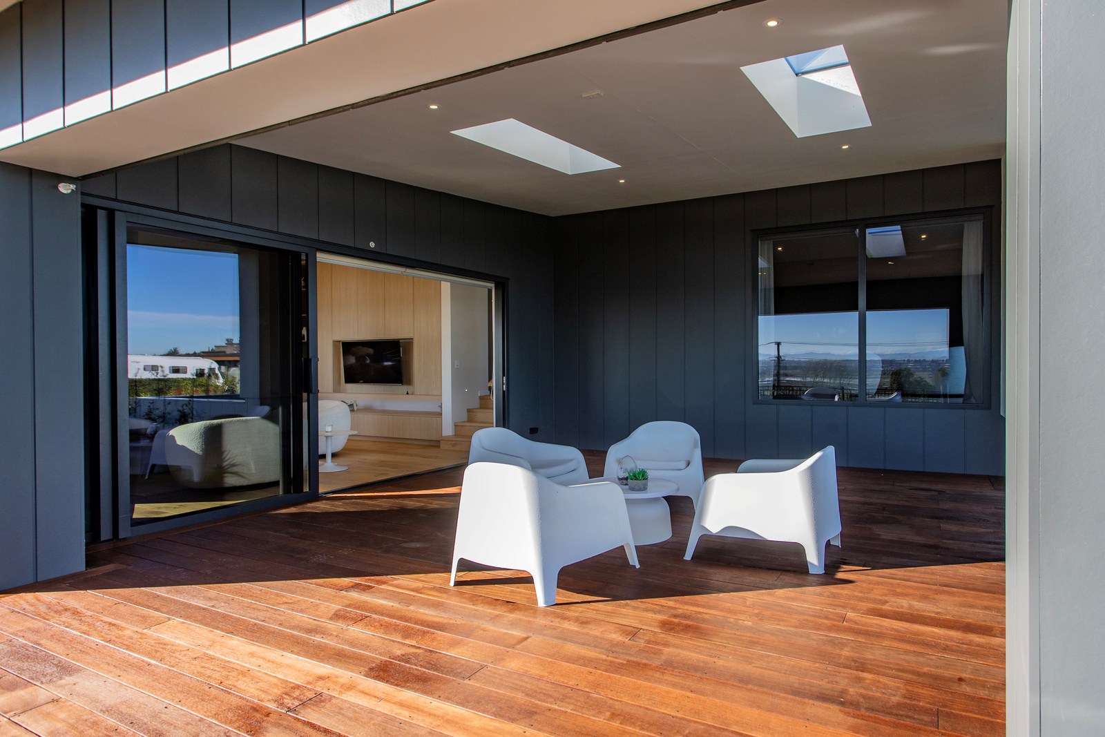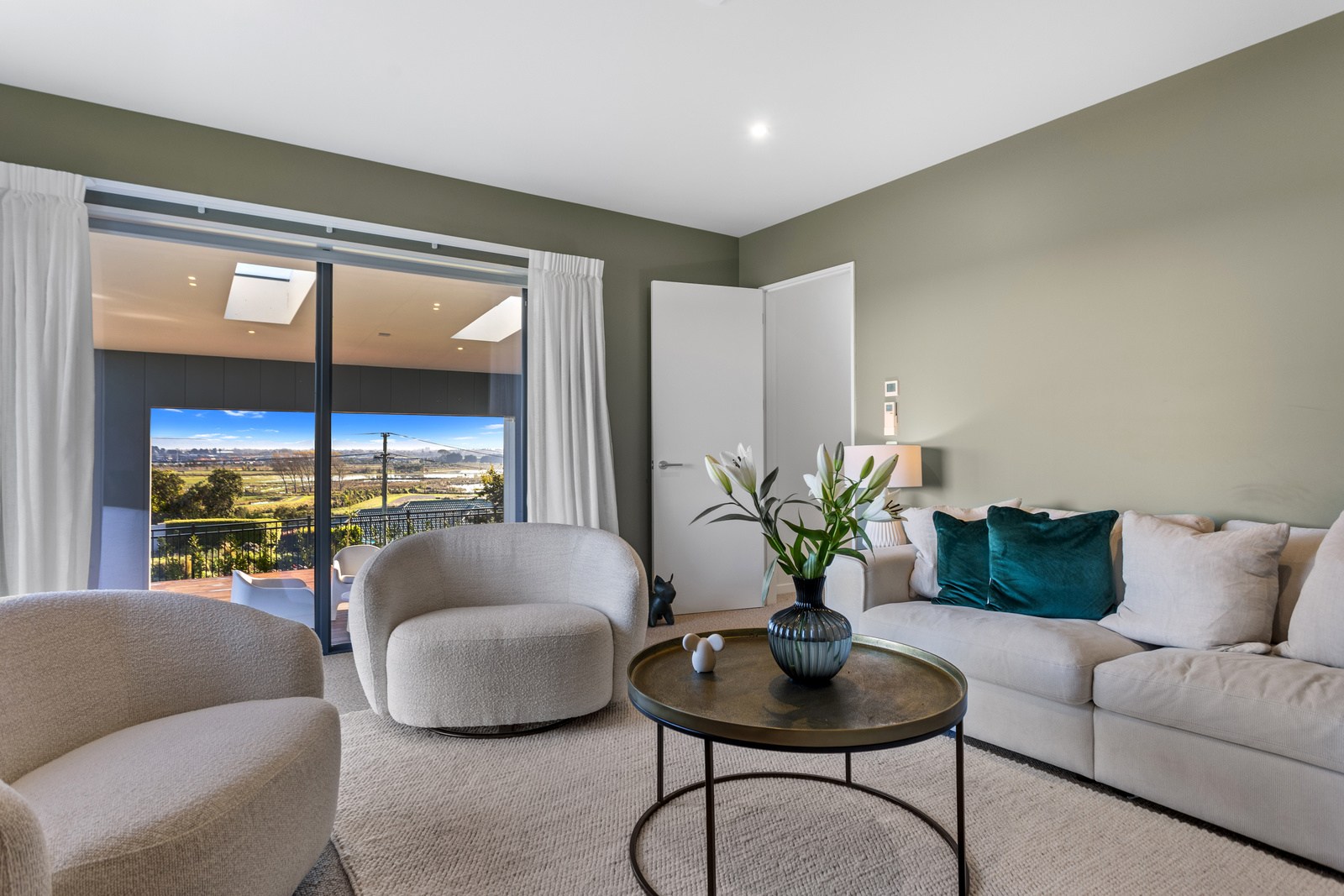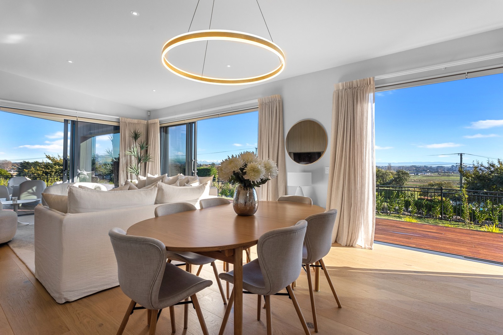On a difficult site, chosen for its safe cul-de-sac location and breathtaking views of Te Kuru Wetlands and the Southern Alps, this fourbedroom, three-bathroom home is a refined balance of function and elegance. Careful excavation, including the removal of a significant amount of rock, was required to transform the sloping 1776sqm section into a workable foundation that now provides ample space for both children and adults to play in this private paradise. The well-considered 332sqm floorplan places living and entertaining at the heart of family life.