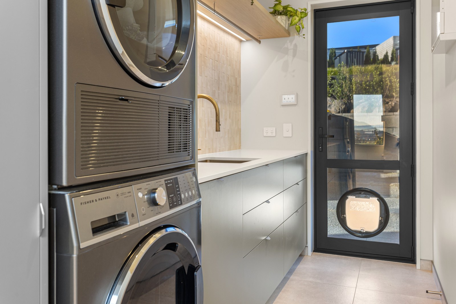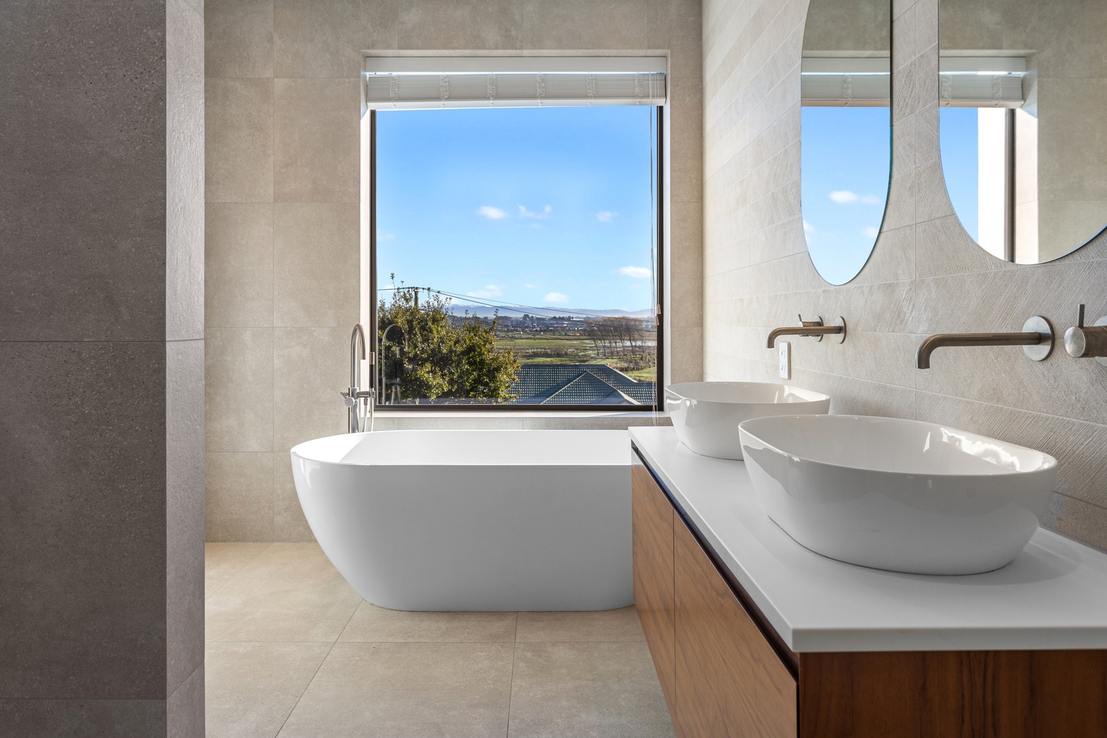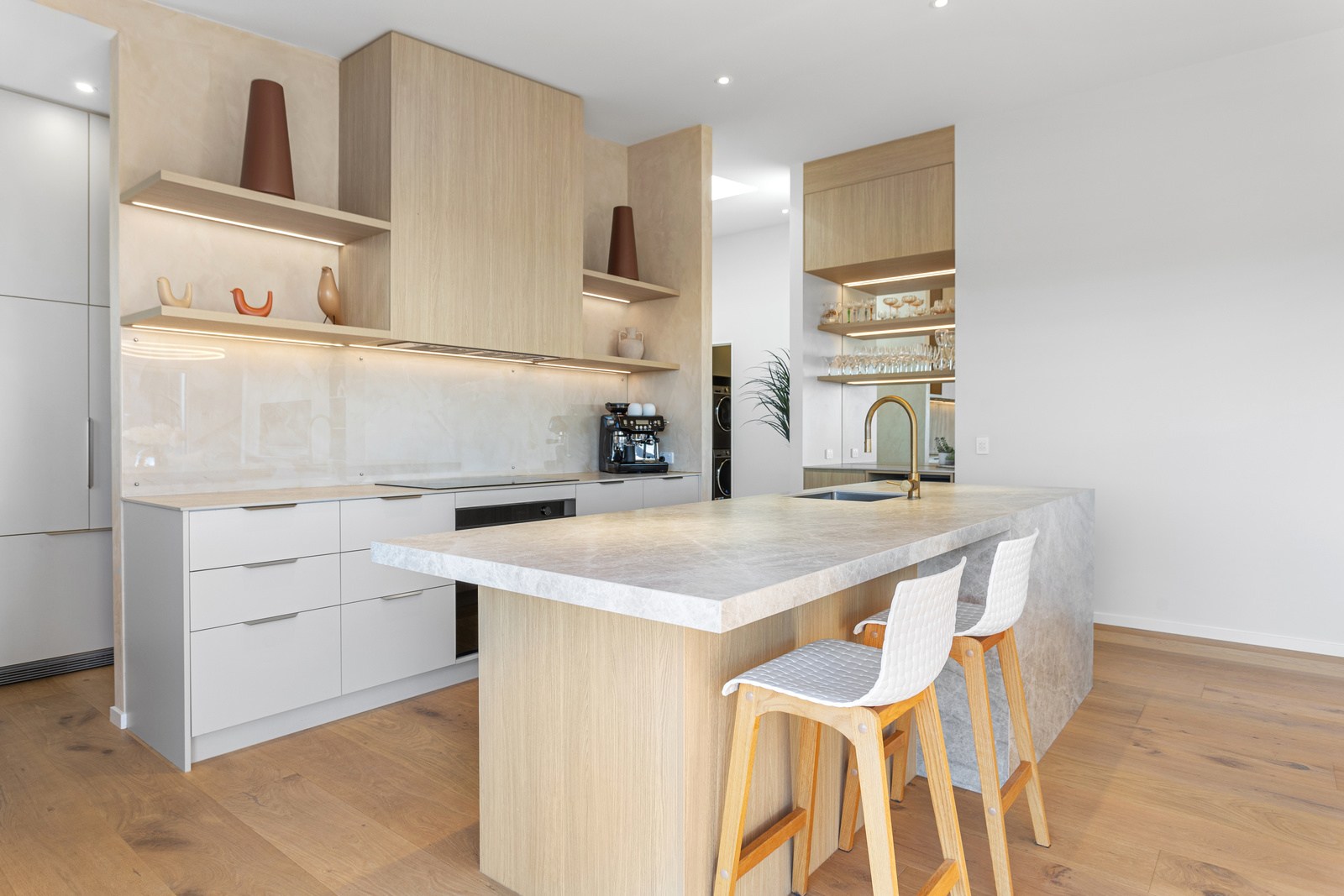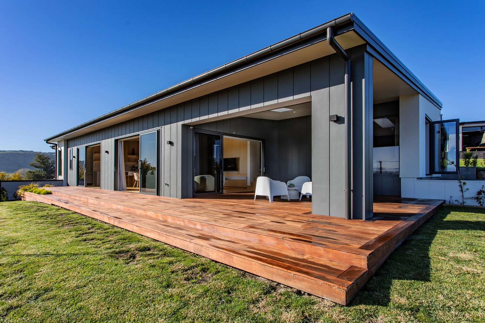 On a difficult site, chosen for its safe cul-de-sac location and breathtaking views of Te Kuru Wetlands and the Southern Alps, this fourbedroom, three-bathroom home is a refined balance of function and elegance. Careful excavation, including the removal of a significant amount of rock, was required to transform the sloping 1776sqm section into a workable foundation that now provides ample space for both children and adults to play in this private paradise. The well-considered 332sqm floorplan places living and entertaining at the heart of family life.